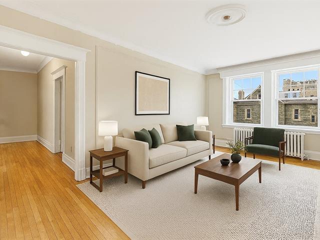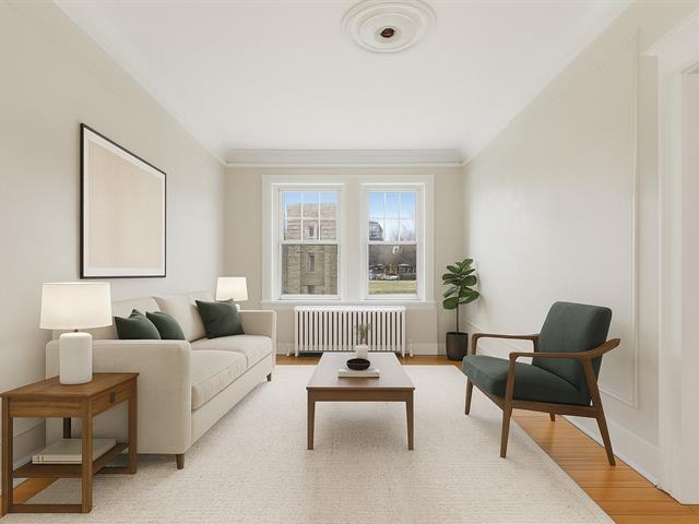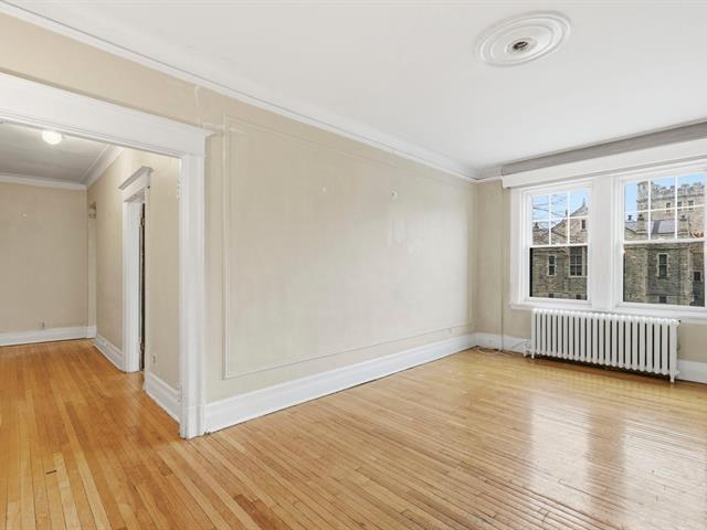 Nestled within the iconic Redfern Properties, this elegant two-bedroom residence offers spectacular views of the mountain and City Hall. Retaining its original architectural integrity, the space features high ceilings and distinctive charm, providing an exceptional opportunity for a bespoke and visionary renovation. Residents enjoy exclusive access to a common rooftop terrace. Ideally located in prime Westmount, just steps from Greene Avenue's upscale boutiques, vibrant cafés, and the serenity of Westmount Park. (57458992)