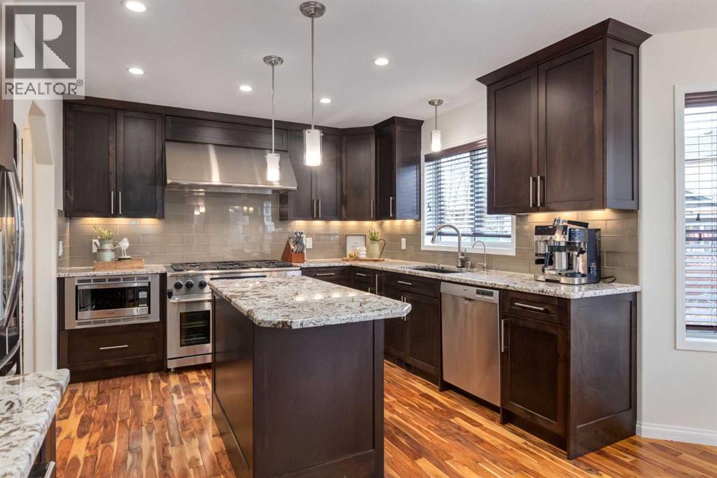 Situated on a quiet street in sought-after and well-established community of West Creek, this fully finished air conditioned two-storey home offers 4 bedrooms, 3.5 bathrooms and over 2700 sqft of total living space. You will love the location just minutes from Trennan pond and Chestermere Lake. This home is beyond welcoming and has curb appeal in abundance. You will pass by garden plots full of gorgeous flowers and a covered front porch as you step into the naturally bright front entry into this inviting home. The main floor offers a classic layout with hardwood flooring running almost entirely throughout. People working from home will love the spacious front flex room which can lend itself as an office or whatever you may need. The great sized living room features a gas fireplace and plenty of space for your furniture. The heart of this home is the impressive custom eat-in kitchen. It's both stylish and highly functional with granite countertops, soft-close cabinetry, stainless steel appliances including a show-stopping 6-burner gas stove with dual ovens and range hood, built-in wine rack and reverse osmosis water tap. A large pantry with convenient pass-through to the laundry/mudroom makes bringing in groceries a breeze. A convenient ½ bath rounds out this floors offerings. Upstairs you will discover 3 generous bedrooms including an ample sized primary retreat with a walk-in closet and 5pc ensuite which includes a private water closet, jetted soaker tub, dual vanity and views of Trennan Pond. An additional 4pc bath with linen closet completes the upper level. The fully finished basement extends the living space with a large recreation/media room that’s wired for surround sound with a second gas fireplace and an area great for a play space, home gym or your various hobbies. A 4th bedroom with an oversized walk-in storage closet 3pc bath with custom tiled shower and cozy in-floor heat as well as under the stair storage finish off this floor. Outside you will find an incredibly lush lawn, fire pit, 2 storage sheds, a charming greenhouse and organic garden beds (no pesticides have been used here) for those looking to grow their own veggies, a fenced in dog run and a large sun deck ideal for BBQ’ing – add all of this together and you have created your own personal backyard oasis designed for entertaining and relaxation. Say goodbye to scraping your windshields in Winter, the heated attached double garage with man door will make life so much easier.Living here means you’ll have quick access to major roadways making it an easy commute into Calgary as well as access to year-round activities with Chestermere Lake and Trennan pond/pathways just minutes from your front door. There is something for everyone with the golf course, skate park, community center, schools and playgrounds all within walking distance. Chestermere continues to grow offering tons of amenities including the soon to be built Bridgeport district nearby. Come view this house and make it your home! (31666556)