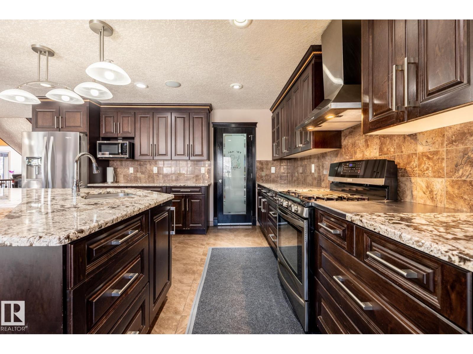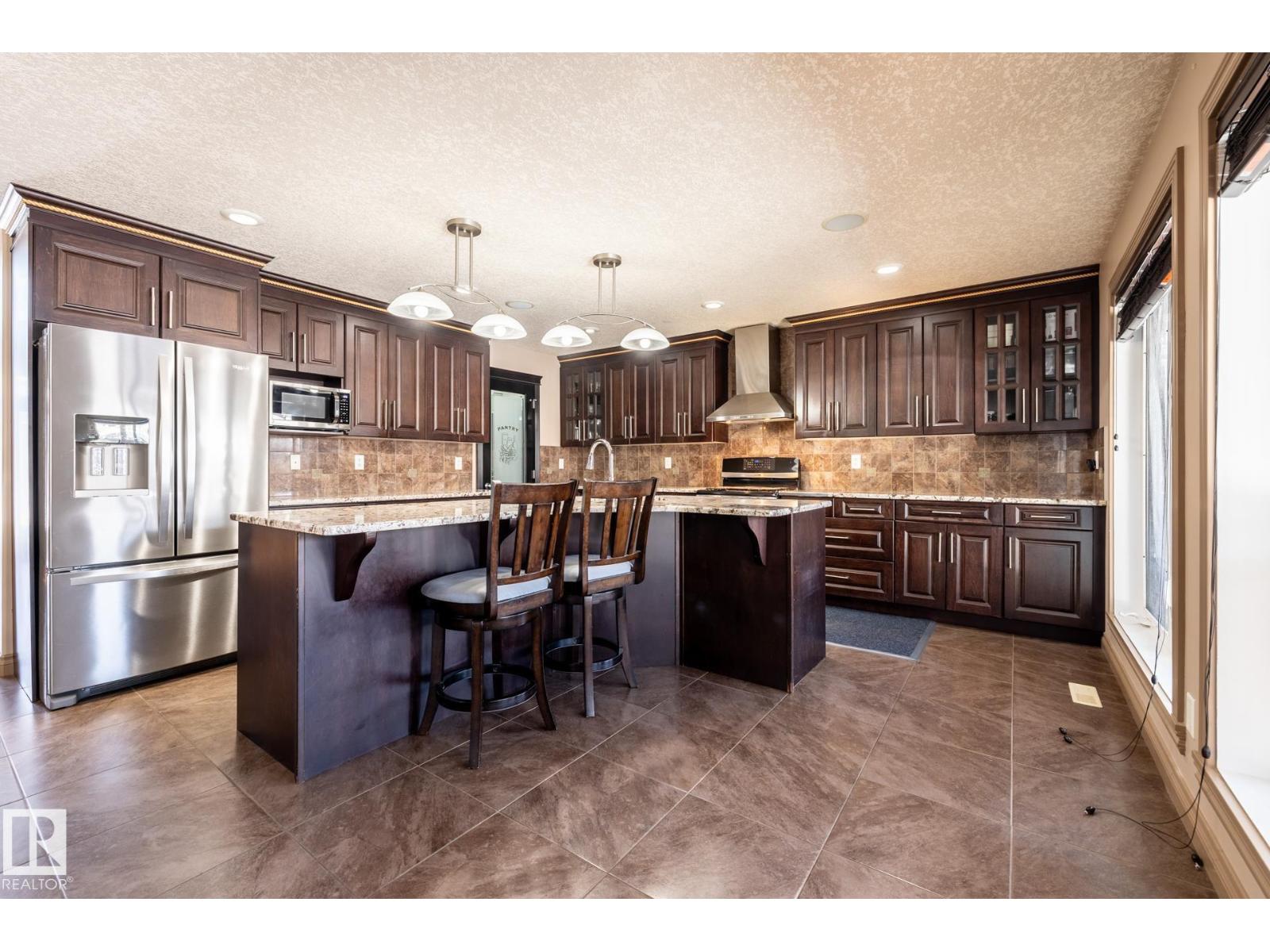 Exceptional custom-built 2-storey in desirable Sherwood offering nearly 4,800 sq ft of finished living space. Designed for large or multi-generational families, this home features 7 spacious bedrooms and 5 full bathrooms, including a main floor bedroom with private ensuite and walk-in closet. Upstairs offers 4 oversized bedrooms—two with private ensuites and two connected by a Jack & Jill bath. The fully finished basement includes 2 additional bedrooms, full bath, theatre room and bar. Soaring vaulted ceilings, sweeping staircase, granite countertops throughout, gas stove, stainless steel appliances, massive island, walk-in pantry, hardwood and ceramic tile flooring, and a cozy gas fireplace highlight the main level. Enjoy a west-facing, fully landscaped yard with covered patio and oversized drive-through double garage. Close to schools, parks, shopping and major routes. A rare opportunity offering exceptional space, flexibility and timeless design. (33853400)