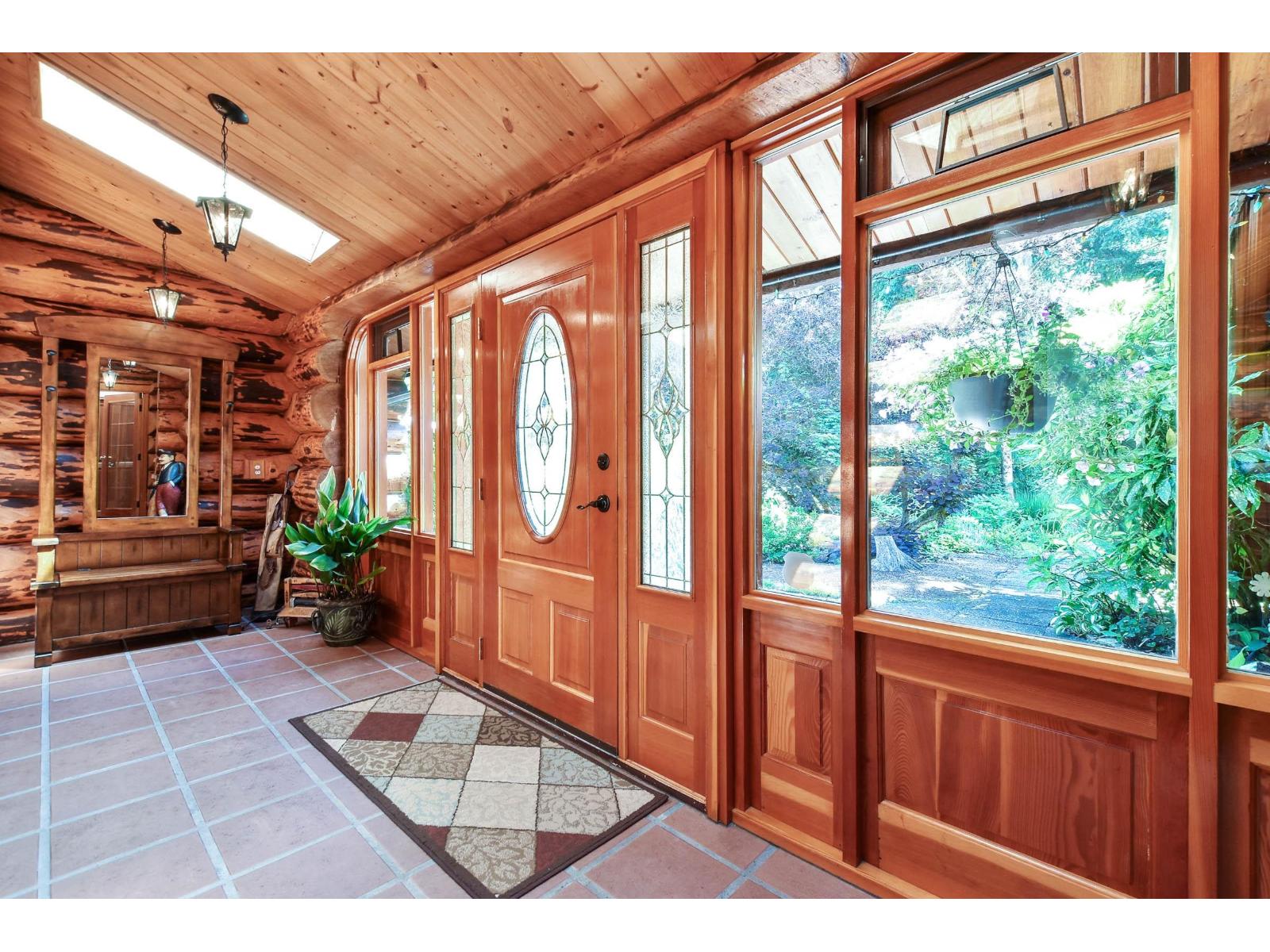Tucked away at the end of a quiet street, this custom, spruce log home sits on 2.3 acres. Surrounded by nature, this one-of-a-kind property offers the ultimate escape, yet only 10 minutes from Downtown Mission! Whether you love to entertain or simply unwind in peace, this home has it all: sprawling decks and patios, lush gardens, an in-ground pool, your own orchard, and even a charming chicken coop. Explore the creek, play in the open yard, or host unforgettable gatherings in this truly magical setting. Step inside and be captivated by the warmth and character throughout. The rock fireplace anchors the cozy family room, a perfect spot to curl up with a book or gather with friends. The open living and dining spaces flow seamlessly into a beautifully renovated kitchen, while a Hemlock-railed staircase leads to a versatile loft space - ideal for a bedroom, rec room, or creative studio. Add in a flex room and you've got endless possibilities for work, play, or guests. This is more than a home, its a lifestyle. (32471006)