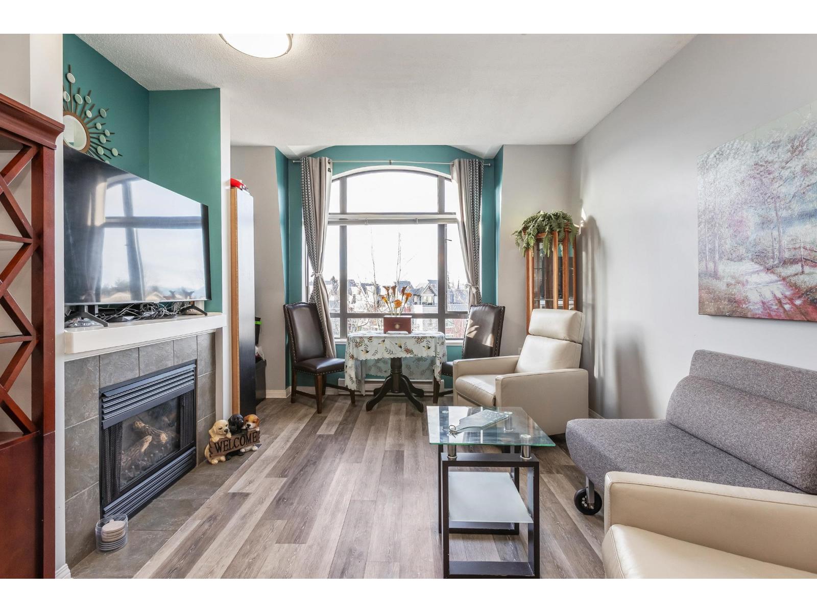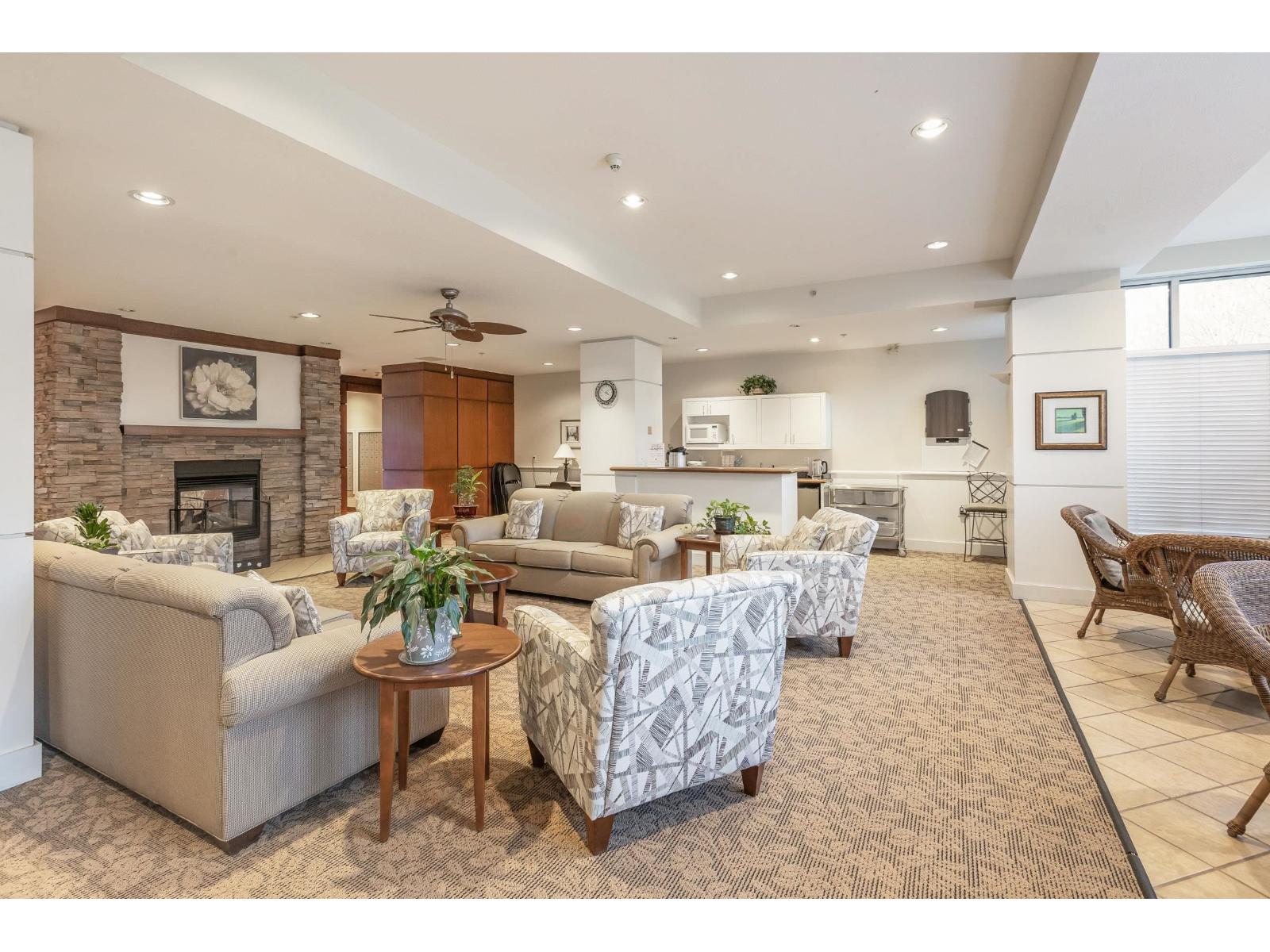 Well-maintained top floor 1 bed, 1 bath home in a highly convenient 55+ community. Walk to medical services, banking, shopping, restaurants, theatres, transit, and Fresh Market, with easy access to the Golden Ears Bridge and Hwy 1. Features include over height ceilings, upgraded laminate flooring, heated tile bathroom floors, double-wide walk-in shower, full sized in-suite laundry, electric fireplace, and new dishwasher to be installed if buyer chooses. Building amenities include concierge, fitness room, lounge, courtyard garden, and rooftop deck. Includes 1 parking stall, storage locker, and scooter storage. Pet-friendly: one dog (up to 18") or one cat allowed. (32470926)