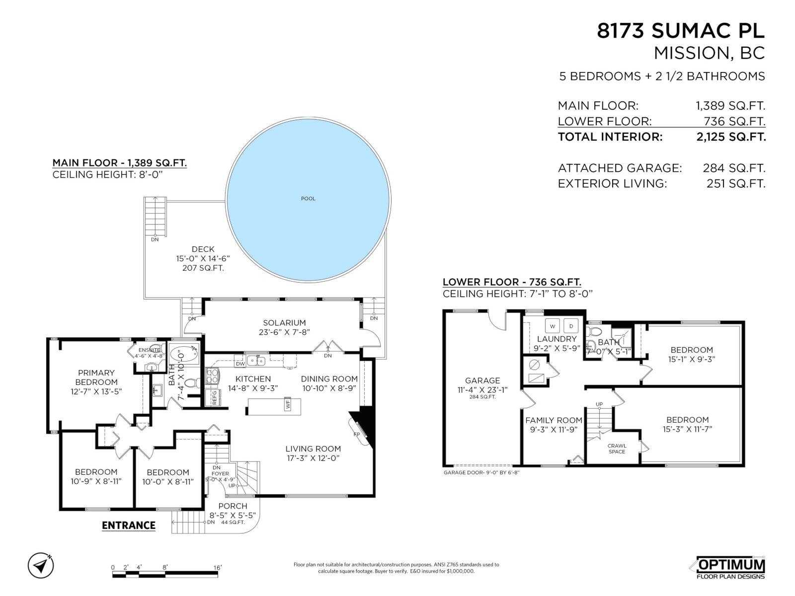 8173 SUMAC PLACE - 2,125 Sq Ft 5 bed / 2.5 bath family home on a 7,260 Sq Ft lot in the Mission Hillside Traditional School catchment. Bright main floor with updated white kitchen, large island, tile backsplash and stainless appliances flowing into spacious living/dining areas. 3 bedrooms up including primary with ensuite. Lower level offers 2 additional bedrooms, family room and laundry - ideal for teens, guests or home office space. Massive solarium overlooks the private backyard with deck and outdoor pool. RV parking, attached garage plus plenty of driveway space. Quiet cul-de-sac location close to parks, schools and amenities. A solid family home in one of Mission's most desirable school catchments & Close to everything! OPEN HOUSE SUN MARCH 1 1:00-3:00PM (32471032)