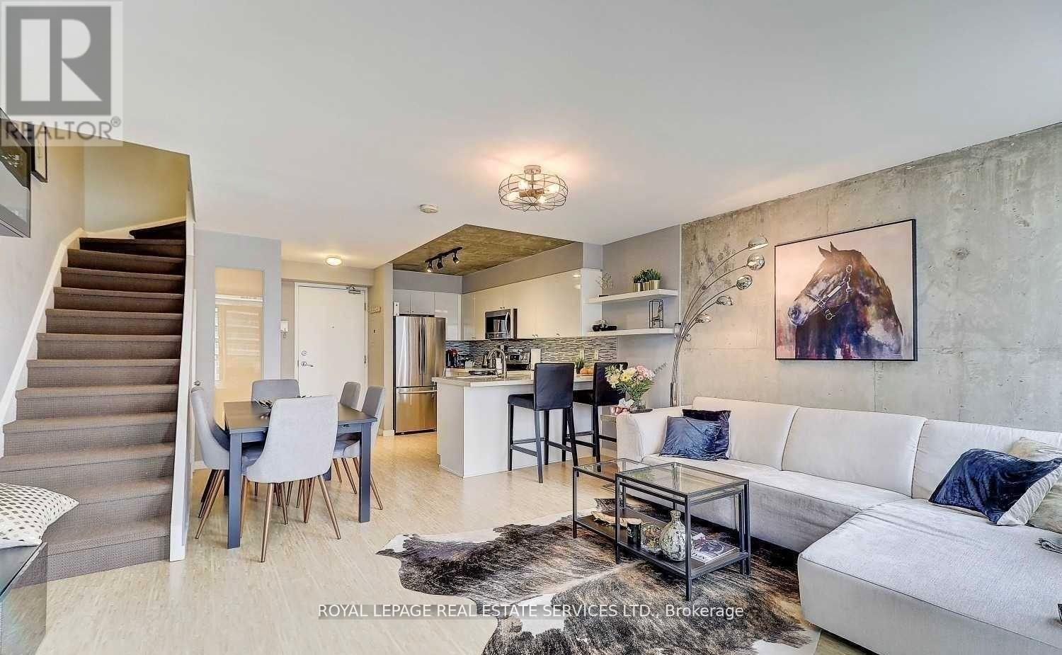 Luxury Loft! Experience elevated living in this stunning, two-storey loft featuring 2 spacious bedrooms and 2 modern bathrooms. The open-concept living, dining, and kitchen area with a stylish breakfast bar blends contemporary comfort with sophisticated design. Enjoy floor-to-ceiling windows and two private balconies that flood the space with natural light. Perfectly situated in a vibrant neighbourhood with a true community feel, yet just minutes from downtown. TTC and groceries are at your doorstep, and you're steps from Liberty Village, The Bentway, and the waterfront. Quick access to major highways and just minutes to the Financial and Entertainment Districts. Move in and enjoy the ultimate urban lifestyle hassle-free and all-inclusive. (42182719)