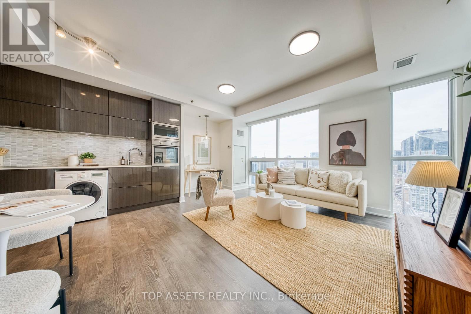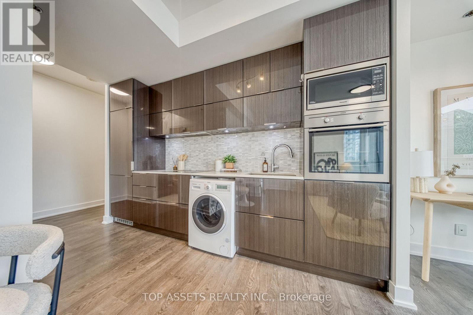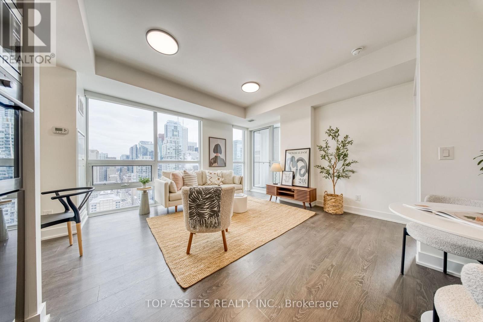 Enjoy a stunning southeast-facing panoramic view from this exclusive high-floor unit. This luxurious and bright south-facing 1+1 residence sits high above the city in the heart of Toronto's Financial and Entertainment Districts, offering a highly functional layout with a spacious den. The thoughtfully designed den features smart use of space and a modern pendant light, creating a perfect area for a home office or entertainment. Floor-to-ceiling windows fill the open-concept living and kitchen area with abundant natural light, leading to an open balcony with clear, unobstructed views. ONLY this unit on this floor comes with a locker. A modern and efficient home with exceptional daily convenience, excellent transit access, and seamless access to surrounding amenities. With an unbeatable Walk Score, you are just minutes to King & Queen St W, top restaurants, cafes, the PATH, TTC streetcar, CN Tower, Rogers Centre, Fashion District, and every downtown attraction. NEWLY Opened Asian supermarket Bestco Fresh Foods Downtown Store that just a one-minute walk downstairs ! Enjoy premium building amenities including 24-hour concierge, yoga & pilates studio, spa facilities, media room, billiards room, sauna, and a fully equipped fitness centre-perfect for end-users and investors seeking a modern, bright, and exceptionally located home in one of Toronto's most iconic buildings. (42182724)