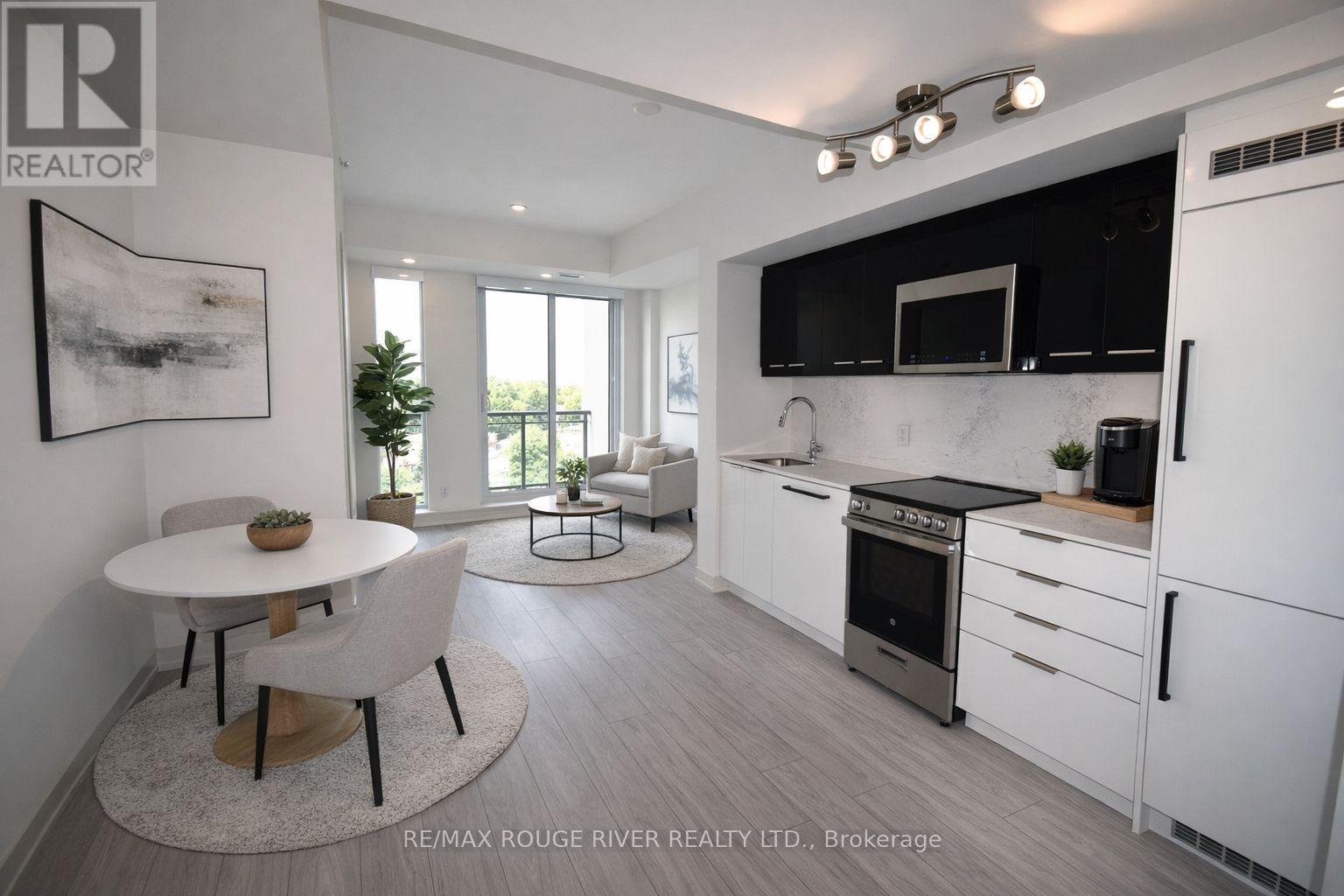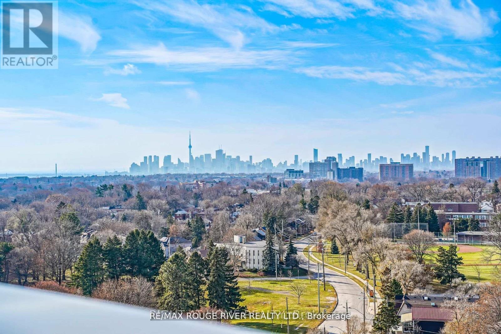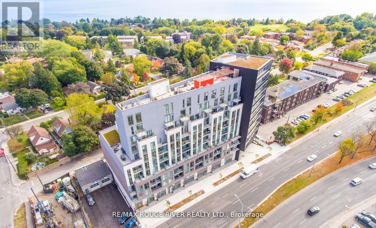 Merge Condos boasting City and Park Views in this Upgraded 2 Bedroom plus a Den, 2 Full Baths, 1 Underground Parking, Locker. Highly desirable 684 sq. ft. desirable split bedroom layout. The spacious den also has a closet for an ideal work at home solution. The kitchen boasts quality high gloss cabinet doors, gorgeous quartz counters & backsplash, undercabinet lighting & pot lights. Both bathrooms have upgraded porcelain tiles. Windows include custom roller blinds. This unit is sunny & cheery with Floor to Ceiling Windows, Open Balcony with clear City Skyline, CN Tower, Park Views. This ultra convenient location offers 24 hour transit service to Downtown, walk to schools, restaurants, cafes, grocery shopping, medical services, parks, Historic Scarborough Bluffs, Trendy Beaches nearby. (42182749)