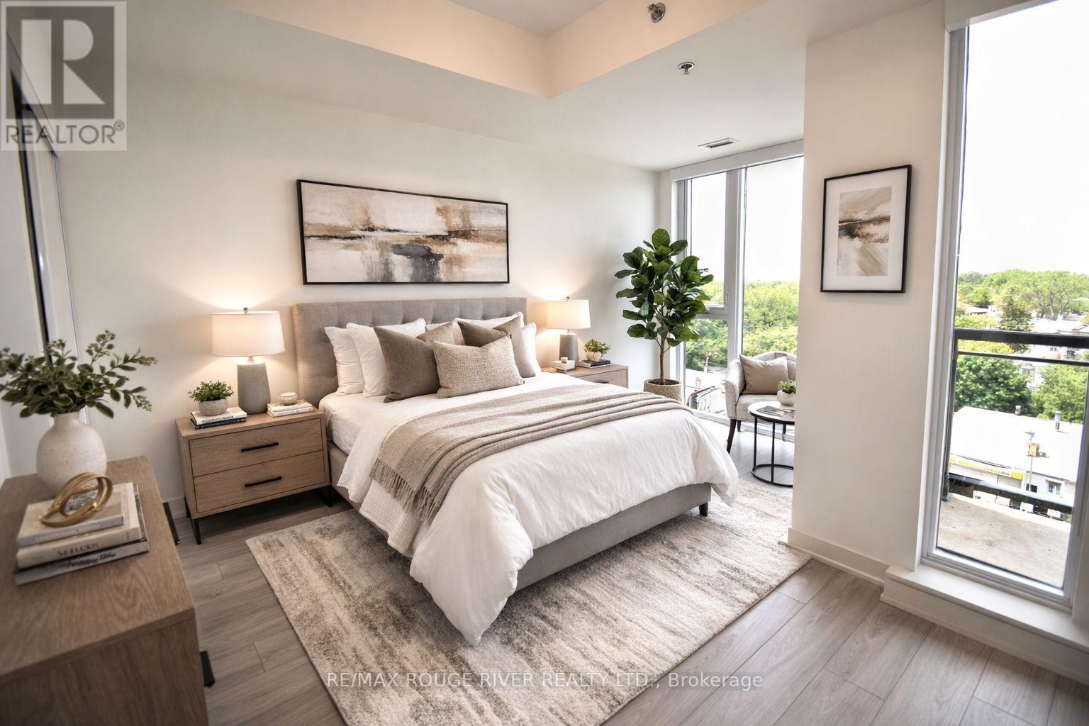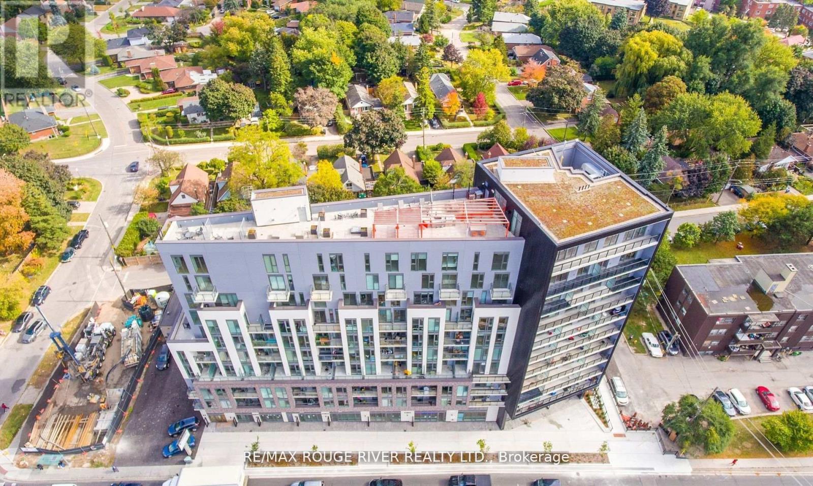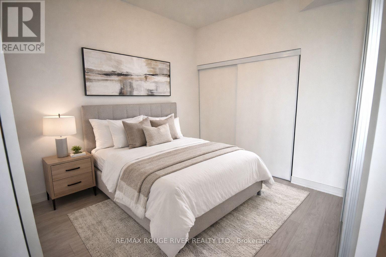 Merge Condos boasting City and Park Views in this Upgraded 2 Bedroom plus a Den, 2 Full Baths, 1 Underground Parking, Locker. Highly desirable 684 sq. ft. desirable split bedroom layout. The spacious den also has a closet for an ideal work at home solution. The kitchen boasts quality high gloss cabinet doors, gorgeous quartz counters & backsplash, undercabinet lighting & pot lights. Both bathrooms have upgraded porcelain tiles. Windows include custom roller blinds. This unit is sunny & cheery with Floor to Ceiling Windows, Open Balcony with clear City Skyline, CN Tower, Park Views. This ultra convenient location offers 24 hour transit service to Downtown, walk to schools, restaurants, cafes, grocery shopping, medical services, parks, Historic Scarborough Bluffs, Trendy Beaches nearby. (42182749)