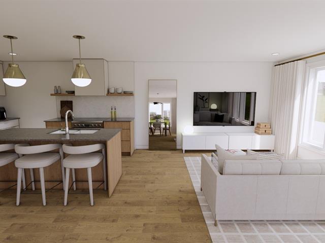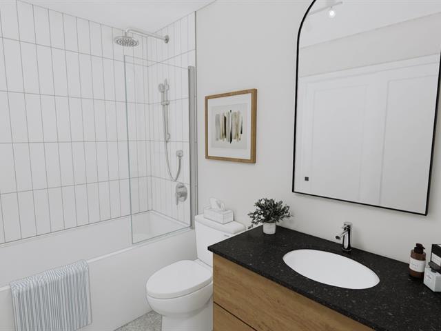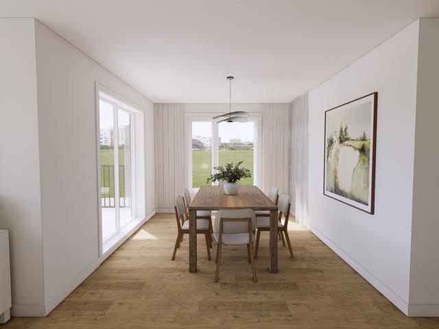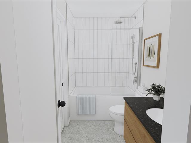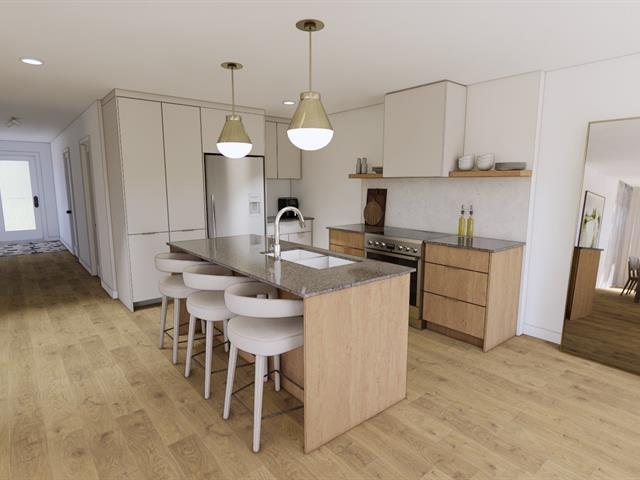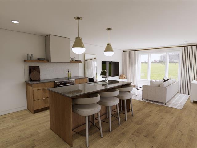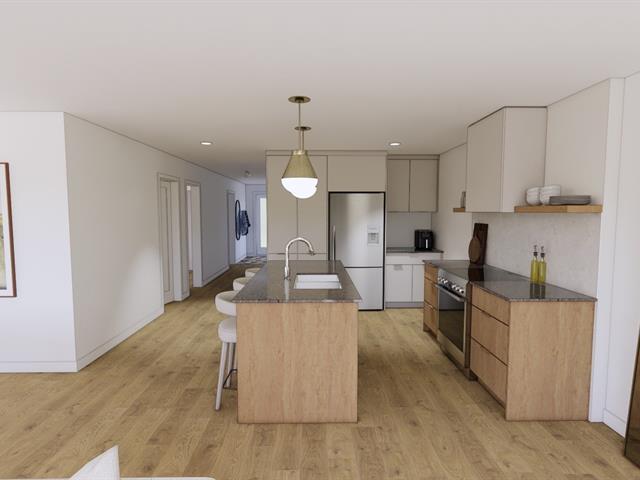 5½-room apartment on the 2nd floor of a 3-story building under construction, on a quiet street in Windsor. The common areas are open concept. The kitchen features an island with a lunch counter, a double sink, and beautiful two-tone cabinets. A patio door in the dining room opens onto a 12 x 8 ft. balcony at the front. The three bedrooms have closets. The bathroom has a shower-tub combination with ceramic walls. Quality finishes, wall-mounted heat pump, and separate entrance. Two parking spaces, and outdoor storage. Ten minutes from Domtar! (44637860)