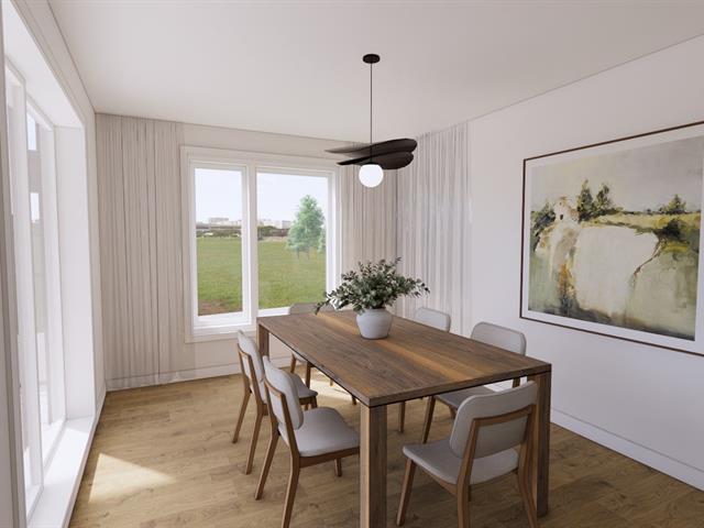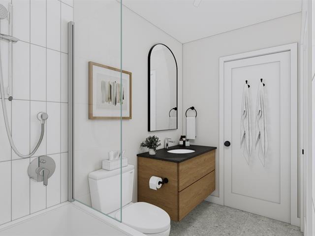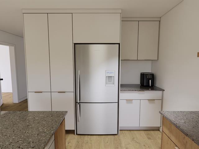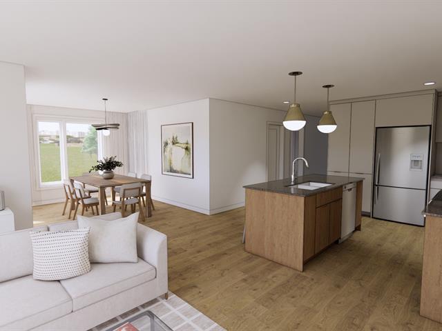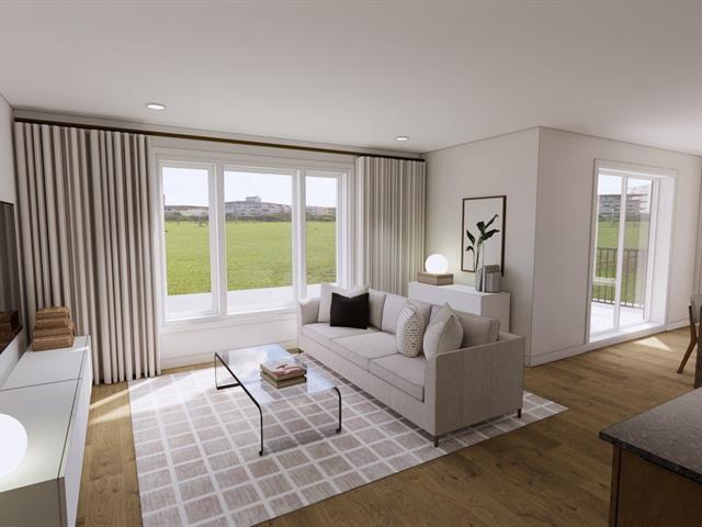 5½-room apartment on the top floor of a 3-story building under construction, on a quiet street in Windsor. The common areas are open concept. The kitchen features an island with a lunch counter, a double sink, and beautiful two-tone cabinets. A patio door in the dining room opens onto a 12 x 8 ft. balcony at the front. The three bedrooms have closets. The bathroom has a shower-tub combo with ceramic walls. Quality finishes, wall-mounted heat pump, and separate entrance. Two parking spaces, and outdoor storage. Ten minutes from Domtar! (47590441)