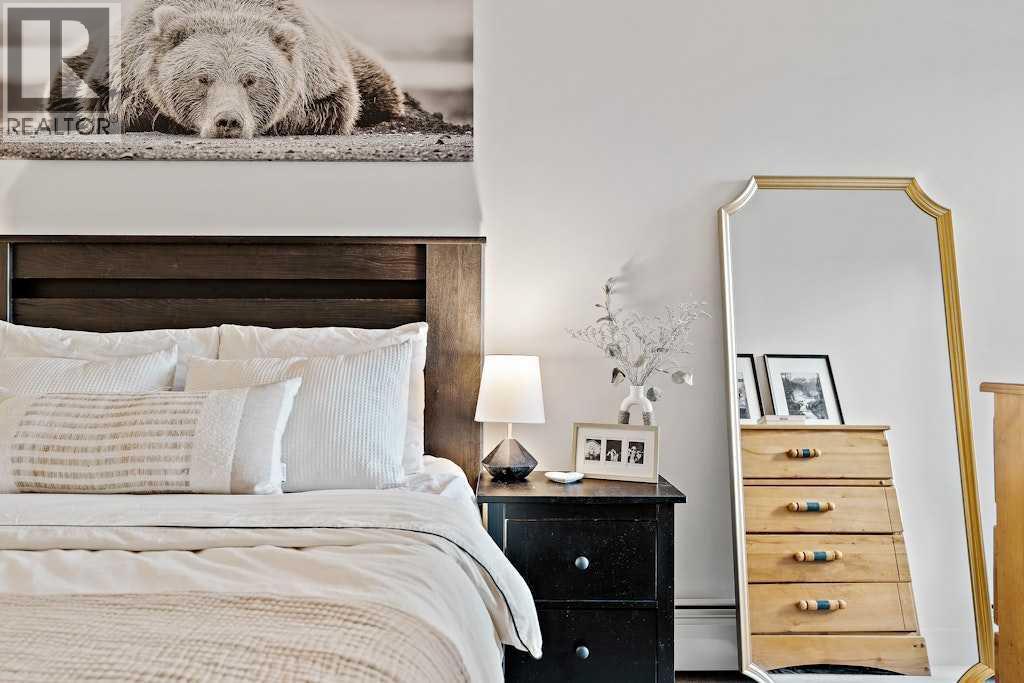 Step inside and you’ll notice the difference is in the details, clean, modern finishes, a bright open layout, and natural light that makes the space feel airy, yet refined. The kitchen is a true focal point, finished with two-tone cabinetry that includes glossy white, flat-front upper cabinets, quartz countertops, a striking backsplash, and a breakfast bar that feels equal parts stylish and functional. High-end appliances complete the space with a sleek, elevated look. The dining area and living room flow together beautifully, creating a comfortable space that still feels polished, with large windows that keep the space light and inviting. The primary bedroom is a calm retreat with a private ensuite bath and generous closet space, while the second bedroom offers flexible luxury—ideal for guests, a home office, or a curated space of your own. A full second bathroom carries the same modern finishes, and in-suite laundry adds the convenience you’ll be glad to have. The large balcony is an easy extension of your living space, morning coffee, fresh air, or evening downtime with a view. This condo pairs elevated interiors with a location that’s hard to beat: minutes to downtown, surrounded by parks, boutique shopping, and some of Calgary’s most loved cafés and restaurants. (31666989)
