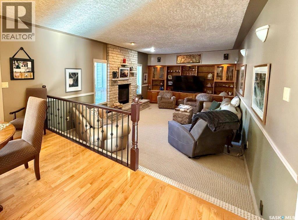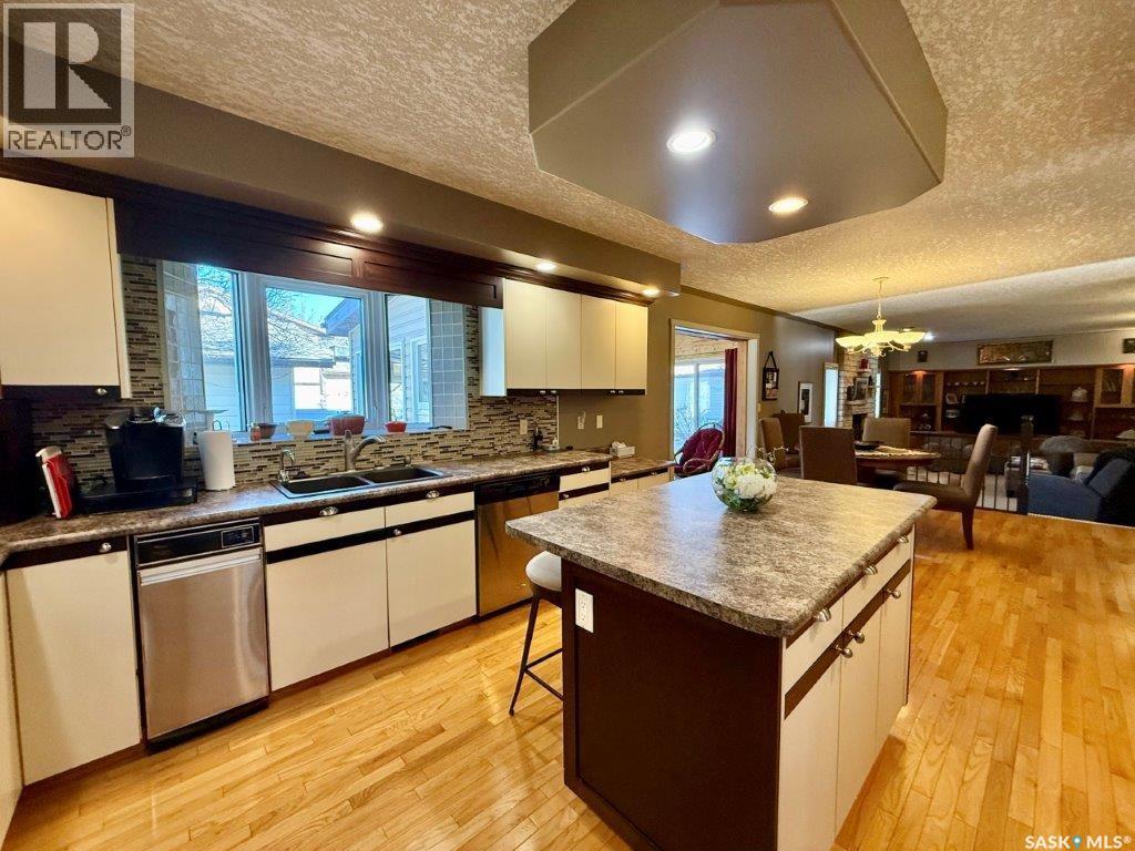 Welcome to this beautifully maintained 2,897 sq. ft. 1¾ storey original-owner home, offering space, functionality, and timeless character. Situated on a mature lot with excellent street appeal, dormer accents, and a maintenance-free exterior, this property is ideal for a growing family. The home features a double attached garage plus an 18’ x 24’ heated detached garage perfect for extra vehicles or workshop space. Step inside the impressive front entrance open to the bright living room and staircase leading to the second level. From the foyer, you can also access the spacious great room featuring a sunken family room with a cozy wood-burning fireplace — an inviting space for everyday living or entertaining. The large dining area flows seamlessly into the well-designed kitchen, offering an abundance of cabinetry and generous counter space. Updated stainless steel appliances include a built-in microwave, convection oven with warming drawer, cooktop, and dishwasher. The island provides additional prep space and seating. Just off the dining area is a beautiful four-season sunroom, expanding your living space. Enjoy views of the backyard and direct access to the deck through patio doors — perfect for summer barbecues and relaxing evenings. The main floor also includes: Convenient 2-piece bathroom, Laundry closet, access to the attached garage and side entrance. Upstairs, you’ll find four spacious bedrooms. The primary suite features a private sitting/office area and a 3-piece ensuite. A well-appointed 4-piece main bathroom completes the upper level. The basement offers even more living space with large family room, Games area, 2-piece bathroom, Utility area, and two separate storage rooms. Additional highlights include: 9” thick exterior walls, Brick exterior on cement foundation (not L iron),6’ high PVC fencing, abundant storage throughout the home. Homes of this size and quality rarely come available — call today to book your private tour! (29408456)
