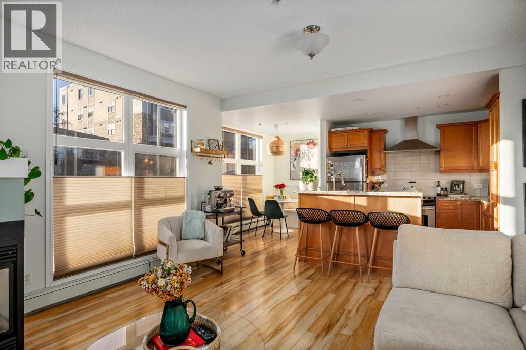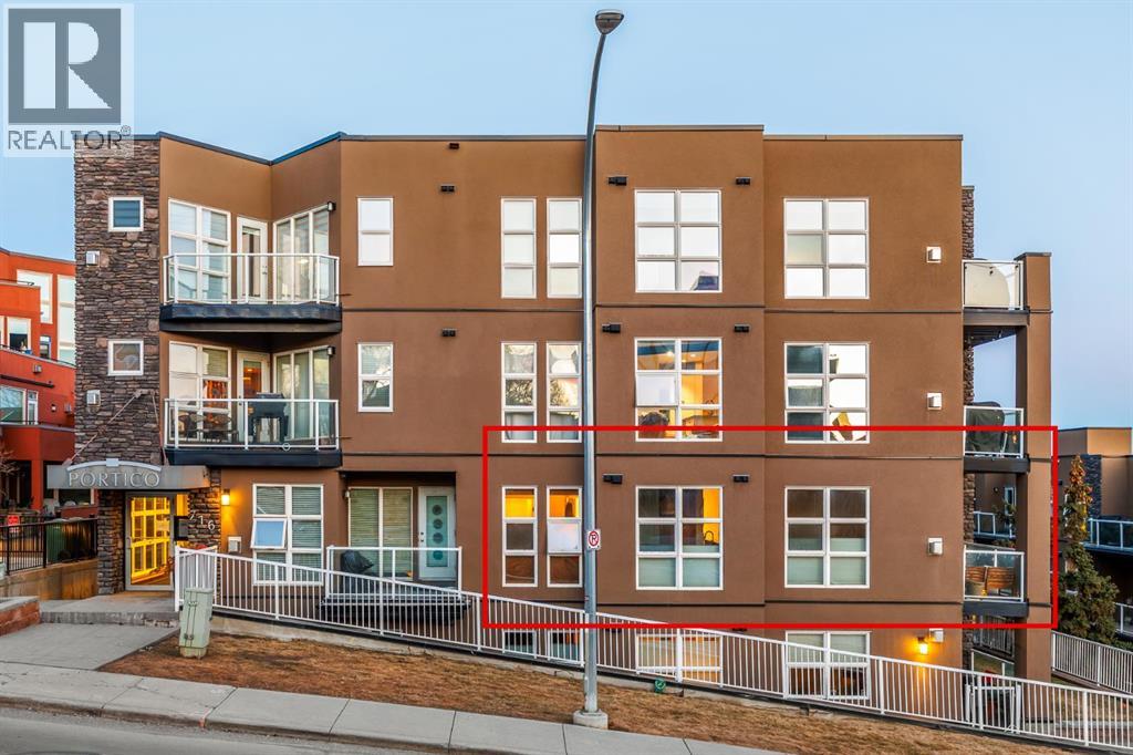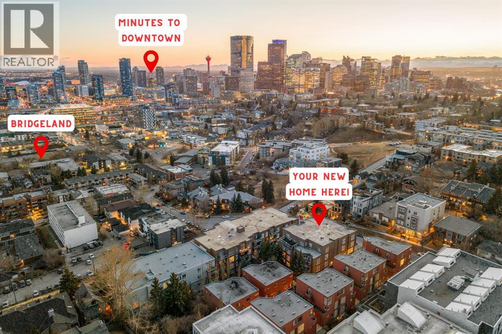 2 BED 2 BATH | CORNER UNIT | STUNNING DOWNTOWN VIEWS | PET LOVERS DREAM | Welcome to the Portico, located in the desirable neighbourhood of Renfrew and right on the border of Bridgeland - two of Calgary’s most vibrant inner-city communities and just minutes from Calgary's downtown core. This gorgeous 2 bedroom, 2 bathroom corner unit offers nearly 900 sq ft of thoughtfully designed space, wrapped in floor-to-ceiling windows that flood this open-concept home with beautiful natural light. With S/SW exposure, you’ll enjoy the sunshine as well as stunning views of downtown and the iconic Calgary Tower - the sunsets are especially breathtaking! Inside, the kitchen features plenty of cabinetry, granite countertops, stainless steel appliances, and a raised bar for casual dining. The dining space has the sweetest custom-built breakfast nook from which you also get to enjoy the city views. The bright and airy living area features a cozy gas fireplace, perfect for Calgary winters. The spacious entryway makes a welcoming first impression, and the dedicated laundry room offers additional storage space to keep everything organized. One titled underground parking stall & a large secure storage locker is included. Step out onto your private balcony overlooking downtown, complete with a gas BBQ line - perfect for summer evenings with friends or quiet mornings soaking in the city views. Pet lovers or those with mobility issues will especially appreciate this unique building design. Entry is from the second level, meaning no elevator or stairs are required for you or your pup, while the unit itself is elevated above ground level for added privacy and security. The Portico is a pet-friendly building with fantastic off-leash parks nearby. Living here means getting to enjoy the cafés, restaurants, shops and river pathway systems that make Renfrew and Bridgeland so sought-after. Calgary favourites like Luke’s Drug Mart, Bridgeland Market, Bar Gigi, and Mari Bakeshop are all minutes away, with easy access to downtown. Step into the heart of Bridgeland and Renfrew living - comfort, convenience and community all in one place. This condo is the perfect opportunity to plant roots in one of Calgary’s best inner-city neighbourhoods. (31666988)