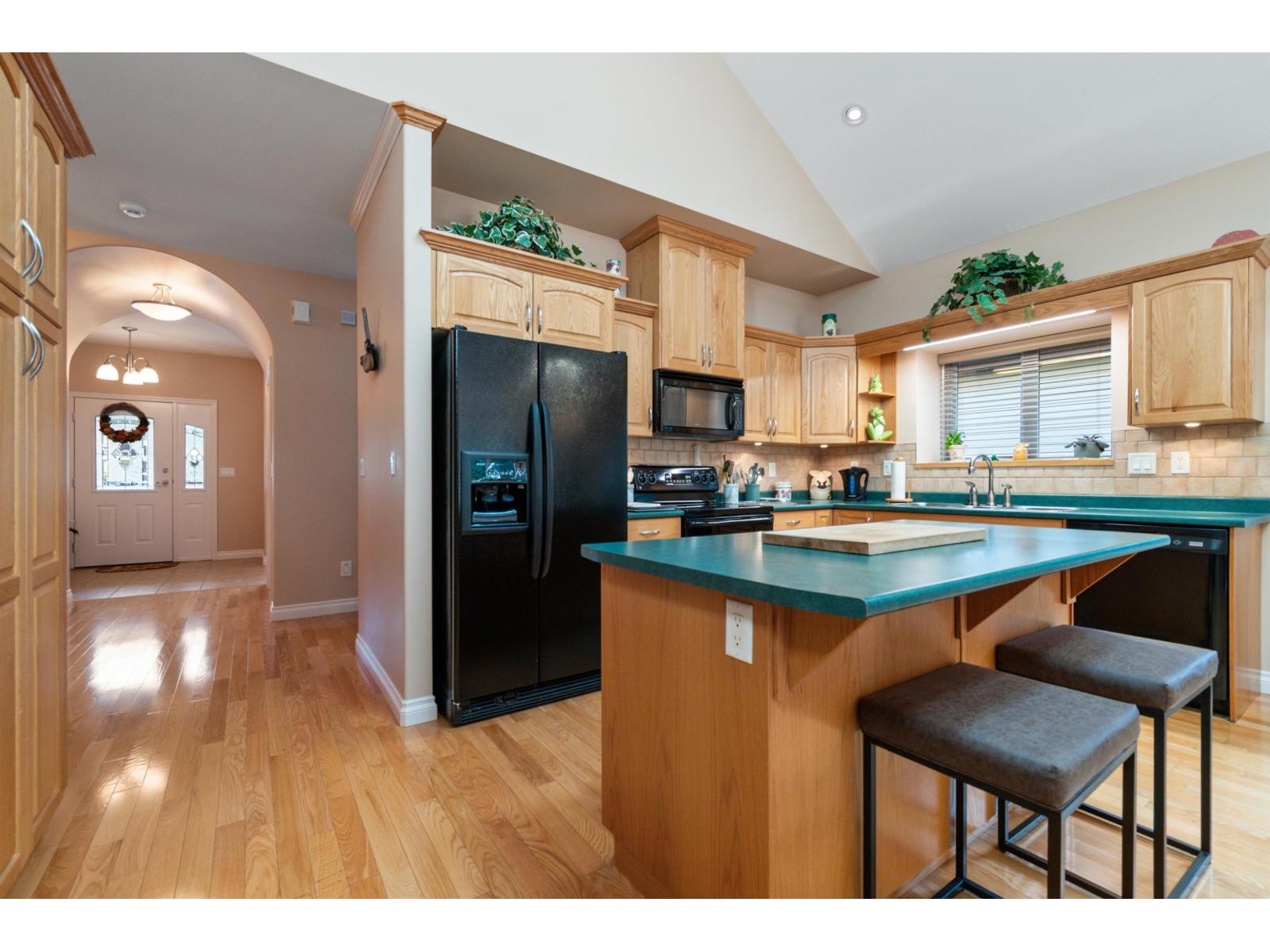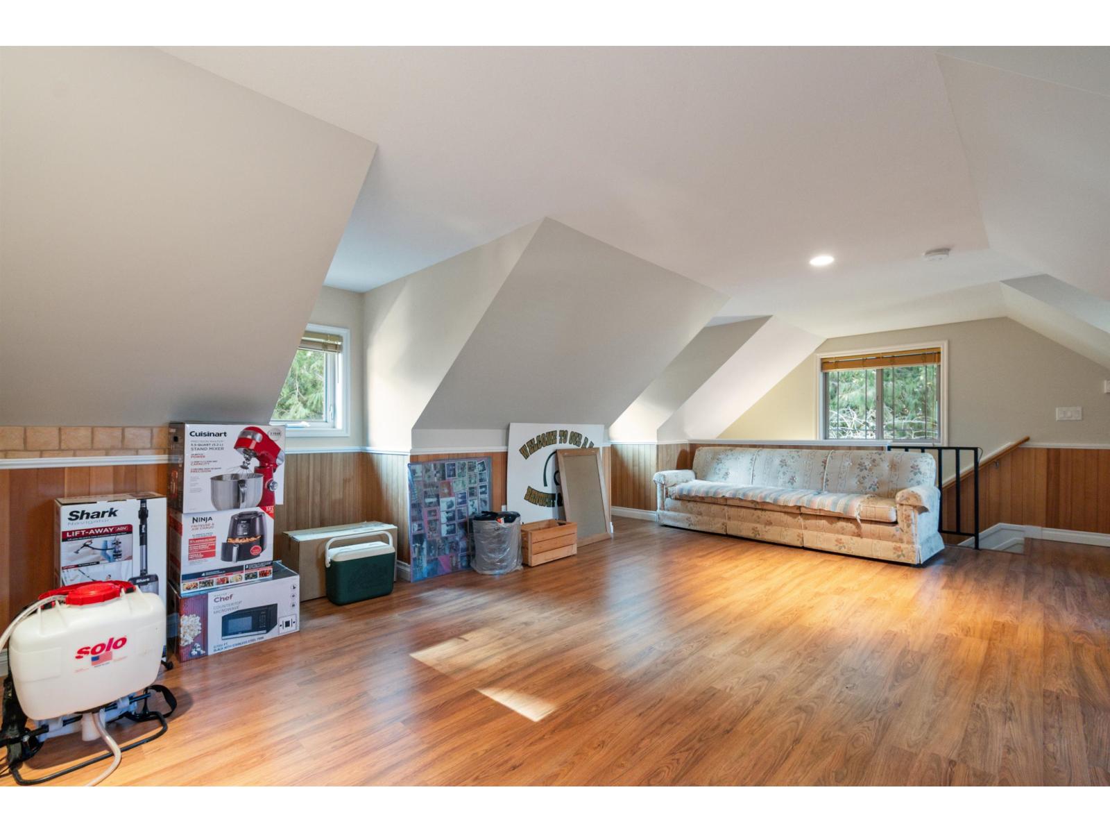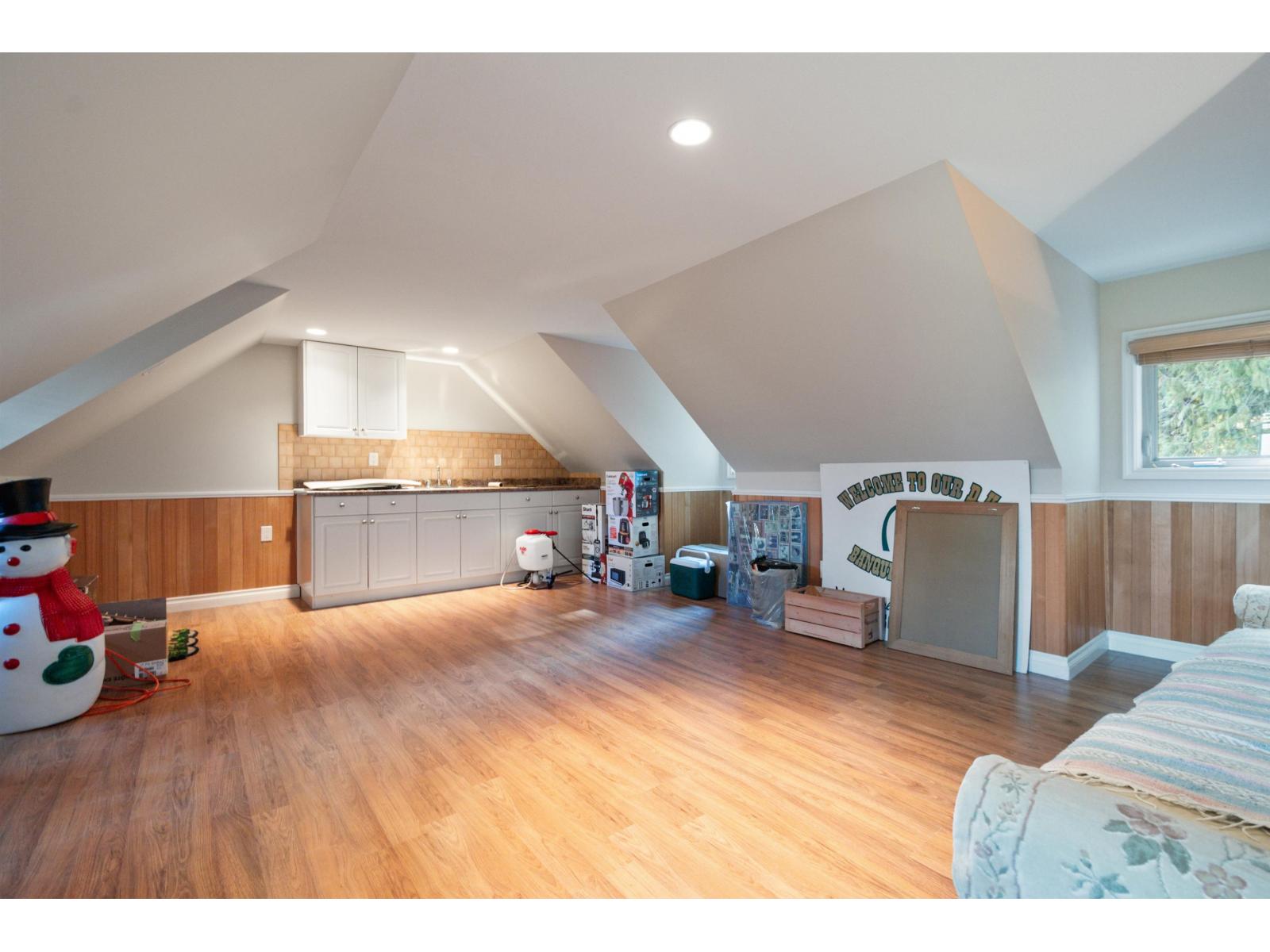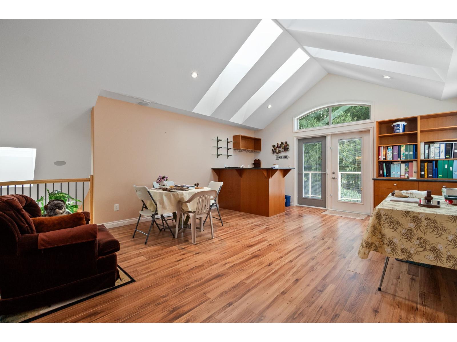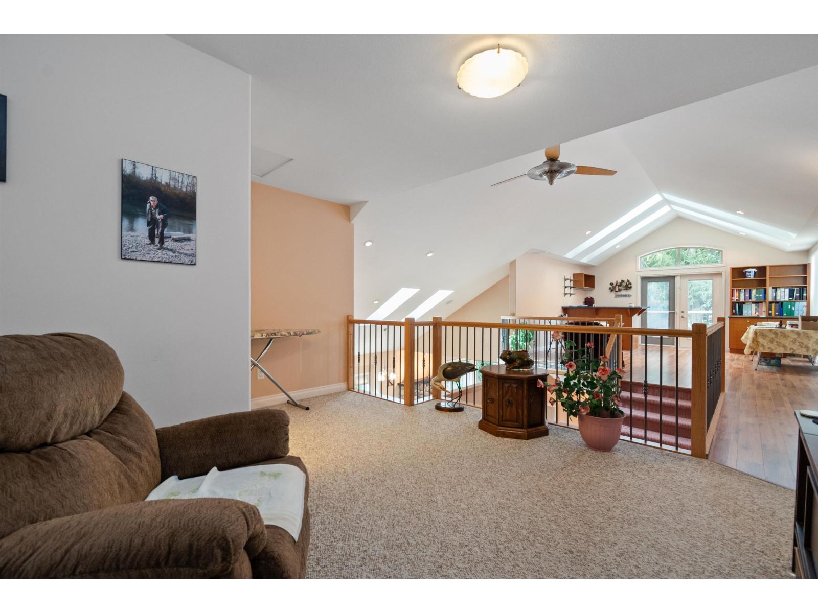 Custom-built rancher with bonus loft and impressive 2-storey finished detached shop, backing greenspace on a flat lot in desirable East Chilliwack. Hardwood floors, 10' ceilings, vaulted ceilings in the kitchen and living room, and a stunning floor-to-ceiling stone fireplace create a bright yet dramatic main living space. Formal dining room, spacious kitchen with ample storage, and family room with n/g fireplace opening to a covered patio and private yard. Main floor features an updated bath with walk-in shower. Massive upper loft includes a wet bar and charming balcony overlooking Elk Creek and surrounding nature. Detached tandem shop with finished upper floor offers endless possibilities for a workspace, retreat, gym or office area. (32471540)