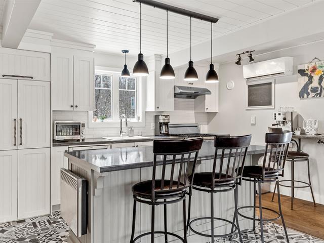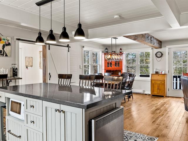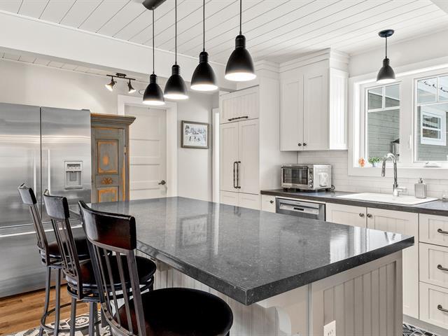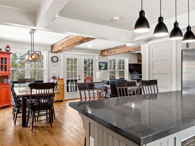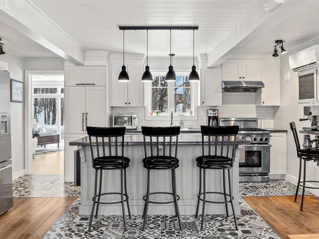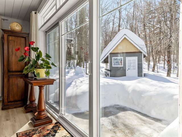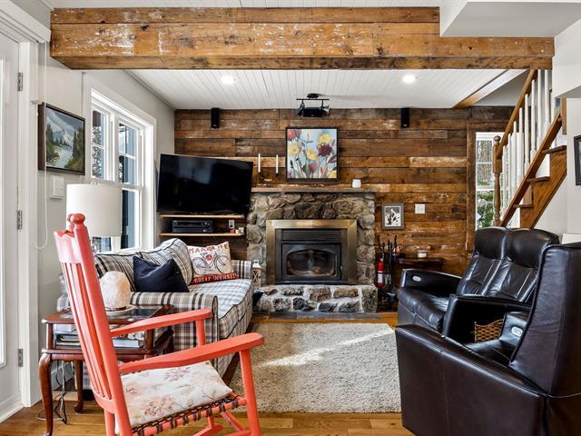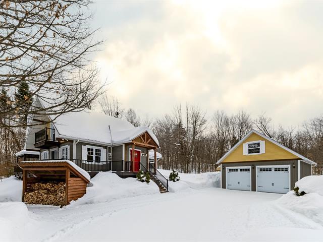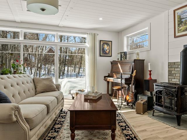 Charming fully renovated property located in the prestigious Blue Hills Domain in Morin-Heights. Notarized access to Cook and Corbeil lakes. Featuring 2 bedrooms and a spectacular oversized sun-filled family room that can serve as an immense primary bedroom or multifunctional space. Inviting, modernized living areas. Peaceful lot surrounded by nature, perfect for outdoor enthusiasts. Double garage with finished mezzanine offering abundant storage or workshop space. Sought-after area close to services and activities. (44631045)
