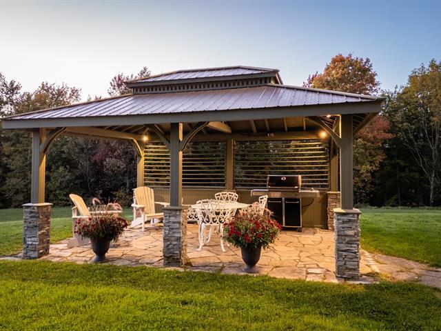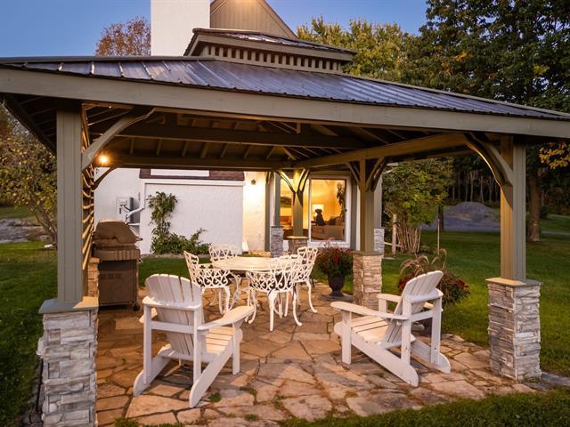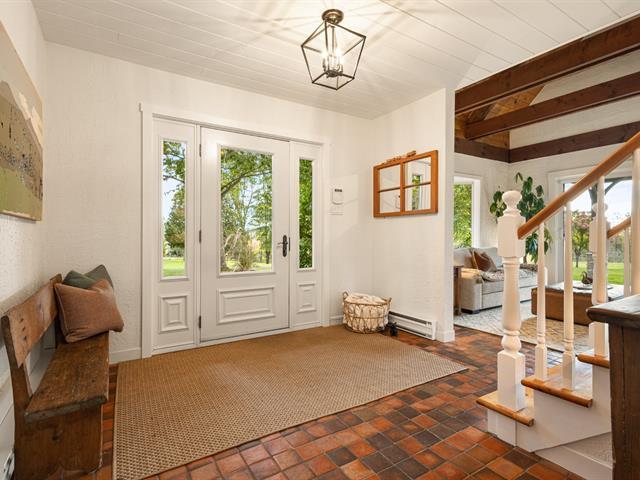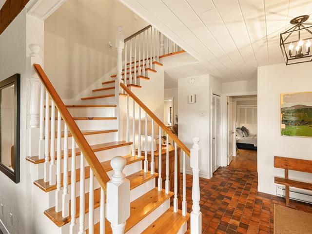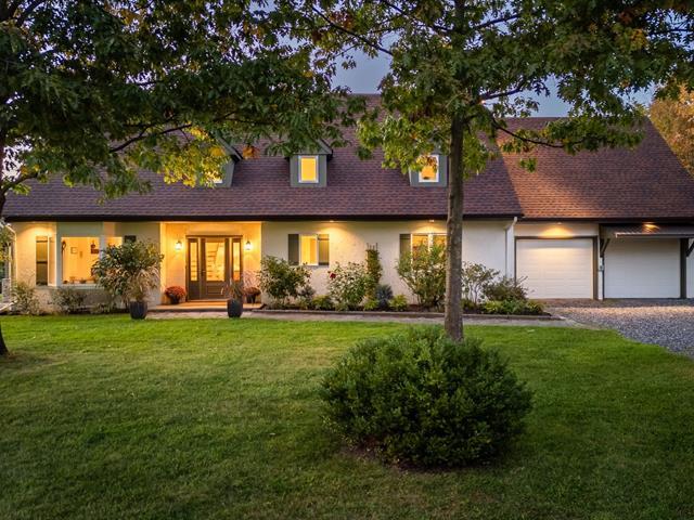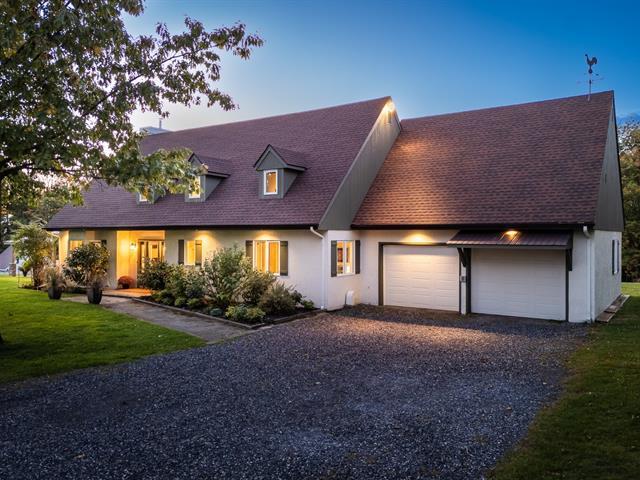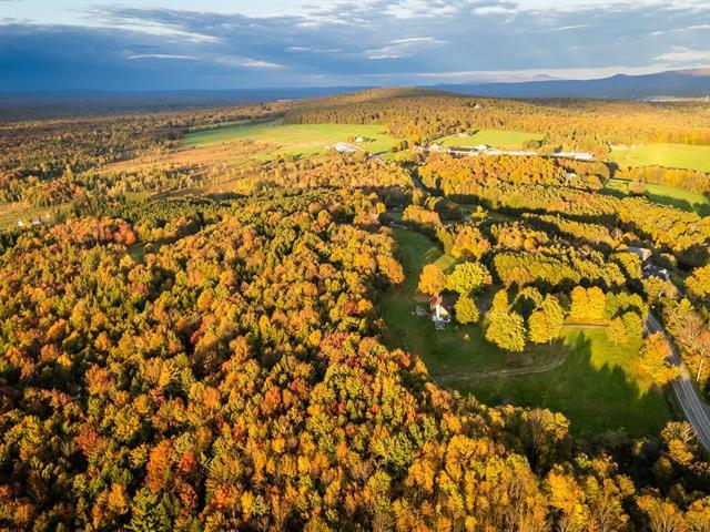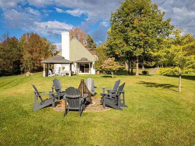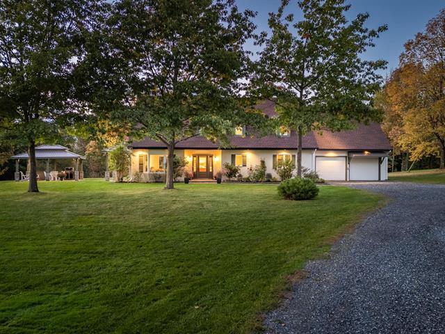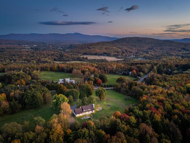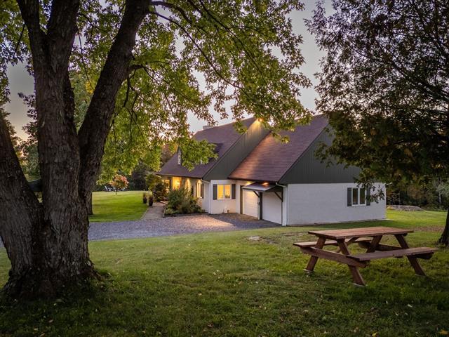 Large property with beautiful views of the Sutton and Pinacle mountains. The residence sits on 26.7 acres of green-zoned land. Ideal location, only 100 km from Champlain Bridge, 5 minutes from Knowlton, 13 km from Sutton, and 15 km from Bromont. Comprising over 3,500 sq. ft. of living space, including a fully finished basement, the house is spacious and well-divided. Completed by an attached double garage and shed. The property offers 4 bedrooms, and 3 bathrooms, one of which adjoins the master bedroom on the first floor. Lots of storage space. Cathedral ceiling, wood-burning fireplace, and lovely mezzanine. (55718570)