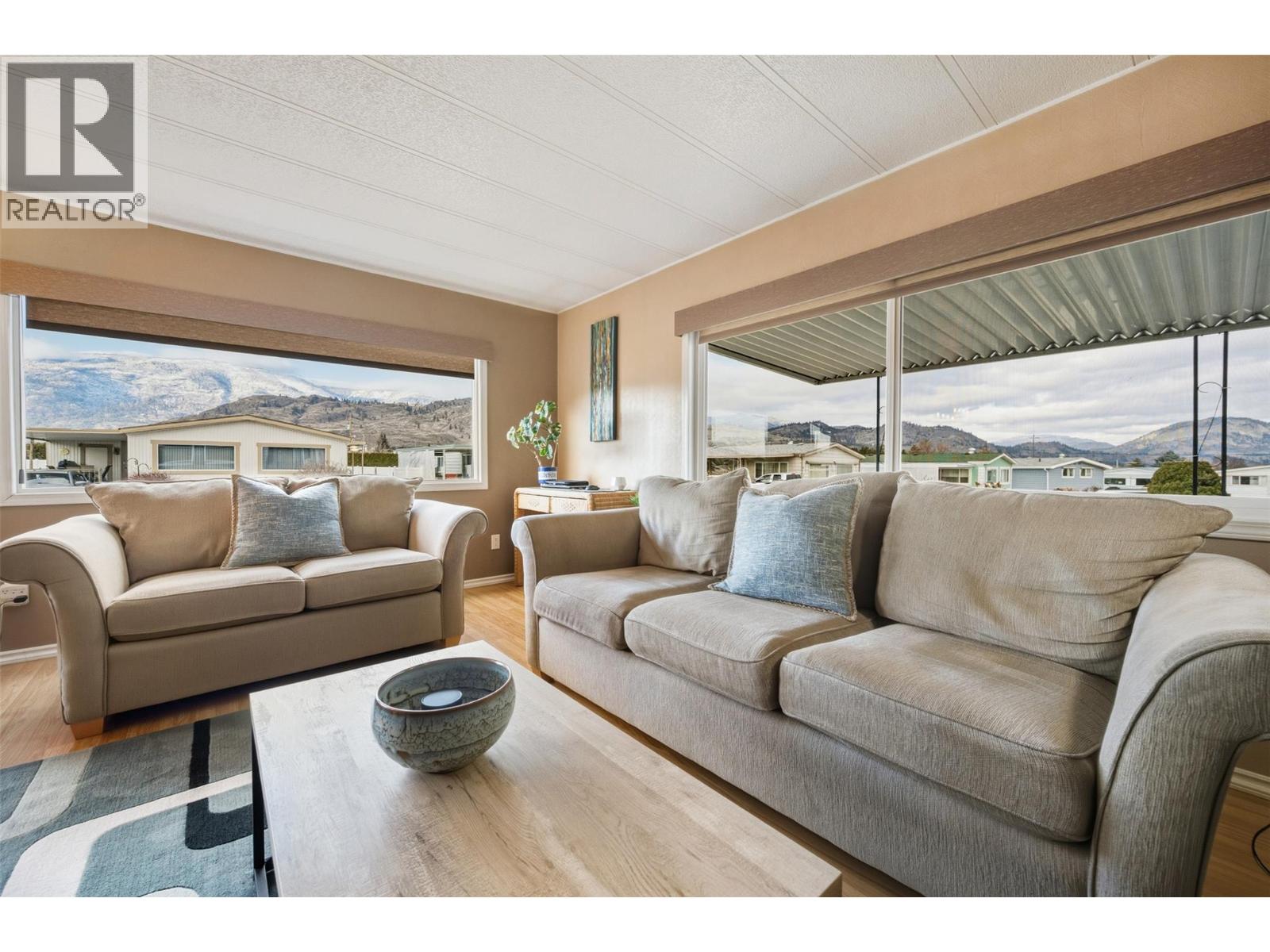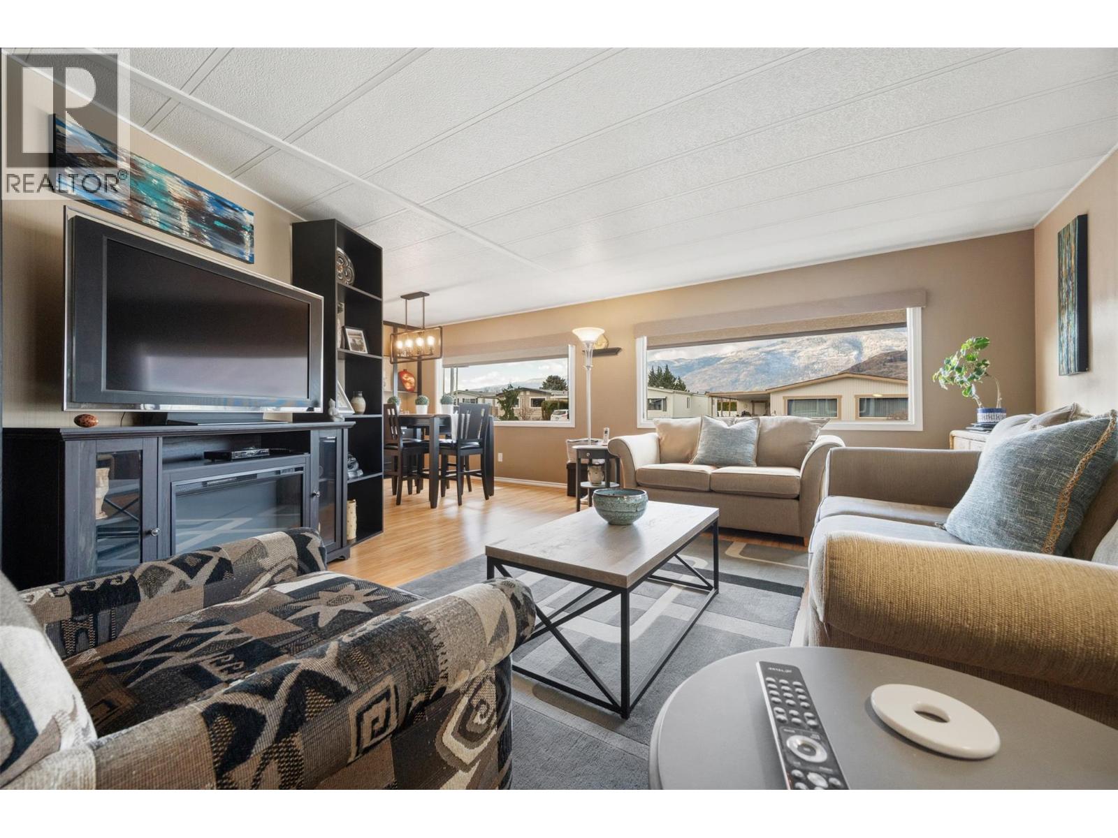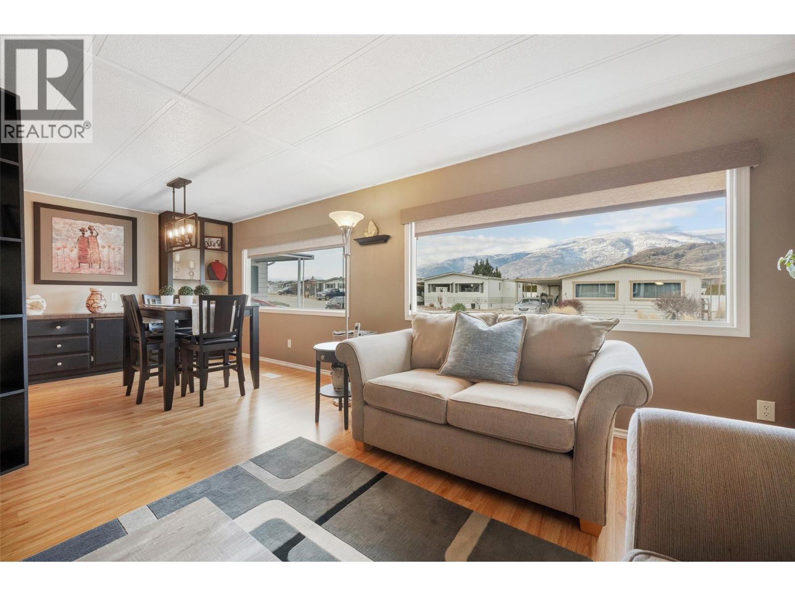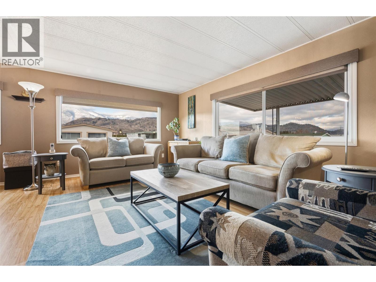 Welcome to Cherry Grove Estates, a sought after 55+ community perfectly situated beside the NK’MIP Canyon Desert Golf Course in beautiful Oliver, BC. This well-maintained double-wide manufactured home offers comfort, functionality, and peace of mind with numerous thoughtful updates throughout. Inside, you’ll find a bright and clean layout featuring updated cabinetry and countertops, a walkin shower in the ensuite, and a home that has clearly been well cared for. Major upgrades include an updated gas furnace, air conditioning unit, and roof, providing efficiency and reliability for years to come. A standout feature is the heated and insulated workshop, ideal for crafters, hobbyists, or anyone dreaming of a dedicated creative space. The enclosed patio/sunroom adds valuable extra living space and includes a convenient storage room. Cherry Grove Estates offers an active clubhouse with regular activities for residents, a welcoming and social community atmosphere. Pets are welcome with restrictions. Enjoy the convenience of being close to shopping, recreation, and local amenities, with Penticton just 35 minutes away and the beaches of Osoyoos only 20 minutes from your doorstep. Move in ready and set in a prime location, this home is an excellent opportunity to enjoy relaxed, low maintenance living in the South Okanagan. Some furniture included! (39753572)