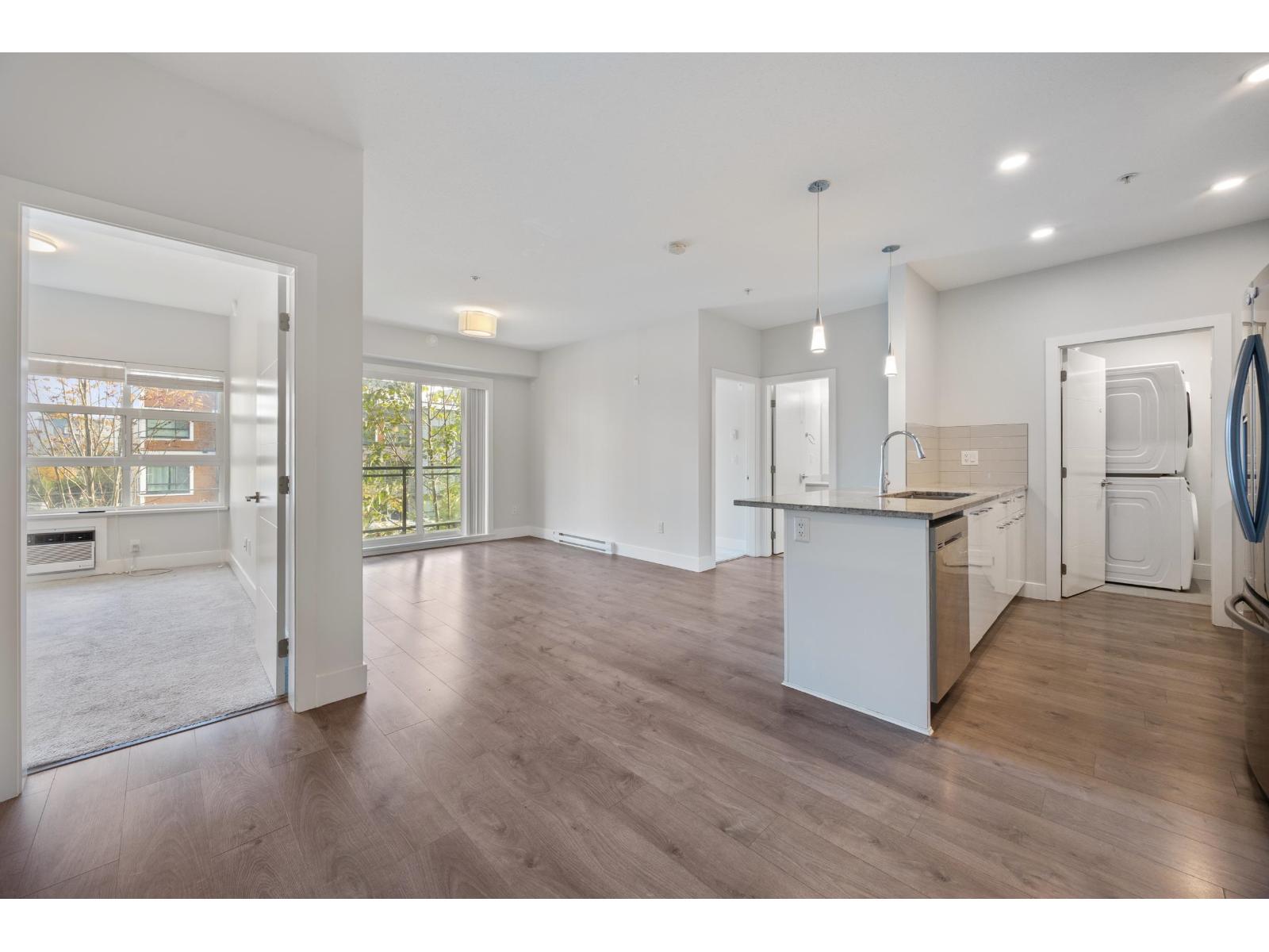Welcome to The Wesley at Brydon Creek! This stunning 2-bedroom, 2-bathroom home features a bright, open-concept layout with bedrooms thoughtfully positioned on opposite sides for maximum privacy. Enjoy high-end finishes throughout, including granite countertops, stainless steel appliances, 9-foot ceilings, and air conditioning in the primary suite. Includes 1 parking stall and 1 storage locker. Perfectly situated within walking distance to Brydon Park and Baldi Creek Trail, and just minutes from Newlands Golf & Country Club, Willowbrook Mall, Costco, Walmart, T&T, Canadian Tire, Home Depot, schools, restaurants and more. Commuting is easy with nearby public transit, highway access, and the future SkyTrain line coming soon. Call today to book your private showing! (32472043)