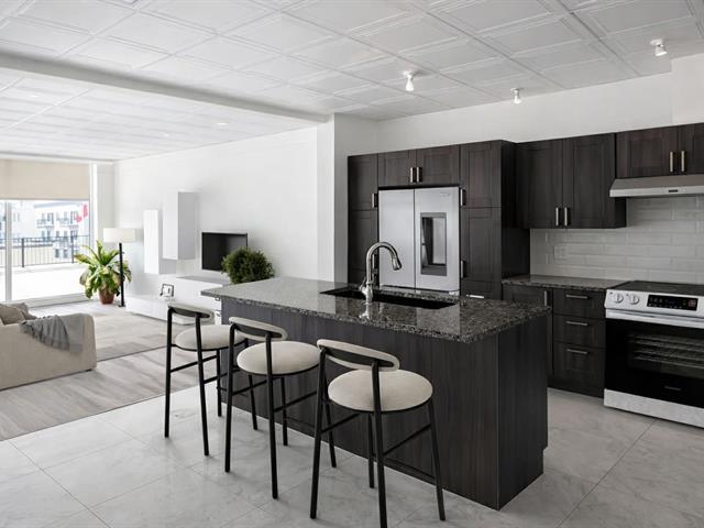 Treat yourself to a lifestyle that combines comfort, light, and an exceptional location. This beautifully maintained condo, located in the heart of Rimouski, welcomes you with a contemporary open-concept design. The modern kitchen with a central island opens onto a spacious living room bathed in light thanks to generous windows. The unit has 2 bedrooms and 1 bathroom. Parking and indoor storage included. Common areas: gym, indoor pool, sauna, and terrace with a splendid view of the St. Lawrence River. Quiet building, close to everything. (47635089)