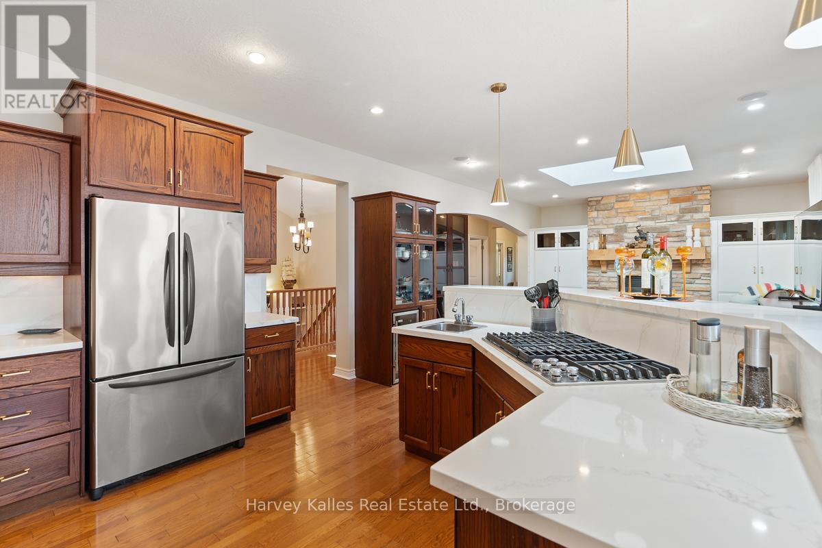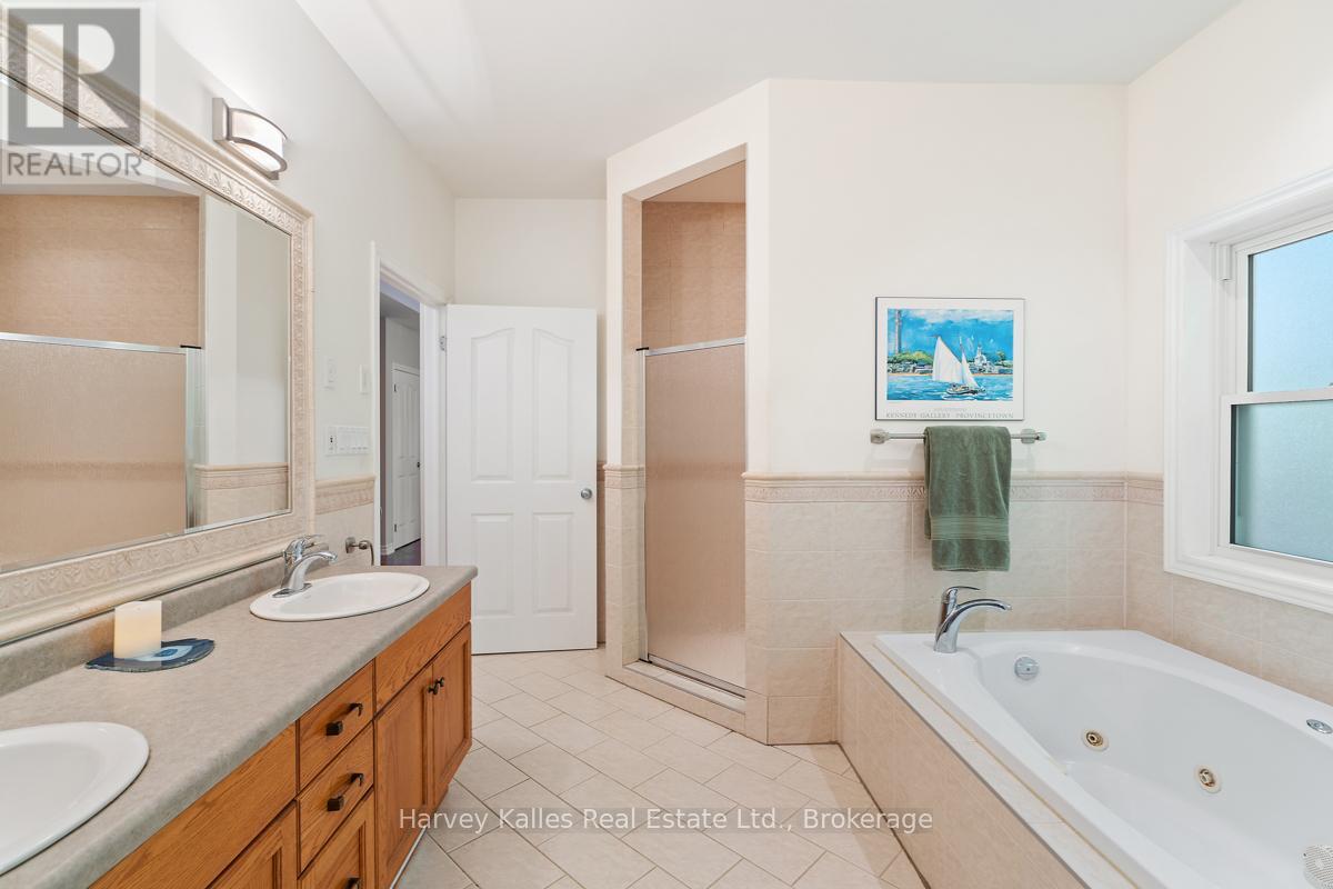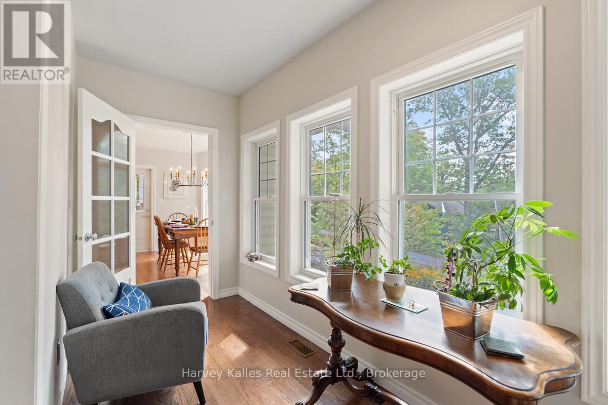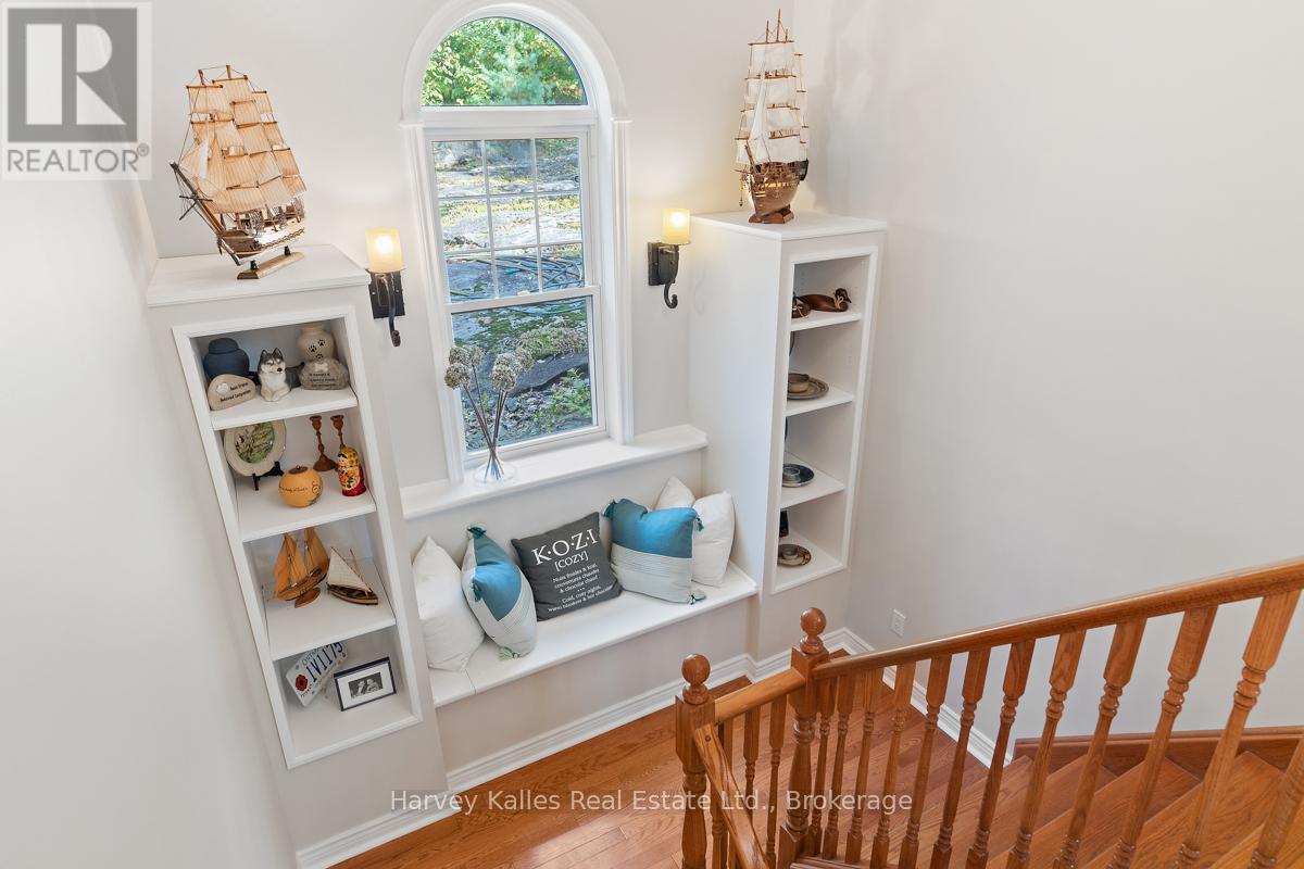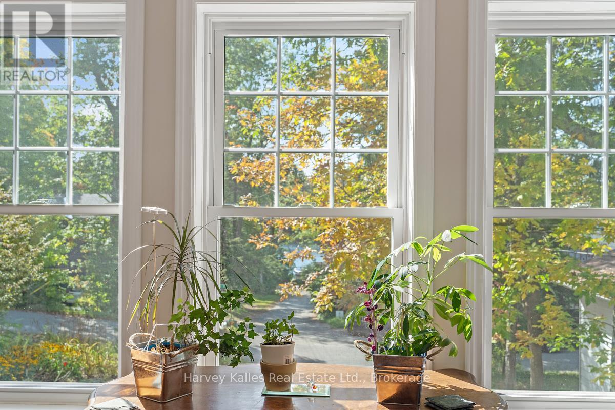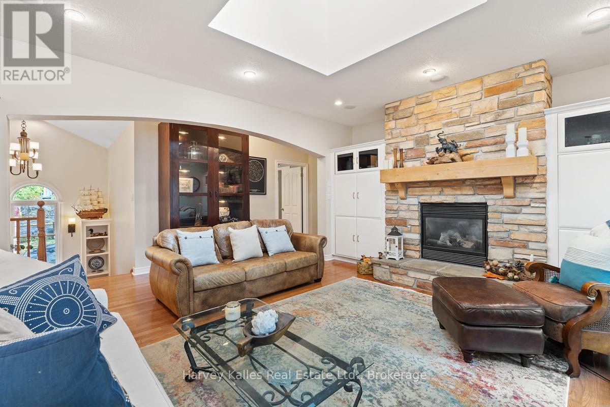 This architecturally striking circa-2005 in-town Bala home delivers over 3,800 sq. ft. of beautifully finished living space, combining timeless design with an unbeatable Muskoka lifestyle. Set on a private 80' x 190' lot with mature trees, granite outcroppings, and lush perennial gardens, the property also offers captivating views of Lake Muskoka and exceptional curb appeal.A NEW (2025) roof, impressive stone pillars, a welcoming covered front porch, and an attached 1.5-car garage set the tone. Tucked away on a quiet, recessed street, you're just steps from Bala's most beloved amenities - including the Historic Bala Walk, Don's Bakery, charming shops, dining, public docks, and boat launches.Inside, the inviting foyer opens to a bright, open-concept living, dining, and kitchen space designed for gathering and entertaining. Highlights include a cozy propane fireplace, 5-burner propane stove, quartz countertops, stainless steel appliances, and abundant cabinetry.The main floor primary suite is a private retreat, featuring a walk-in closet, luxurious 5-piece ensuite, and walkout access to a sun-soaked, southwest-facing sunroom - the perfect place to unwind. A guest bedroom with ensuite privilege to a 3-piece bath and a spacious laundry/mudroom complete the main level.The fully finished lower level, with its own separate entrance, adds incredible flexibility. Offering a bedroom, office, boardroom, 3-piece bath, and direct garage access, it's ideal for working from home, hosting extended family, or creating a private in-law suite.Recent upgrades include newer appliances, quartz countertops, updated kitchen sink, fresh paint, and a leaf guard system - ensuring peace of mind and modern comfort.Solid, meticulously maintained, and superbly located in the heart of Muskoka, this exceptional home blends privacy, versatility, and convenience - just minutes to Port Carling, Gravenhurst, Hardy Park, and multiple lake access points. (42186069)