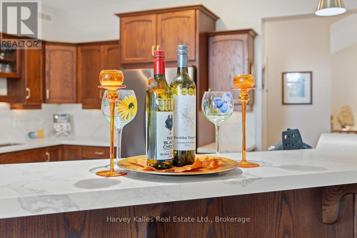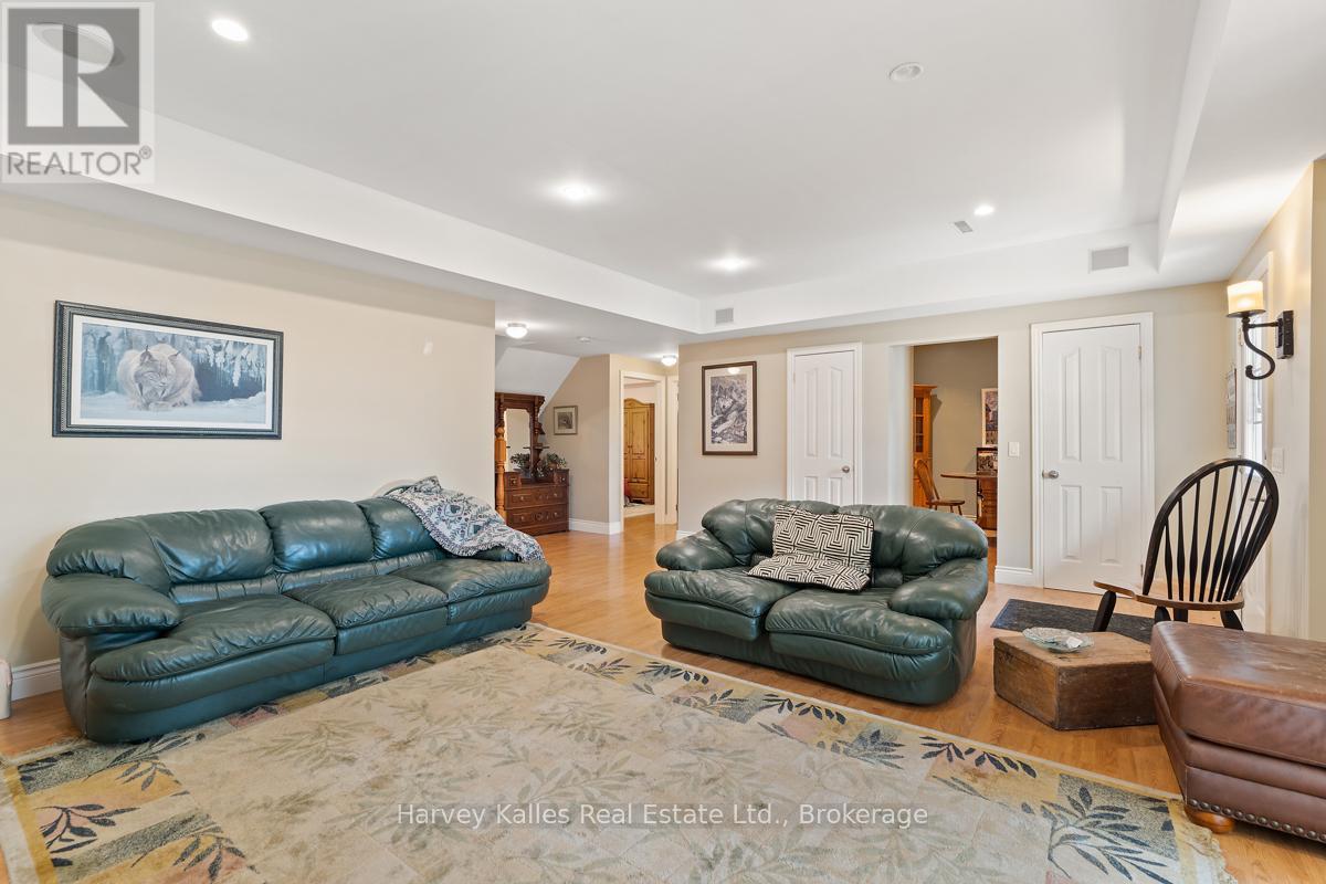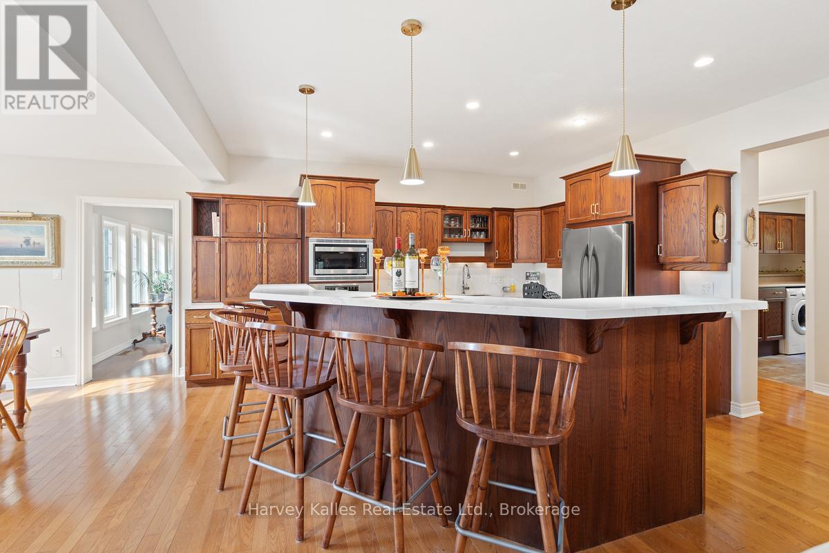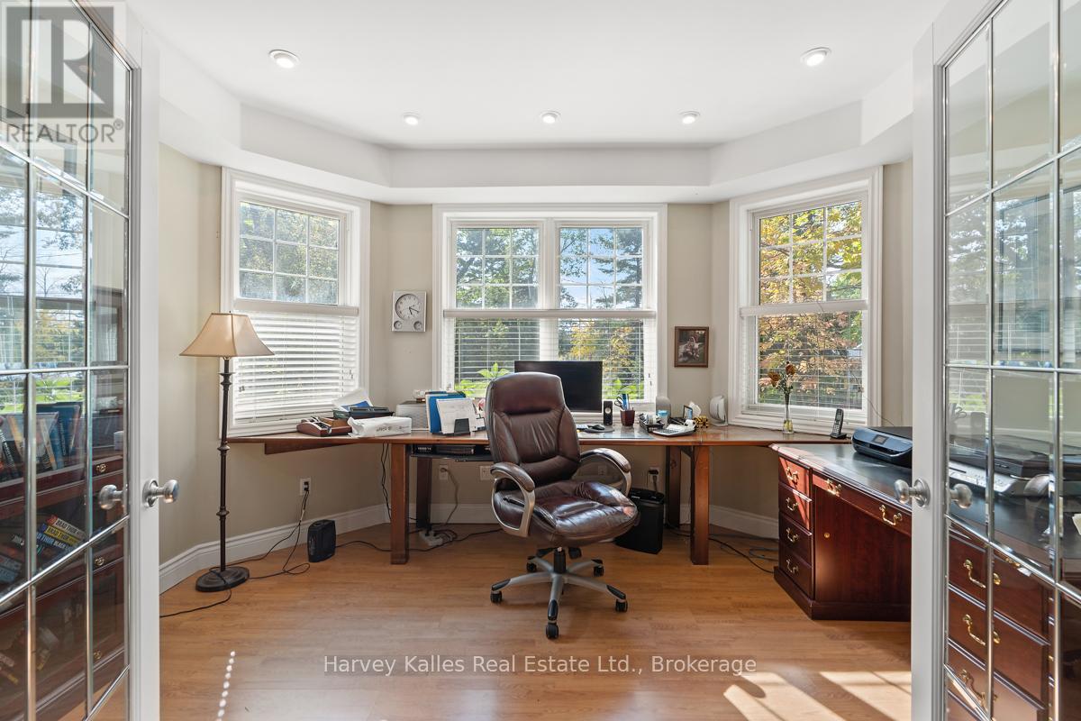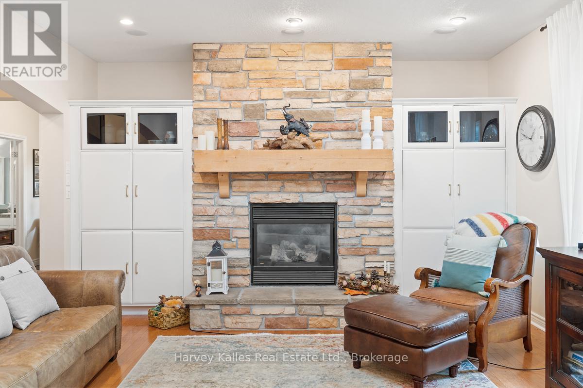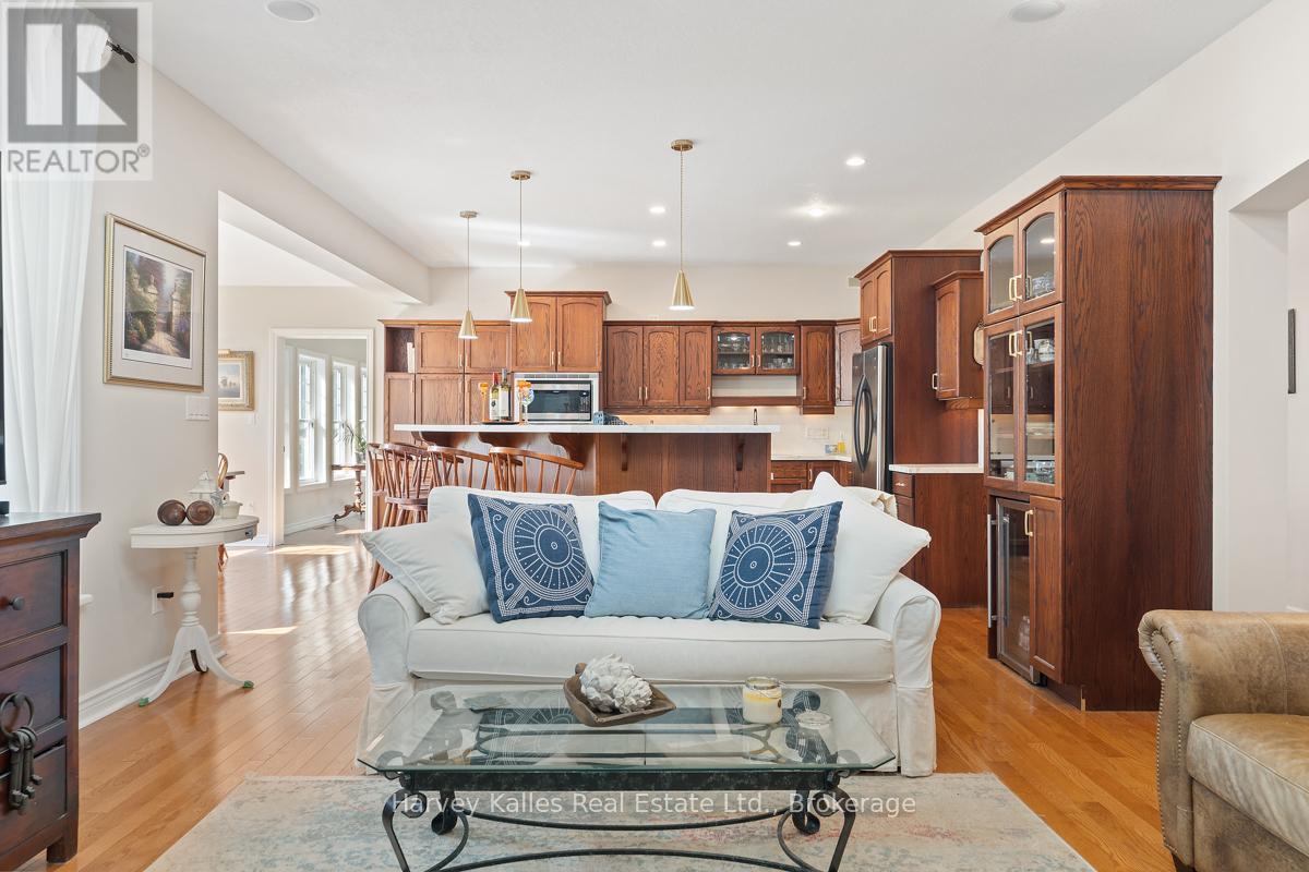 This architecturally striking circa-2005 in-town Bala home delivers over 3,800 sq. ft. of beautifully finished living space, combining timeless design with an unbeatable Muskoka lifestyle. Set on a private 80' x 190' lot with mature trees, granite outcroppings, and lush perennial gardens, the property also offers captivating views of Lake Muskoka and exceptional curb appeal.A NEW (2025) roof, impressive stone pillars, a welcoming covered front porch, and an attached 1.5-car garage set the tone. Tucked away on a quiet, recessed street, you're just steps from Bala's most beloved amenities - including the Historic Bala Walk, Don's Bakery, charming shops, dining, public docks, and boat launches.Inside, the inviting foyer opens to a bright, open-concept living, dining, and kitchen space designed for gathering and entertaining. Highlights include a cozy propane fireplace, 5-burner propane stove, quartz countertops, stainless steel appliances, and abundant cabinetry.The main floor primary suite is a private retreat, featuring a walk-in closet, luxurious 5-piece ensuite, and walkout access to a sun-soaked, southwest-facing sunroom - the perfect place to unwind. A guest bedroom with ensuite privilege to a 3-piece bath and a spacious laundry/mudroom complete the main level.The fully finished lower level, with its own separate entrance, adds incredible flexibility. Offering a bedroom, office, boardroom, 3-piece bath, and direct garage access, it's ideal for working from home, hosting extended family, or creating a private in-law suite.Recent upgrades include newer appliances, quartz countertops, updated kitchen sink, fresh paint, and a leaf guard system - ensuring peace of mind and modern comfort.Solid, meticulously maintained, and superbly located in the heart of Muskoka, this exceptional home blends privacy, versatility, and convenience - just minutes to Port Carling, Gravenhurst, Hardy Park, and multiple lake access points. (42186069)