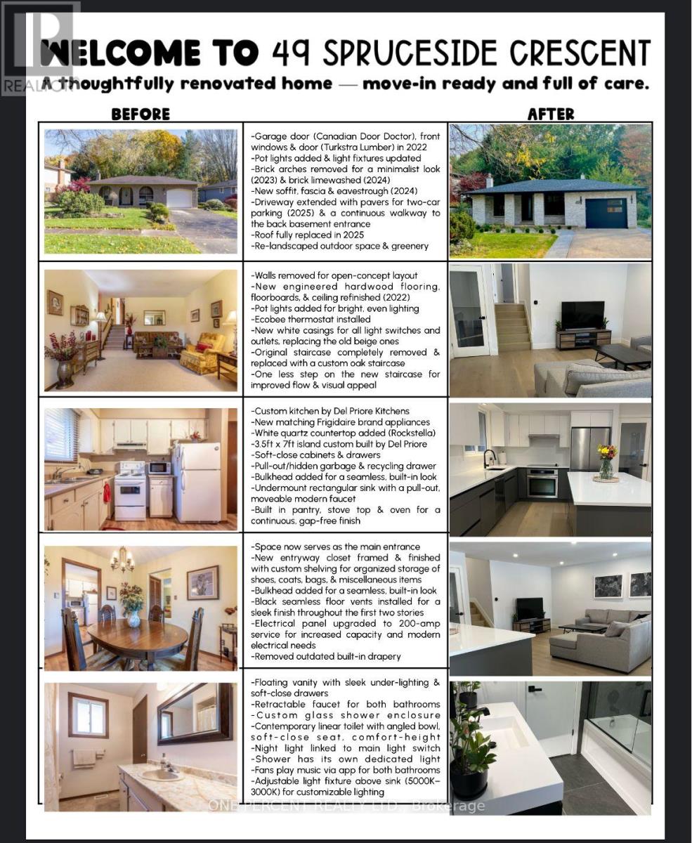 Welcome to 49 Spruceside Crescent in the heart of Fonthill; a beautifully upgraded modern back-split nestled in one of Pelham's most sought-after neighbourhoods. Renovated from top to bottom, this move-in-ready home offers stylish finishes and thoughtful updates throughout. Featuring 3 bedrooms, 2 full bathrooms, and an inviting open-concept kitchen and living area, the layout is designed for both everyday comfort and effortless entertaining. A cozy lower-level den provides the perfect space for movie nights, a home office, or a quiet retreat. Step outside to your fenced private backyard, accessible from both the main level and basement walkout, creating seamless indoor and outdoor flow. Surrounded by mature greenery, the yard feels like your own personal hideaway and is ideal for relaxing or hosting family and friends.This home offers the perfect blend of modern updates, functional design, and an exceptional location. Don't miss out on a true turnkey opportunity in one of Niagara's most desirable communities! (42186419)