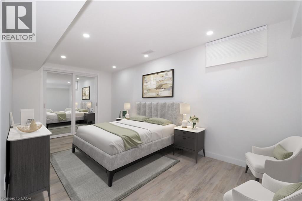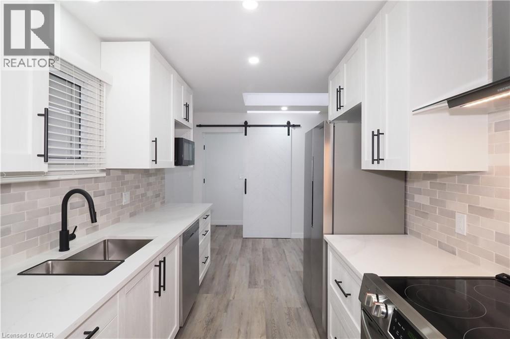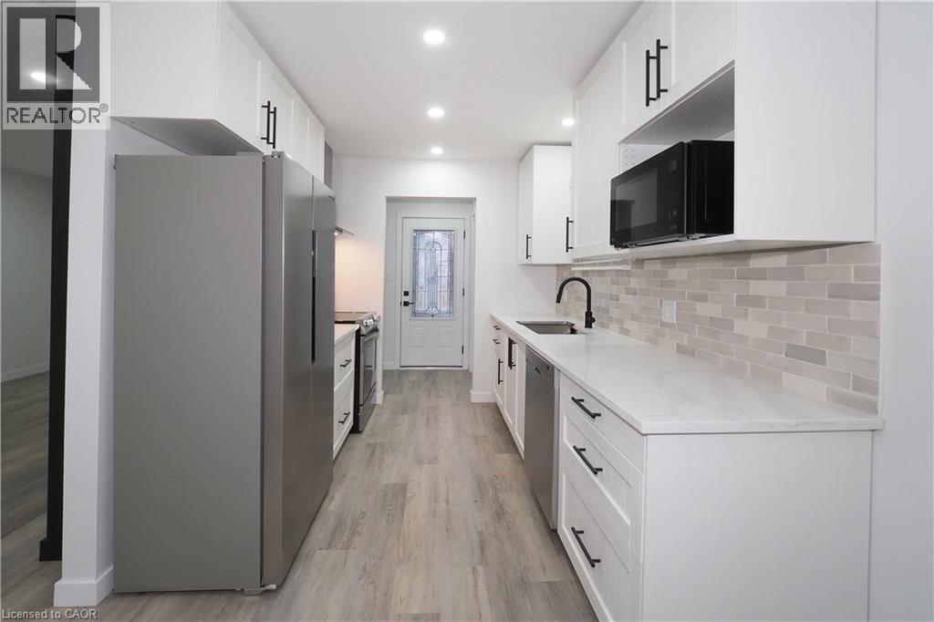 Impressive Bungalow with Garage in a Coveted North End Setting! Bigger than it appears, this tastefully and professionally updated bungalow showcases 3 bedrooms, 2 kitchens and 2 stylish bathrooms, positioned on a nicely landscaped fully fenced lot in the highly regarded Lynden Park community. Enter to find an outstanding kitchen equipped with stainless steel appliances and sanitary low-maintenance quartz countertops, paired with a designer ceramic tile backsplash. A sliding barn door beside the kitchen provides convenient access to the basement, which can function as an in-law suite, complete with its own bathroom, kitchen and laundry space. The sizeable living room boasts a large bay window and new luxury vinyl plank flooring extending across the main level. The rejuvenated main bath features a modern vanity with sleek fixtures. Two well-designed bedrooms finish the primary floor with direct entry to the new deck. The lower level includes exterior access via a side door and presents a contemporary 3-piece bathroom with walk-in shower, a kitchen with epoxy flooring, generous family room and a bedroom with closet. This house is genuinely move-in ready and perfectly situated just minutes from Hwy 403—ideal for commuters. Appreciate being within walking distance of both public and Catholic schools, and only minutes from Lynden Park Mall, supermarkets, plentiful amenities, and the new Costco. The extended paved driveway offers ample parking and leads to an epoxy-coated single-car garage. In the secluded backyard with no rear neighbours, unwind or entertain on the new deck. Move right in and begin enjoying your North End dream today! (70187319)