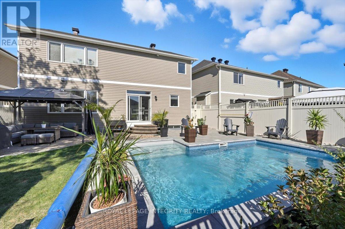 OH Sun March 1st 2-4pm. Welcome to 1110 Luesby Crescent - a stunning 6 bedroom, 4 bathroom home with backyard oasis located on quiet street in the heart of Fallingbrook, one of Orleans most established and family-friendly neighbourhoods! Pull up the driveway that can easily accommodate 4 cars, providing access to the double car garage and interlock walkway leading you to the welcoming foyer where you'll get the first glimpse of your beautiful main floor with functional layout. Gleaming hardwood floors guide you through the living room and dining room with serving bar and wine fridge, before making your way to the true heart of the home, the entertainer's dream kitchen, offering tons of cabinets and counter space, stainless steel appliance, walk-in pantry, beautiful backsplash and granite counters and large center island with tons of seating overlooking the family room with cozy fireplace, and patio doors giving access to the fully fenced south-facing backyard with in-ground heated salt water pool (2021), interlock sitting area with gazebo and landscaping - the perfect place to entertain or unwind after work! Completing the main floor is a great size office, partial bathroom and access to the double car garage. Upstairs, the hardwood continues into the sizeable primary bedroom with views of the backyard, great size walk-in closet and 4 piece ensuite with glass shower and corner soaker tub. An additional 4 great size bedroom, a full bathroom with heated floors and dedicated laundry room complete in the basement. The fully finished basement offers a massive versatile family room, a sixth bedroom, full bathroom and tons of storage. Located close to excellent schools, parks, transit, and shopping, this home delivers the perfect blend of comfort, space, and location. (42186646)