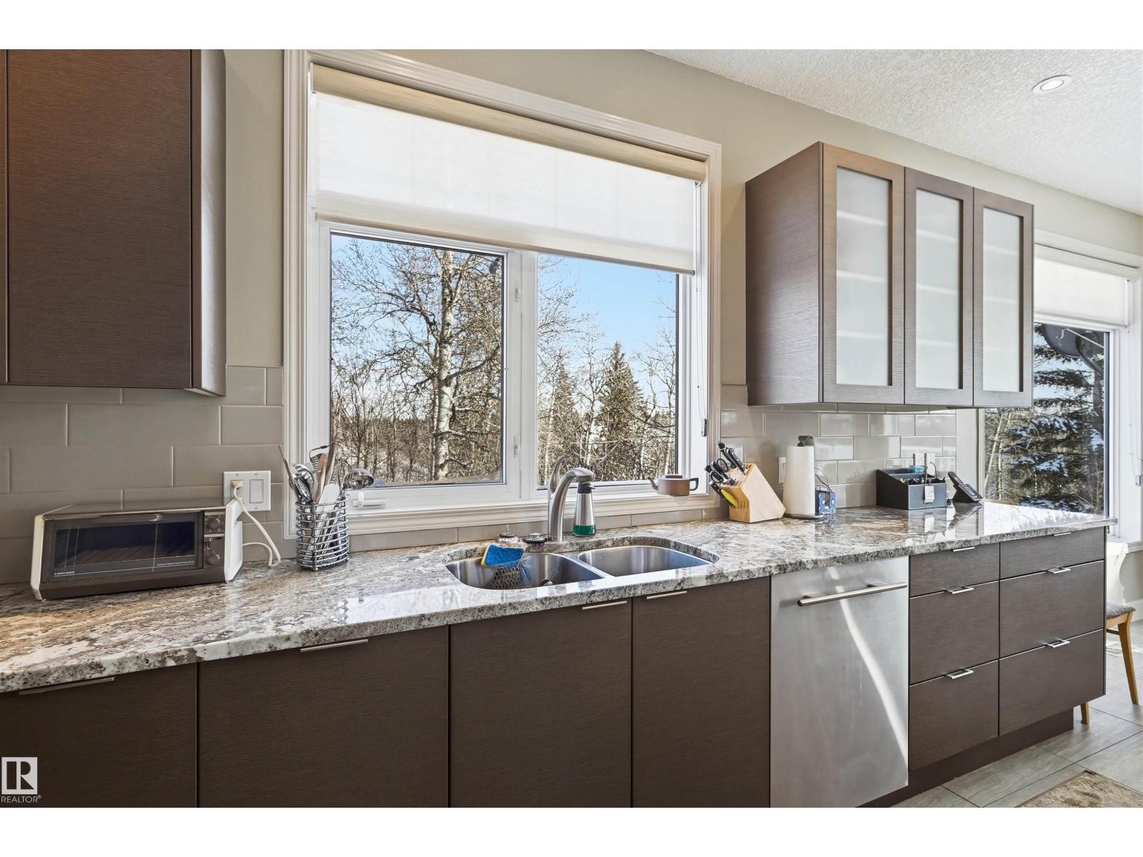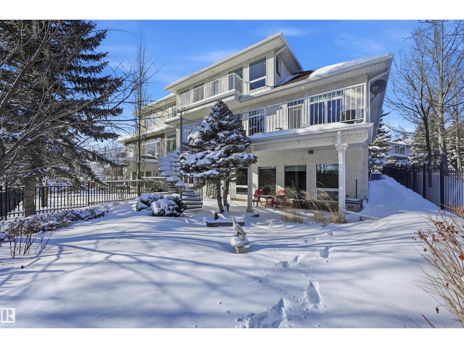 Amazing RAVINE VIEWS from this exclusive custom built, BRASS III with WALKOUT basement and backing & Siding onto the Whitemud Creek Ravine & numerous walkways! Conveniently located minutes from the Whitemud Dr. & Anthony Henday, this property offers quality, privacy, security & maintenance free living! You will love all the large windows and tons of natural light. Complete reno done in 2011.The main floor offers a spacious dining room, den, bathroom and bedroom. The chef in the family will love the custom kitchen with wolf and sub zero appliances, large island, tons of cupboard space, and a lovely nook surround by windows. Entertain in style in the large living area with a custom wet bar area. Upstairs features a gorgeous primary retreat with large windows and access to a deck overlooking the ravine. At the end of the day relax in the spa like ensuite. The WALKOUT basement is fully finished and surrounded by large windows that lets in plenty of natural light. Don't miss seeing this incredible home! (33856372)