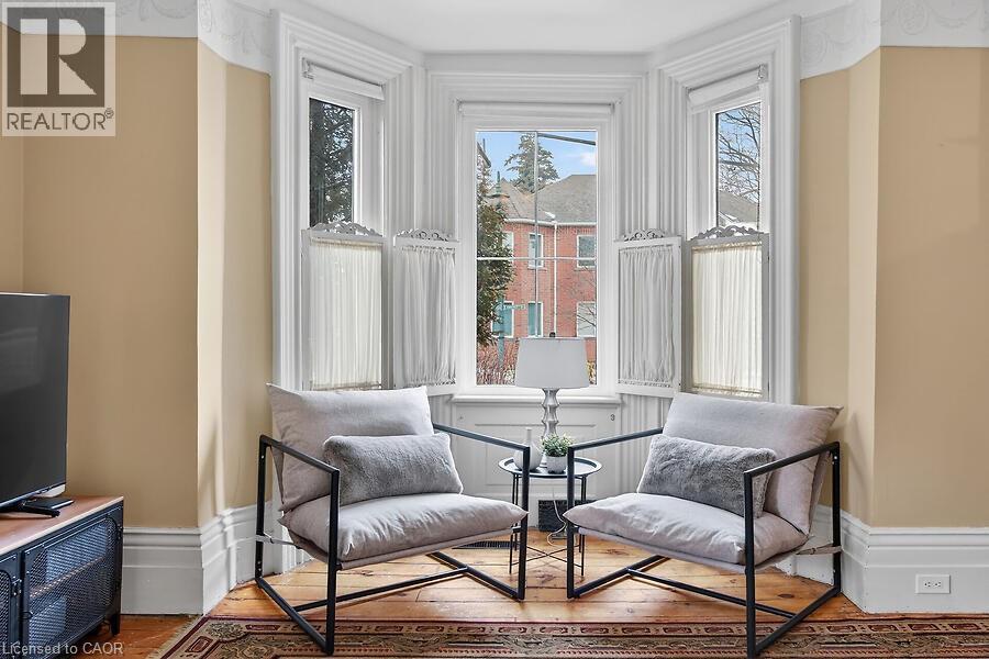 Welcome to 149 Argyle St. N., a charming Victorian home filled with original character and period details, blended with everyday modern comforts. This spacious property features large principal rooms and tall ceilings and windows. The main level offers a generous eat-in kitchen, formal dining room, and living room with a double-sided gas fireplace and two impressive bay windows that bring in plenty of natural light. There’s also a bedroom with a 4-piece ensuite, a large second bedroom, mudroom with side entrance, and a 2-piece bath. The second floor has its own separate entrance and functions as a self-contained in-law suite. It includes a spacious living/dining area with walk-out to a balcony, an eat-in kitchen with ample cabinetry, a large bedroom, and a 4-piece bath with vaulted ceiling, clawfoot tub, skylight, and exposed beams. The suite also has its own washer and dryer. The laundry servicing the main floor is located in the unfinished basement. Outside, you’ll find two separate paved driveways - providing 2 spaces for the 2nd floor and 3 spaces for the main floor, a large landscaped lot with custom fencing, a wraparound side/rear porch, separate front porch, a 10 x 10 shed with power and a 12 x 16 work shed, which has it’s own panel. An excellent opportunity for an owner-occupied business, multi-generational living, or owner/tenant setup. With some updating, it could easily be converted back into a spacious 5-bedroom family home. Great curb appeal and ideally located within walking distance to the Grand River, trails, schools, parks, and shopping. (70188596)