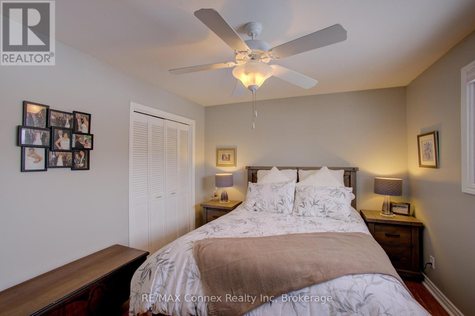 Nestled on a quiet dead-end road, this sturdy brick bungalow sits on a beautifully maintained half-acre lot-an ideal setting for a family or working professional seeking space and tranquility. Surrounded by landscaped grounds at both the front and back, the property offers a serene atmosphere with a walkout from the kitchen to a private patio, ample room for pets to roam, a large shed for storage or recreational equipment, and generous parking for guests and additional vehicles.From the moment you step through the front door, the home exudes warmth and comfort. The bright main living area features a large bay window, an open-concept dining space, and a spacious kitchen complete with built-in appliances, a pantry, and plenty of room to host family gatherings with ease.The primary bedroom is a peaceful retreat, highlighted by a beautifully renovated three-piece ensuite combined with convenient main-floor laundry, a large closet, and abundant natural light. Two additional well-sized bedrooms offer ample closet space and plenty of sunlight.The finished basement extends the living space with a large recreation or games room, a versatile storage area that could serve as a home office, as well as a utility room combined with another laundry area and workshop-providing flexibility to suit your lifestyle needs. (42187921)