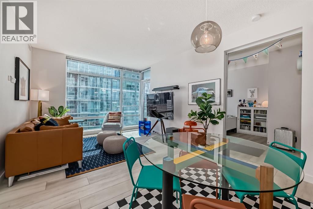 This revamped Union Square condo captures the essence of modern urban sophistication. Lofty ceilings and expansive windows flood the space with natural light while framing breathtaking views of Downtown Calgary. The kitchen is a contemporary masterpiece, featuring an industrial-chic design with a black, white, and stainless-steel color palette. The upgraded light grey vinyl plank floors and statement lighting, including funky track lights and a bold chandelier, add a trendy edge to the space. The kitchen boasts a sleek stainless-steel-look countertop, offering a stylish modern update over its original quartz finish. A generous island invites socializing and casual dining, seamlessly flowing into the open-concept living area. Here, a built-in nook provides a versatile space for a home office or extra storage. Step out onto the private balcony for sweeping city views, from the iconic Calgary Tower to the bustling Stampede grounds. The primary suite is a retreat, complete with a walk-in closet and a spa-like ensuite featuring a vessel sink and glass-enclosed shower. The second bedroom is equally spacious, with jack-and-jill access to the main bathroom, ensuring privacy and convenience for guests or roommates. In-suite laundry adds to the effortless lifestyle this home provides. Located in the heart of the Beltline, this condo offers secured underground parking and unbeatable walkability. With a walkscore of 93, you’re just steps away from renowned bars, restaurants like Ten Foot Henry, Midtown, and Proof, as well as parks, grocery stores, fitness centers, and the C-train. The river pathways and Stampede grounds are also within easy reach, making this an ideal home for modern city dwellers. Schedule your viewing today to experience contemporary Beltline living at its finest! (31669885)