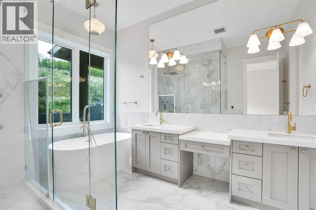 Absolutely stunning New Home with elevator in the prestigious Community of Patterson Point, where luxury meets Contemporary design in a Luxurious 3-Story home spanning 7000 Sq. Ft. on all three levels: Open floor plan, Two master suites, Elevator, RI E-Car charger, City view decks, private back patio with gas fireplace, 2 bedroom legal basement suite. Tankless toilets. Total of 7 bedrooms and 7 & half baths. This luxurious home is thoughtfully designed to take advantage of all the elements resulting in a healthy and comfortable home filled with natural air and light, offering high ceilings and unobstructed panoramic views of the City. Elevator access on all three floors. On the entry level is your reverse walk-out basement, open staircase w/ walnut railing which feels like anything but a basement. Luxury vinyl plank flooring, in-floor heat, Rec room with bar sink and wine cooler / beverage fridge and full bath with steam shower. This level also has a spacious 2-bedroom legal basement suite with fridge, electric stove, dishwasher, hood fan, microwave, washer, dryer and separate entrance. Double attached garage, heated, insulated drywalled and Rough in E-car charger. Combining functionality and esthetics Second floor (or main floor) : has 10’ ceiling, engineered hardwood flooring, chef’s dream kitchen, quartz counter tops, high-end appliances, Thermador 36” gas cook top, built-in dishwasher, 48” fridge and built-in triple combo oven, speed oven & warming drawer, high efficiency hood fan, Cabinets w/ soft close doors huge pantry Plus large spice kitchen w/ electric stove, hood fan, sink and another fridge. Just off the kitchen is a Coffee station w/ beverage fridge, Large dinning room with 8 ft. high glass patio doors leading to a covered deck with gas fireplace. This floor also has one of the two Master bedroom with walk-in closet, 5 pc bath w / free standing air jetted jacuzzi tub and 8 ft. high glass patio doors leading to back yard, powder room, spacious Den / offi ce w / built-in wall unit and deck with city views. Top Floor: Has 9” high ceiling, high quality silk Carpet, 2nd Master Bedroom with walk-in closet, 5 pc bath with free standing air jet jacuzzi tub and a deck of the bedroom with unobstructed city views, 3 more bedrooms with en-suite and walk-in closets, spacious Bonus room, a coffee station w/ wine cooler and sink, laundry room w/ built-ins for storage and a loft w / built-in wall unit and big windows with city views. Fully landscaped, exposed aggregate driveway and back patio. Central A/C R.I. Basement with in-floor heat, all tiled bathrooms & laundry room have in-floor heat. This cozy home has emerged Elegance and comfort for you and your family. Area development has architectural control to create a beautiful community. (31669034)