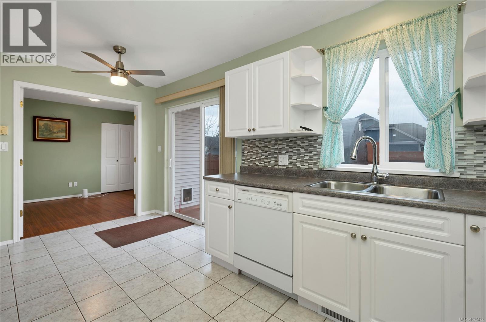 Comfortable 3 bedroom rancher on a level corner lot, with side access to the backyard and a large double driveway which provides lots of space for boats, RVs or other outdoor toys! Located in the Ocean Grove neighborhood of Campbell River close to the south end of the Rotary Seawalk and with easy access to the main access routes in and out of town. The open concept living room and dining room at the front of the home leads to a bright kitchen at the back of the home, where a sliding door opens out to the fenced backyard. The kitchen features a gas range with electric oven, and the sink looks out over the backyard with an attractive backsplash surround. The primary bedroom suite has a three piece bathroom with a corner shower. A second bedroom is in the back corner of the home, while the third bedroom is accessed by French doors off the kitchen. In addition to the ensuite there is a three piece bathroom with tub. There have been a number of recent upgrades to the home, including a new roof two years ago as well as a hot water on demand system and a new gas fireplace insert just last year. The south-facing backyard has a ShelterLogic portable cover on a six inch cement pad for storage. There is also a small shed, and a storage container outside the sliding doors houses a gas bbq (plumbed) which is included. The double garage has over height ceilings, high storage shelving and inside access to the home. This is a great home for a small family, young couple starting out or those looking to downsize. With great yard access, recent updates, and a lots of parking, this property is full of opportunity! (30408909)