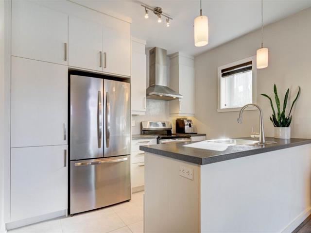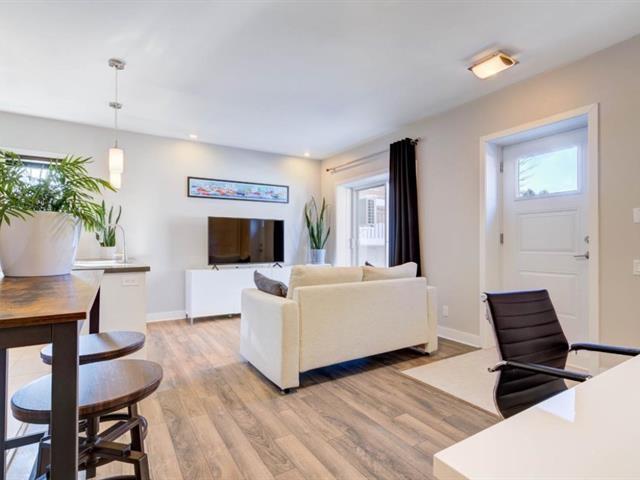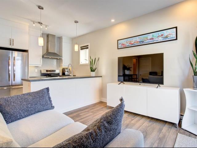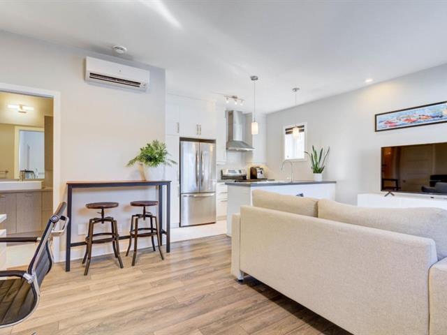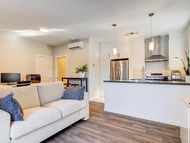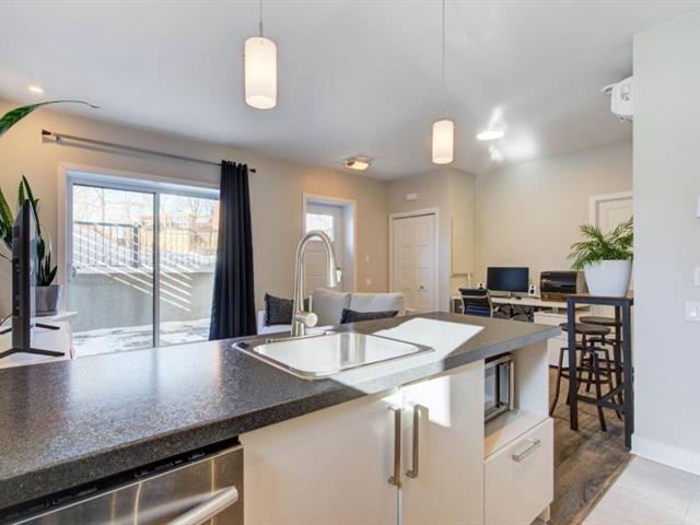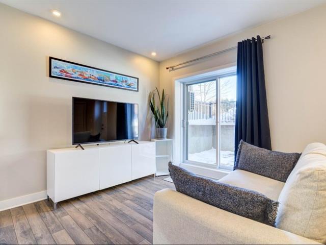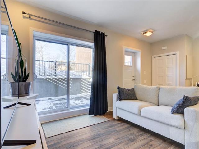 OCCUPANCY JULY 1ST (or June 1st). Modern 3 1/2 in Parcours du Cerf. Impeccable condo located on a crescent-shaped street, garden level, 1 bedroom, 1 bathroom, abundant light, high ceilings, walk-in closet in master, wall-mounted heat pump, beautiful private terrace on the side of the building, 1 parking space on the driveway. Strategically located close to all amenities such as grocery stores, shops, restaurants, schools, daycares, Parcours du Cerf golf course, several green spaces, Boisé Du Tremblay, and much more! Includes: dishwasher, washer and dryer, outdoor storage, outdoor parking. (49944411)