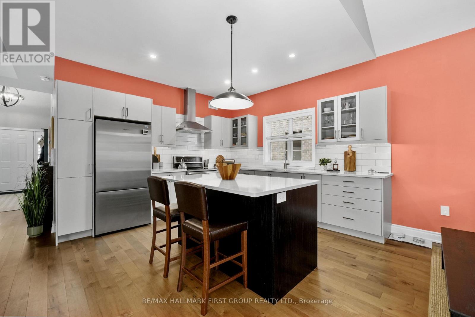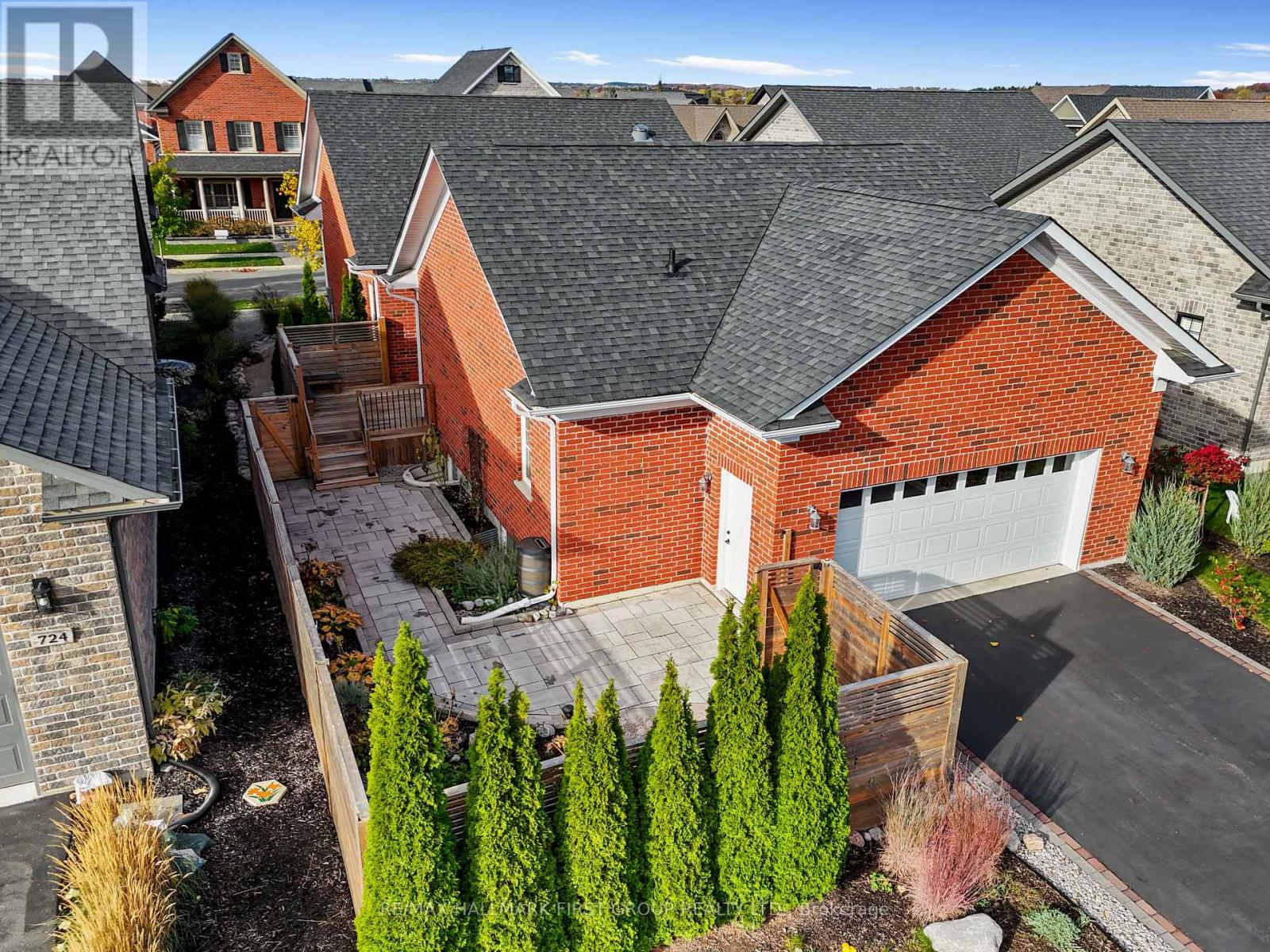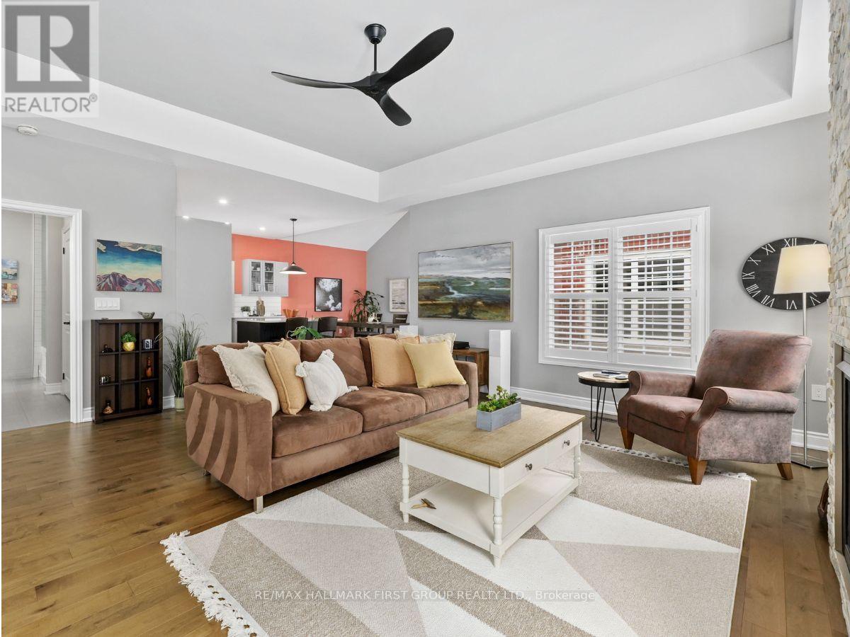Set in the sought-after New Amherst community of Cobourg, this low-maintenance home offers standout curb appeal thanks to its distinctive architectural style and the rear-located driveway and attached double garage. Relax on the front porch that extends the entire width of the house and take in beautiful sunset views at the end of the day. A bright, open front entrance provides ample storage and flows seamlessly into the open-concept principal living space. The living room features a tray ceiling, California shutters, and a cozy gas fireplace with a stone tile surround. The kitchen is both stylish and functional, complete with stainless steel appliances, generous counter and cupboard space, an offset subway tile backsplash, and an island with storage and breakfast bar accented by pendant lighting. Adjacent is the well-appointed dining area with a cathedral ceiling and a walkout to the back deck, perfect for extending your living and entertaining space. The main level includes a spacious primary suite with a tray ceiling detail, a walk-in closet, and an ensuite bathroom with a glass shower enclosure. An additional bedroom, full guest bathroom, and a versatile den ideal for a home office or guest room complete this level. The lower level offers a recreation room, office, ample storage and excellent potential to create additional living space. Outside, enjoy an expansive private deck with built-in seating and plenty of room for lounging or alfresco dining. A low-maintenance backyard completes this impressive offering in a highly desirable neighbourhood. Just moments from Northumberland Hills Hospital, Cobourg Beach, and direct access to the 401. (42189363)
