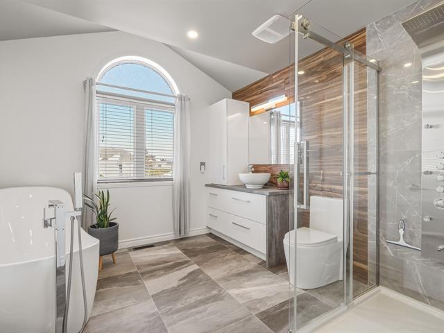 Stunning family home located in a sought-after area of Saint-Basile-le-Grand. Bright and inviting, it features a living room with a wood-burning fireplace and a functional kitchen with island and quartz countertop. Upstairs offers three well-sized bedrooms. Renovated bathroom (2019) with heated floors. Finished basement with fourth bedroom and spacious family room. Private backyard with pool, spa, and removable fence. Close to train station, schools, parks, and services. (51313434)