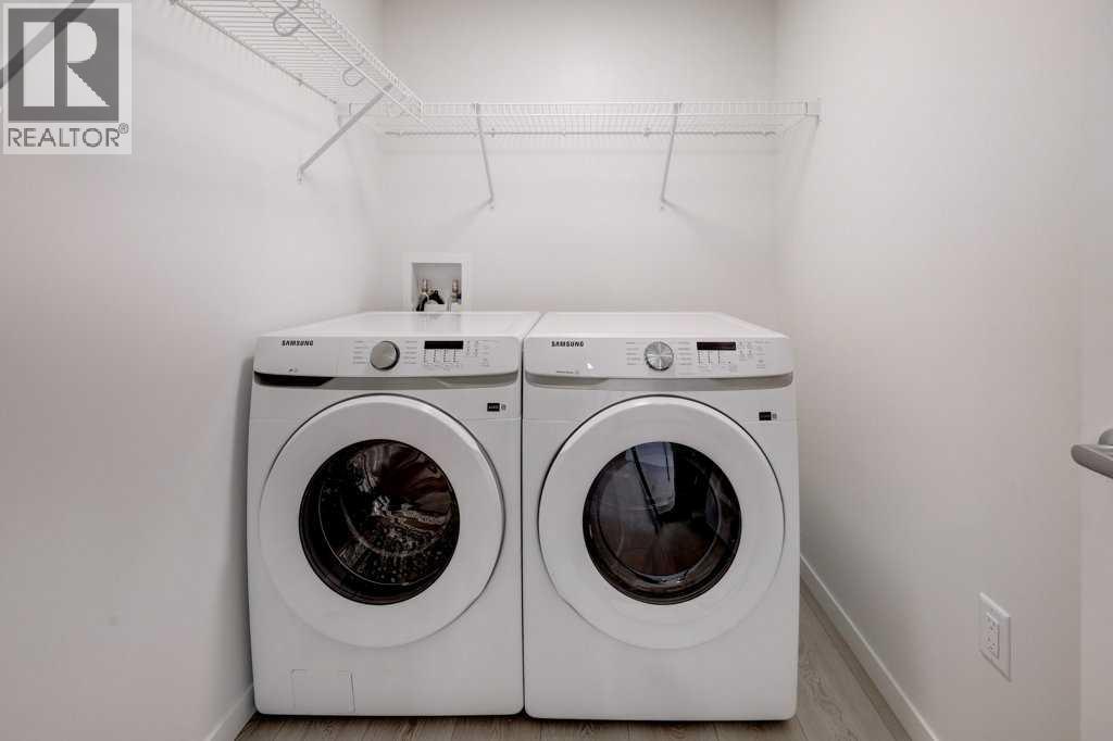 Introducing BELMONT PLAZA, a highly sought-after development in BELMONT, Calgary. BUILT BY CEDARGLEN LIVING, WINNER OF THE Customer Insight BUILDER OF CHOICE AWARD, 6 YEARS RUNNING! BRAND NEW CORNER UNIT, "L3" floor plan with high-spec features. You will feel right at home in this well thought-out 1044.89 RMS sq.ft. (1115 sq.ft. builder size) 2 bed, 2 bath home with open plan, 9' ceilings, LVP flooring through-out (upgraded, no carpet), Low E triple glazed windows, electric baseboard heating, BBQ gas line on the patio, A/C Rough in, and Fresh Air System (ERV). The kitchen is spectacular with full height all white cabinets, extended island upgrade, quartz counters, undermount sink, S/S appliances, including chimney hood fan, built in microwave, and pantry. The extended island is stunning and transitions into the spacious living & dining area, perfect for entertaining. The spacious primary bedroom has a large bright window, sizeable walk-in closet and 4 pc ensuite with extra bank of drawers & full height tile upgrade. 1 additional bedroom located across the unit for noise reduction/privacy and 4pc bathroom (also with upgraded full height tile) located nearby. Laundry & storage closet is thoughtfully planned, definitely a must see (washer/dryer included). Highlights include: upgraded lighting package, sound reducing membrane to reduce sound transmission between floors, clear glass railing to balconies and 1 titled underground parking stall included. Steps away from shopping, restaurants and so much more. Belmont offers a vibrant neighbourhood that’s extremely well-connected through Calgary’s major arteries. Community living with inspired design. PET & RENTAL FRIENDLY COMPLEX. (31670955)