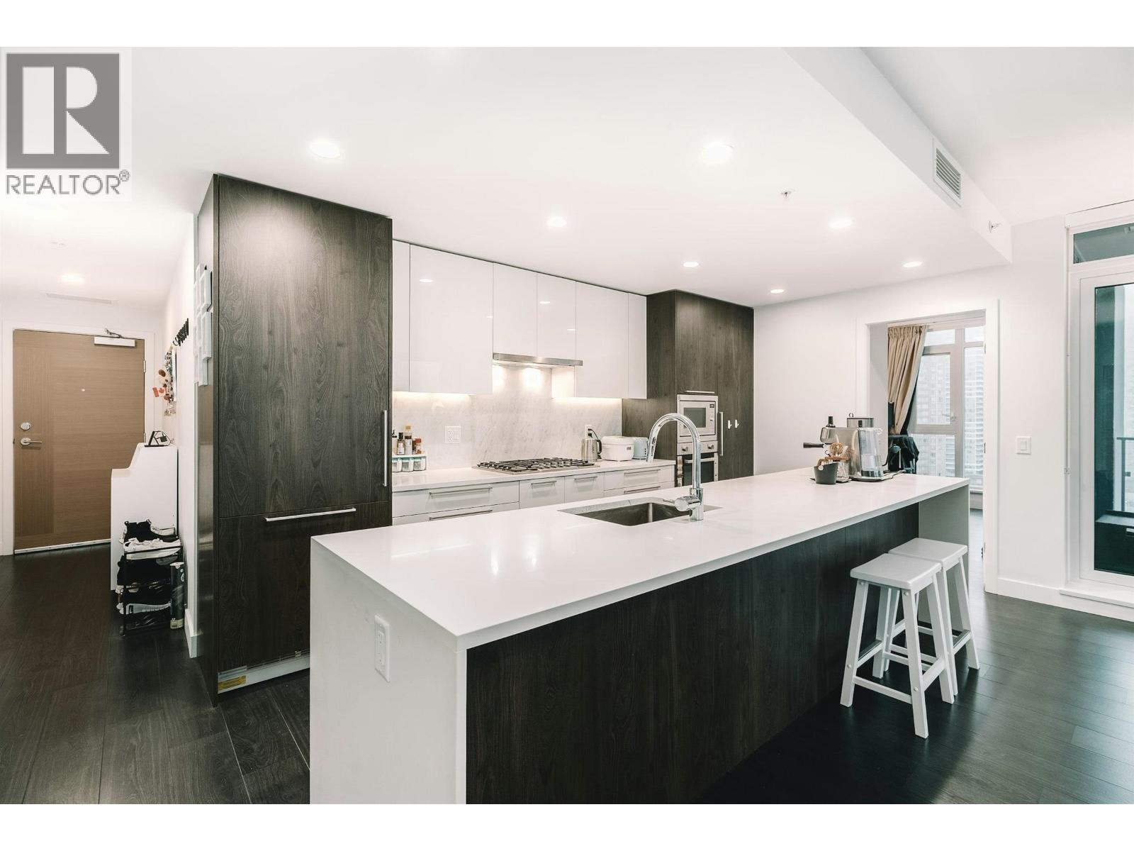 Set high above the energy of Metrotown, this air-conditioned 2 bedroom corner unit home at Sun Towers 2 delivers elevated urban living with a thoughtfully designed layout. Expansive windows frame sweeping views, while two generous balconies invite seamless indoor-outdoor enjoyment. The kitchen makes a statement with sleek cabinetry, quartz surfaces & Bosch appliances around a substantial island. The primary suite feels like a private escape, complete with a walk-in closet and a beautiful ensuite. Residents enjoy hotel-inspired amenities including concierge service, indoor pool, hot tub, fitness facility, golf simulator & more. Two high-speed elevators and a private resident car wash add everyday convenience. Walk to Metrotown, SkyTrain, T&T, Crystal Mall, restaurants and entertainment! (32475531)