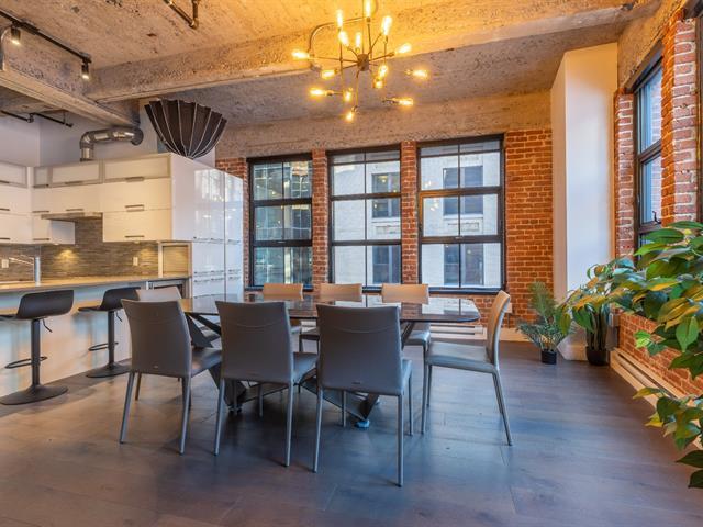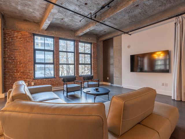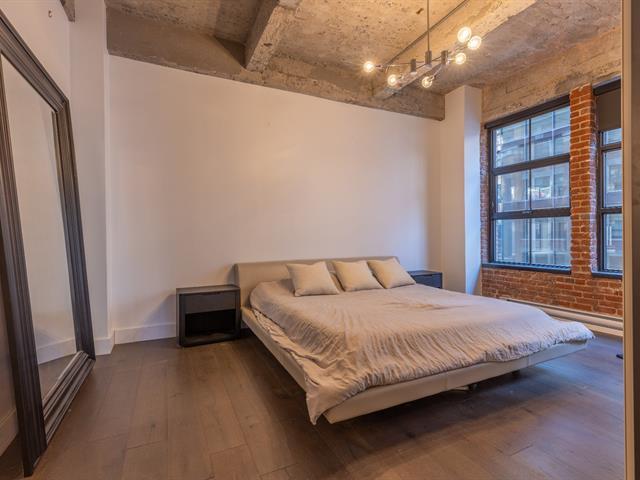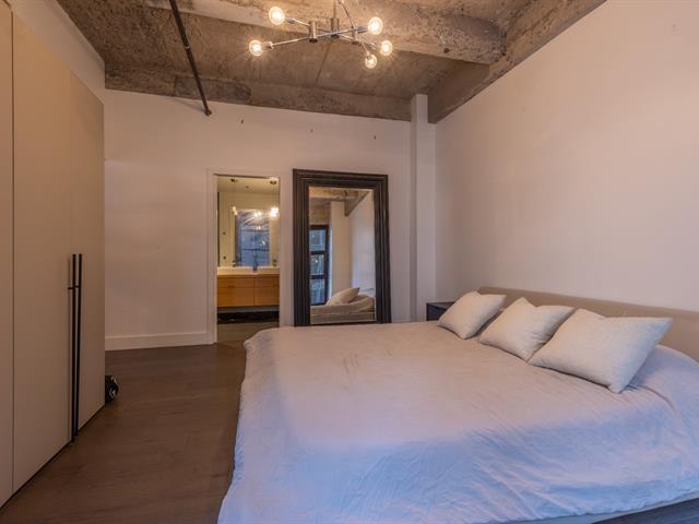 Experience luxury urban living in this stunning New York-style loft at the prestigious Wilson Lofts. This fully furnished 1-bedroom unit blends rustic contemporary vibes with high concrete ceilings and exposed brick. Features include a spacious primary suite with an ensuite bathroom, plus a secondary bathroom with a dedicated laundry area. Building amenities offer a premier fitness center, an elevator, and a rooftop terrace with breathtaking city views. Steps from Square-Victoria Metro, the Business District, and Old Montreal. Just bring your suitcase! (44655769)