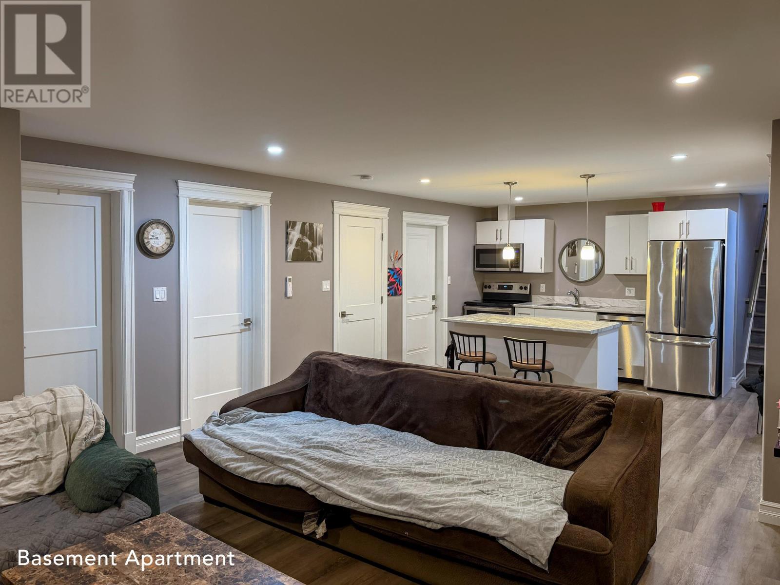 90 Macrae was custom built with stone accents and a large covered veranda, it is a 3250 square foot, 4 bed 4 1/2 bath home featuring 3 bed, 3 1/2 bath in the main house and a registered 1 bed, 1 bath secondary suite in the basement. The secondary suite has it's own separate entrance and gazebo. There is a long term, quiet tenant for a reliable income each month. The basement apt. features an open concept kitchen and living area. The kitchen has laminate countertops. The bathroom features a custom wood cabinet with a quartz countertop. There is tandem parking for two vehicles for the rental unit. As you enter into the main house you will step into the entrance with the dining room on your right and an open concept living room and kitchen. The living room has a real stone fireplace with a propane insert and custom wood built ins. The kitchen has custom cabinets, a large island, walk in pantry and quartz countertops. The half bath and entrance to the oversized 30x30 garage-a hobbyist dream area, completes the lower level of the home. As you make your way upstairs you will see a glass railing and hardwood stairs. At the top of the stairs on the right you will enter into the master suite. The master features a large walk in closet, ensuite bath with custom double vanities and storage towers, tiled soaker tub with an electric fireplace so you can relax after a long day at work. There is a large tiled walk in shower. Across the hall from the master is affectionately referred to as the "mini master." This room has double closets and an attached ensuite bathroom with custom cabinets and quartz countertops. There is the third full bathroom in the hallway with custom cabinets and quartz countertops, and an oversized storage closet. The laundry is conveniently located on the second level and has upper cabinet storage. At the end of the hallway is the third bedroom with a walk-in closet. All measurements are approximate. Listing realtor i (231986776)