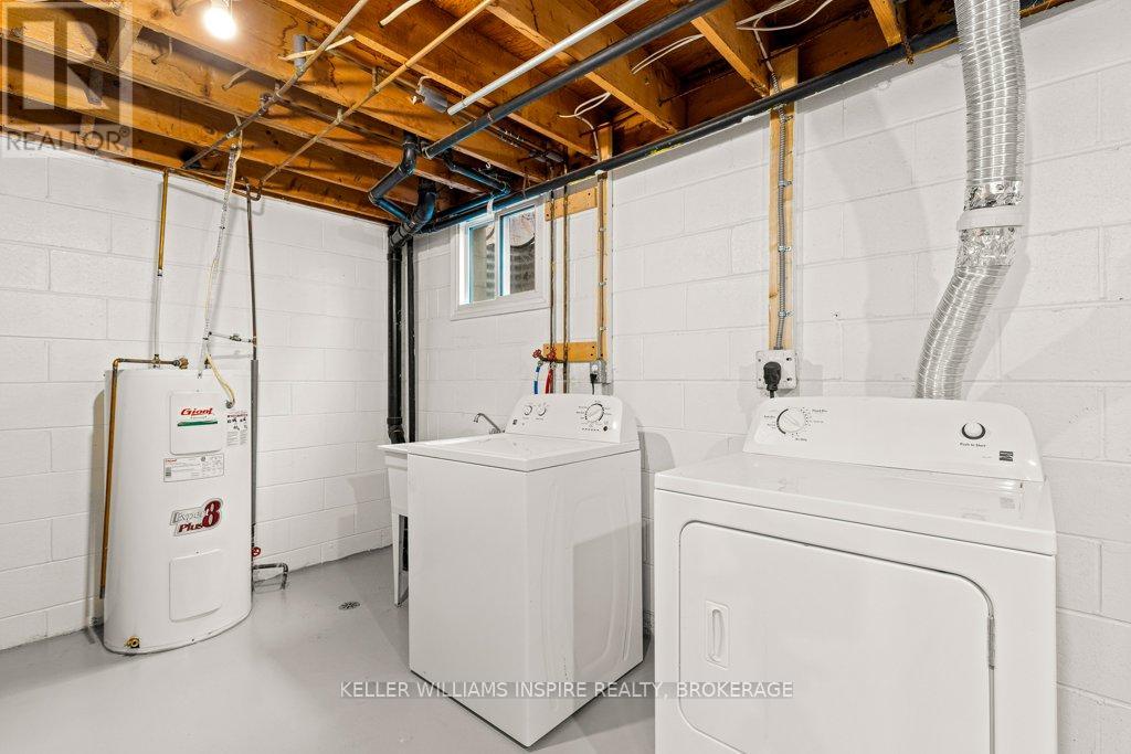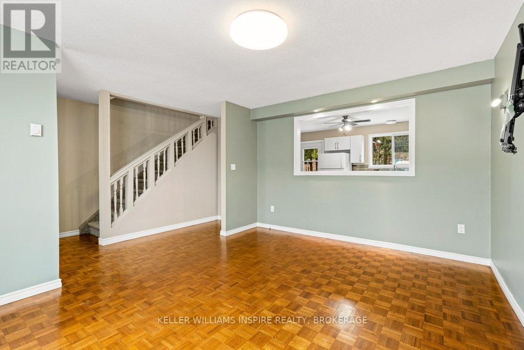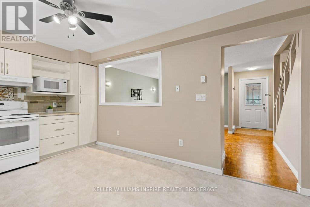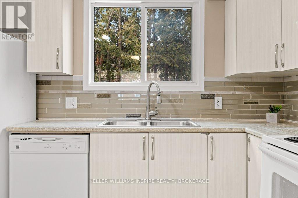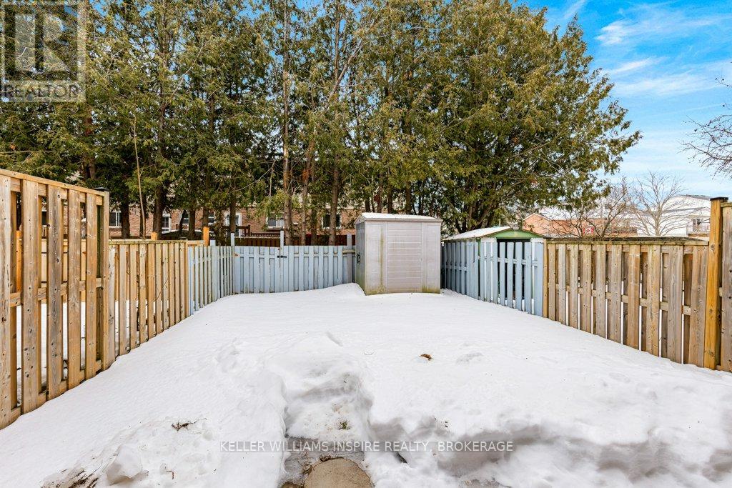 Attention first time buyers, downsizers and investment owners! Great condo townhouse in the highly demanded Strathcona Park neighbourhood. Just painted throughout (BEHR), featuring carpet free rooms and professionally installed luxury vinyl flooring in kitchen, bathrooms and in the fully finished rec room in the basement. Laundry room with sink, washer, dryer and lots of storage space. Fully fenced private backyard with a nice green view, featuring a maintenance-free patio stones area for exterior furniture and including a shed in a custom-built base. Exclusive use parking in driveway and plenty of visitors' parking. Upstairs has 3 good-sized bedrooms each with a closet including shelves, rods and doors and LED ceiling fans. 4 piece bathroom in the second floor and a 2 piece bathroom on the main floor. Main level is full of light with a large opening between the kitchen and the living room. Swivel TV wall mounts in living room and primary bedroom. The kitchen includes stove, fridge, dishwasher and microwave. Close distance to amenities (groceries, ATM, restaurants, schools), on express bus route and close to train & bus station, Kingston Center, Hwy 401, Third Crossing and new secondary school. Condo monthly fees $349 including water, sewer and grass cutting. (42191083)