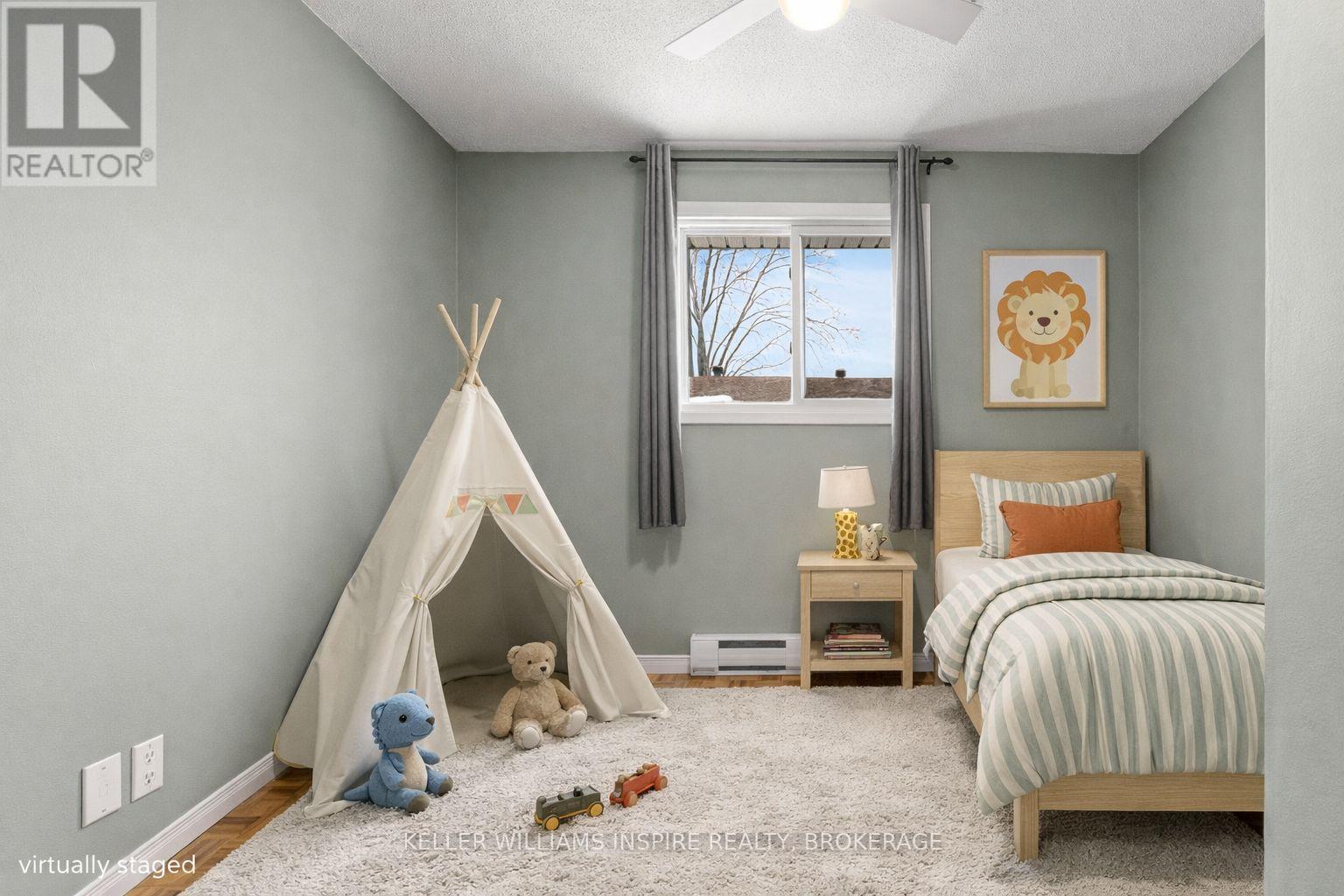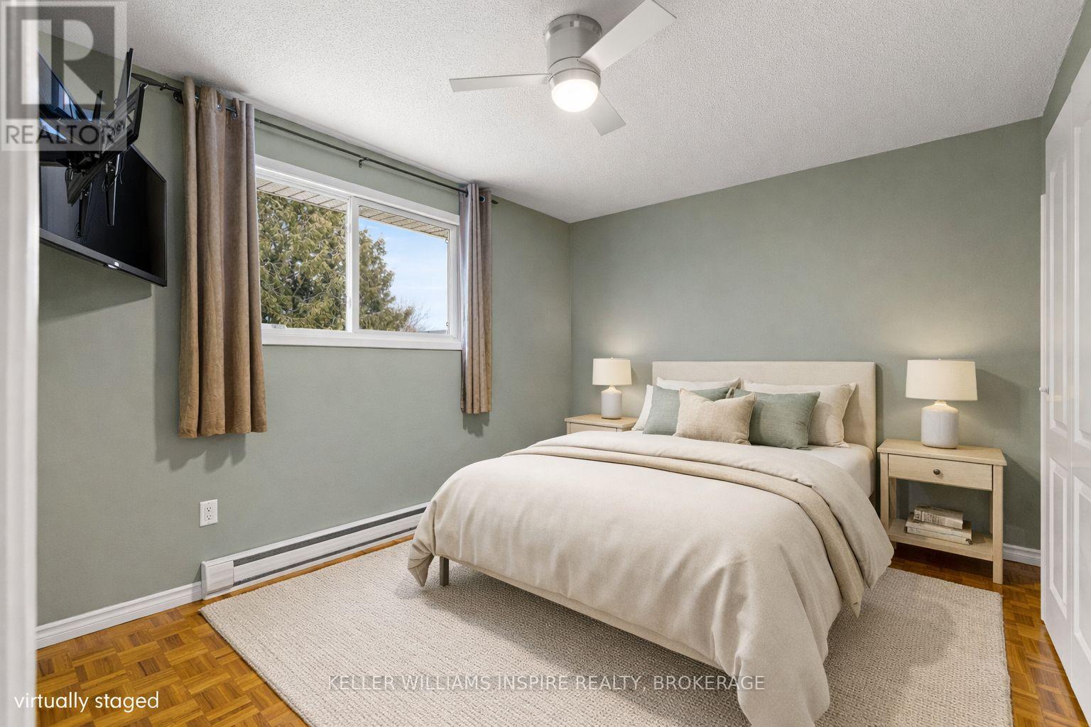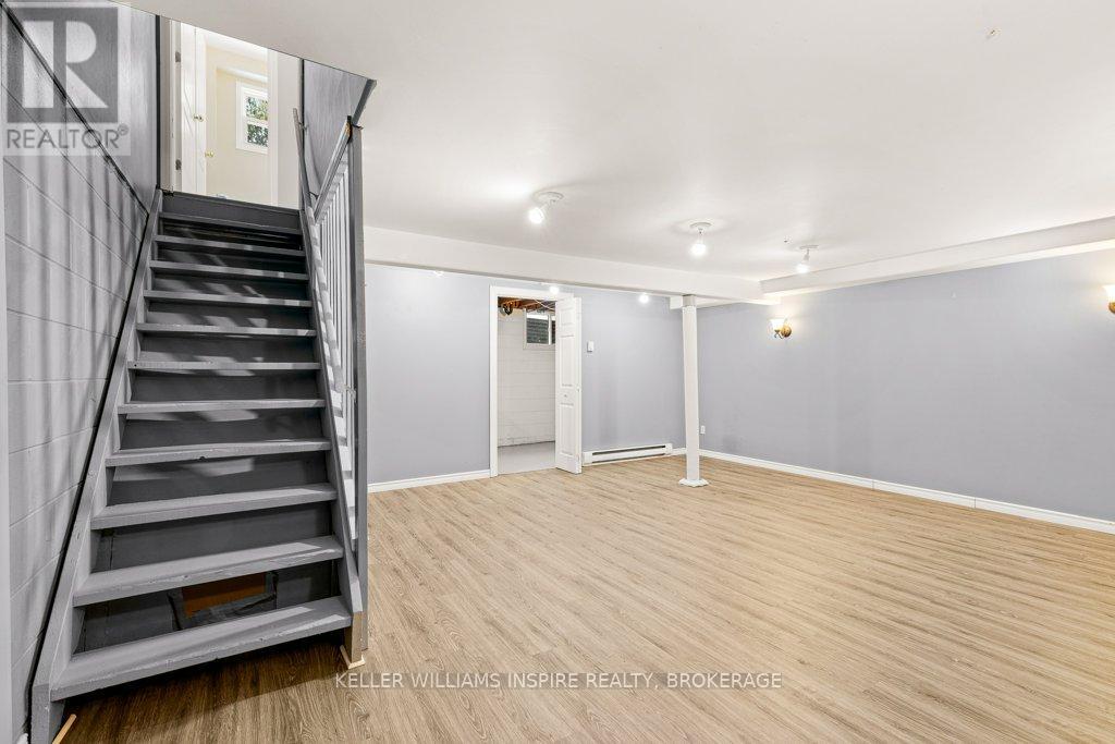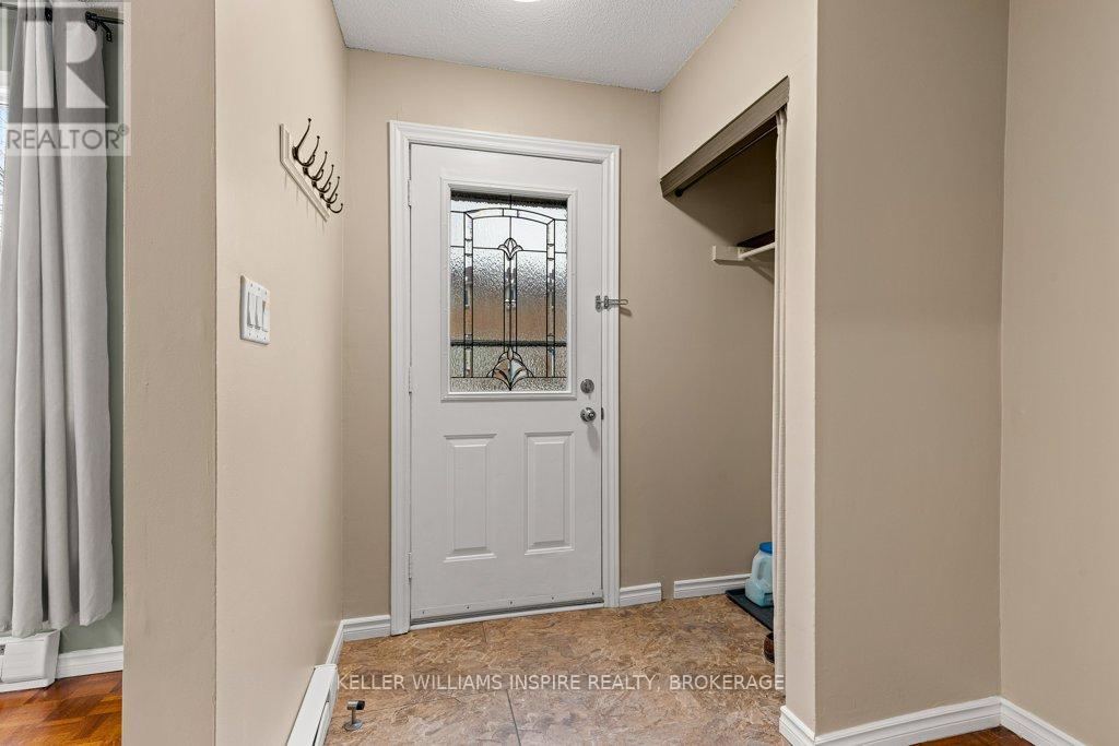 Attention first time buyers, downsizers and investment owners! Great condo townhouse in the highly demanded Strathcona Park neighbourhood. Just painted throughout (BEHR), featuring carpet free rooms and professionally installed luxury vinyl flooring in kitchen, bathrooms and in the fully finished rec room in the basement. Laundry room with sink, washer, dryer and lots of storage space. Fully fenced private backyard with a nice green view, featuring a maintenance-free patio stones area for exterior furniture and including a shed in a custom-built base. Exclusive use parking in driveway and plenty of visitors' parking. Upstairs has 3 good-sized bedrooms each with a closet including shelves, rods and doors and LED ceiling fans. 4 piece bathroom in the second floor and a 2 piece bathroom on the main floor. Main level is full of light with a large opening between the kitchen and the living room. Swivel TV wall mounts in living room and primary bedroom. The kitchen includes stove, fridge, dishwasher and microwave. Close distance to amenities (groceries, ATM, restaurants, schools), on express bus route and close to train & bus station, Kingston Center, Hwy 401, Third Crossing and new secondary school. Condo monthly fees $349 including water, sewer and grass cutting. (42191083)