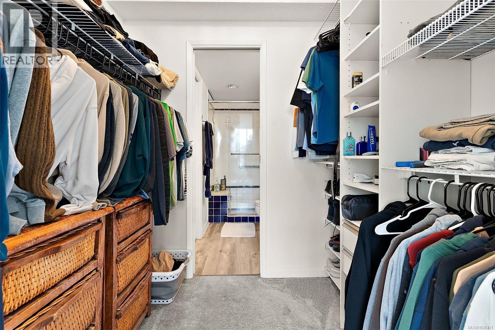 Walk in closet with light carpet