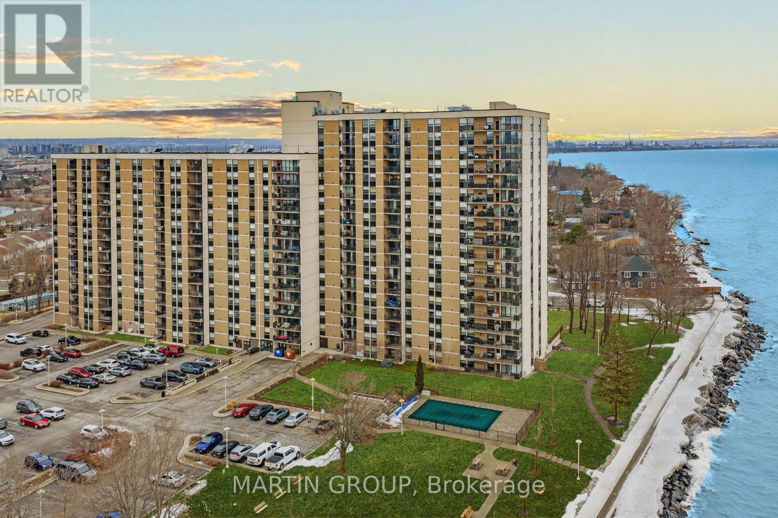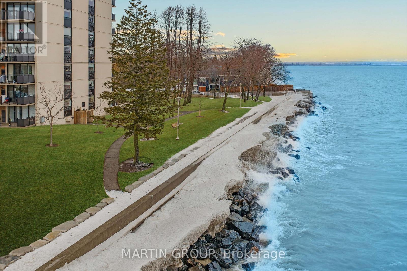 Welcome to The Shoreliner, an iconic waterfront residence where the vast blue of Lake Ontario is your constant companion. This is "house-sized" living with the ease of a condo; a sanctuary where the lake greets you from every room. Suite 1406 is a beautifully updated 2-bedroom plus den condominium offering a refined waterfront lifestyle where unobstructed views of Lake Ontario are brought directly into the suite through every window. This spacious residence features a traditional, open living area enhanced by crown moulding and California ceilings, creating a bright and inviting space perfect for large gatherings. The stylish layout includes a welcoming foyer that opens elegantly into a spacious living and dining area. The versatility of the den, accessed through elegant bevelled French doors, provides an ideal sanctuary for a home office or a third bedroom. The primary bedroom serves as a private retreat with a walk-in closet, a 2-piece ensuite, and the opportunity to arise each morning to breathtaking lake vistas. Quality upgrades abound throughout the home, including ceramic and laminate flooring, a renovated kitchen, pantry, maple cabinetry and a relaxing soaker tub. Practicality meets comfort with in-suite laundry and an open balcony designed for morning sunrises or watching evening storms. Residents of this well-maintained building enjoy a sense of community with wonderful neighbours and access to resort-style amenities, including a heated outdoor pool overlooking the lake, gym, sauna, hot tub, squash court, billiards, workshop games, gas bbq's and party rooms. Able to accommodate traditional furniture, this home is perfectly suited for rightsizing seniors or a small family. Just steps from the sandy beach, the 8km waterfront trail, Confederation Park, and the vibrant atmosphere of Baranga's on the Beach. With quick access to the QEW and the Confederation GO Station. This home offers a quiet lakeside tranquillity without sacrificing urban convenience. (42191733)
