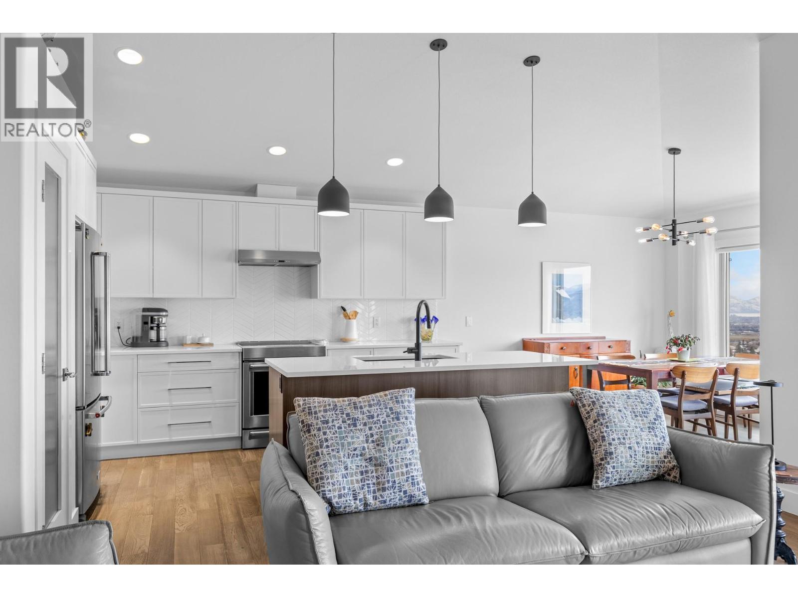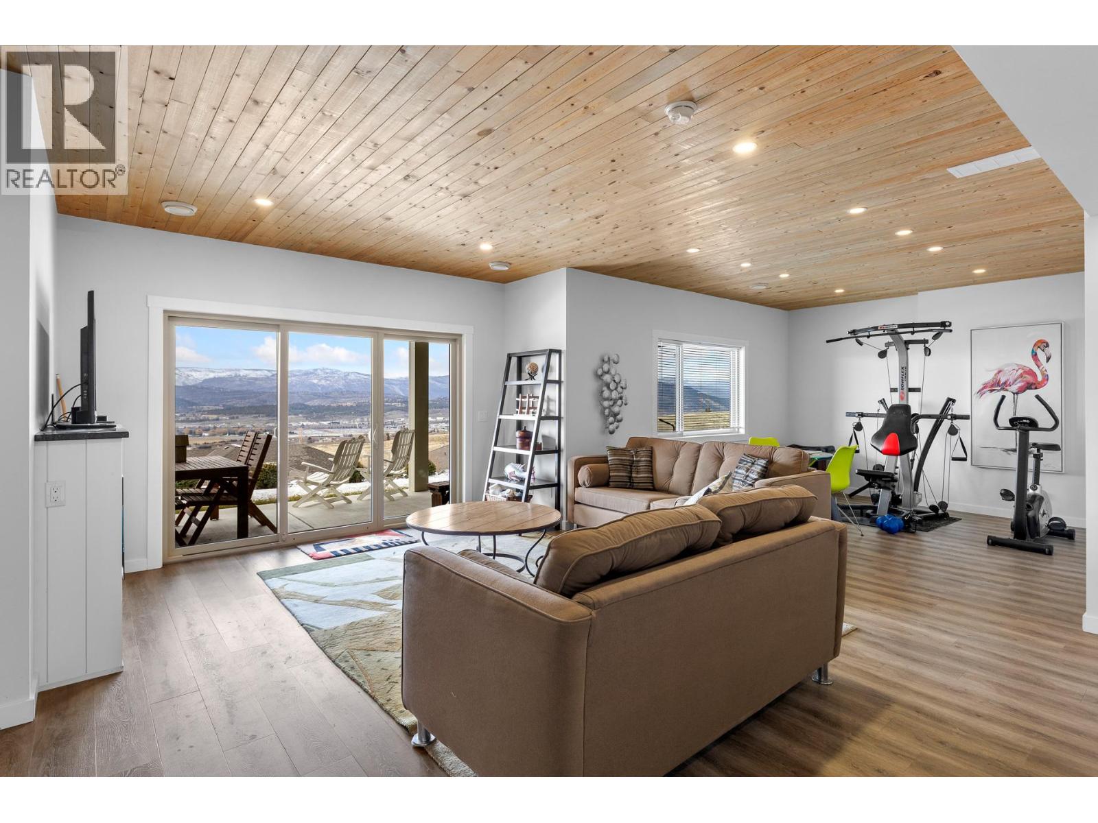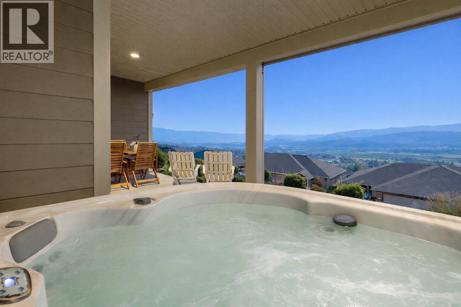 Located in the prestigious gated community of Sunset Ranch, this beautifully maintained walkout rancher offers sweeping views of Lake Okanagan, Beaver Lake, the valley, surrounding mountains and the fairways of Sunset Ranch Golf Course. Designed for effortless main floor living, the home features a bright open concept layout with vaulted ceilings, a spacious primary suite on the main level and seamless access to a covered deck ideal for morning coffee or evening sunsets. The chef-inspired kitchen includes an induction cooktop, quality appliances and generous workspace for entertaining. Unlike many homes in the community, this floorplan offers an oversized lower-level recreation room, creating exceptional space for entertaining, hobbies or visiting guests. The walkout level also includes a guest bedroom, full bathroom and access to a second covered outdoor space complete with hot tub. Thoughtful upgrades include a dedicated EV charging circuit with breaker in the garage panel, exterior sunscreen roller shades on the deck, synchronized bathroom exhaust fans, water softener and central air. Located on a quiet cul-de-sac with low monthly strata fees and an attached double garage, this home offers comfort, privacy and low maintenance living just minutes from Kelowna International Airport and UBCO. (39760944)