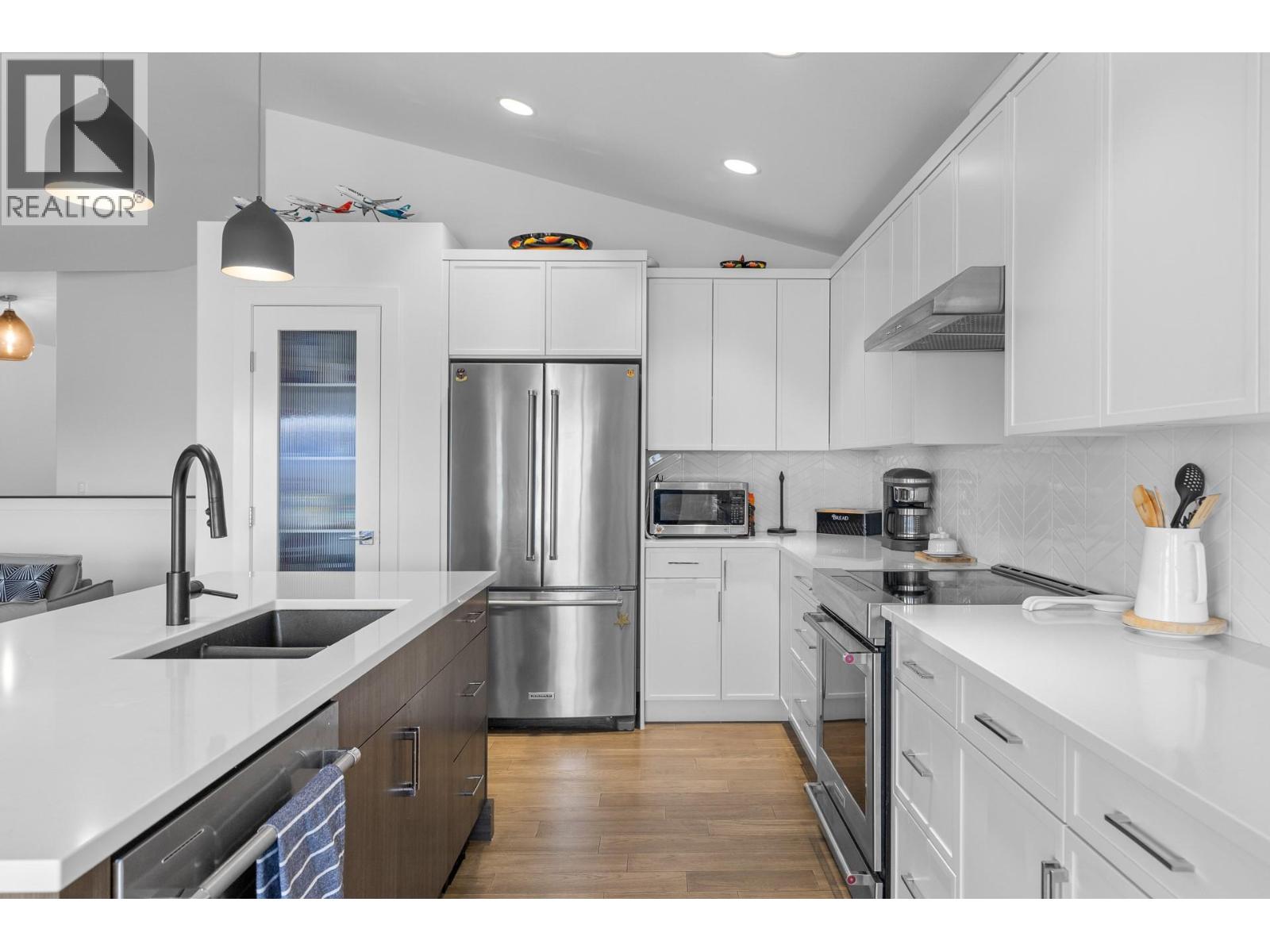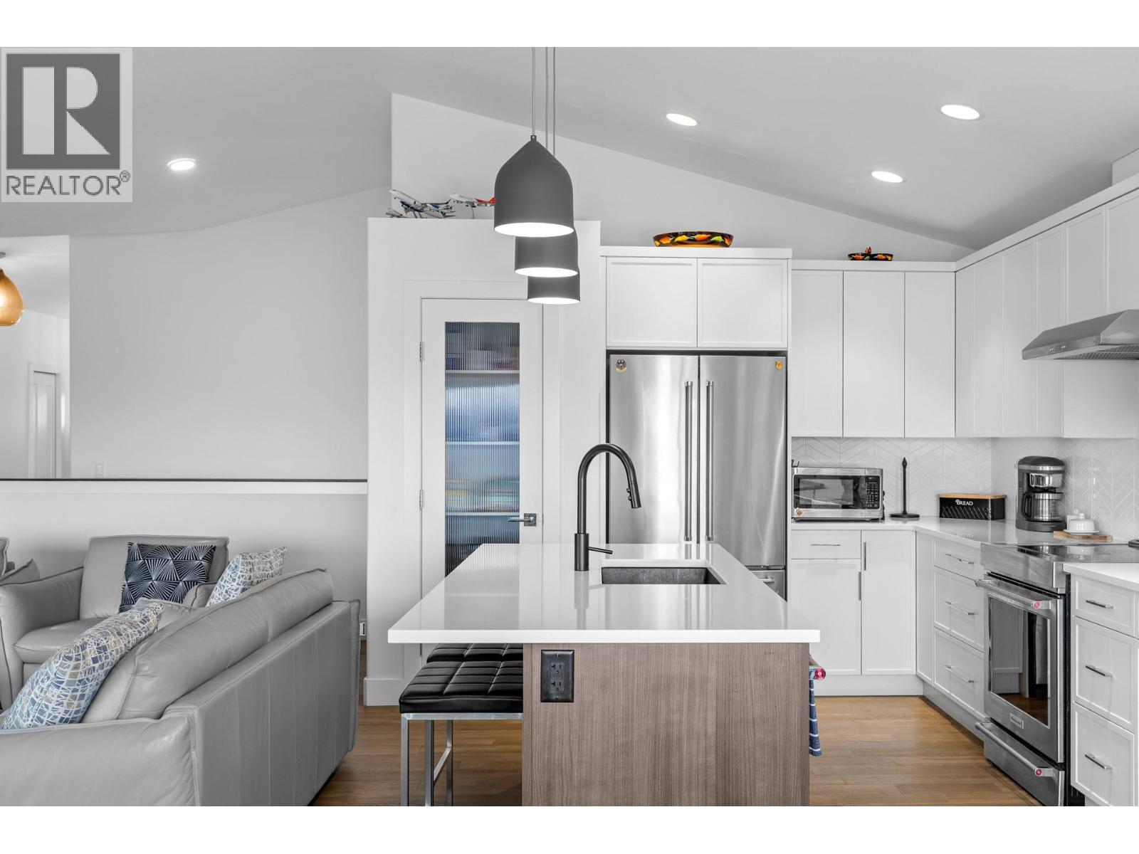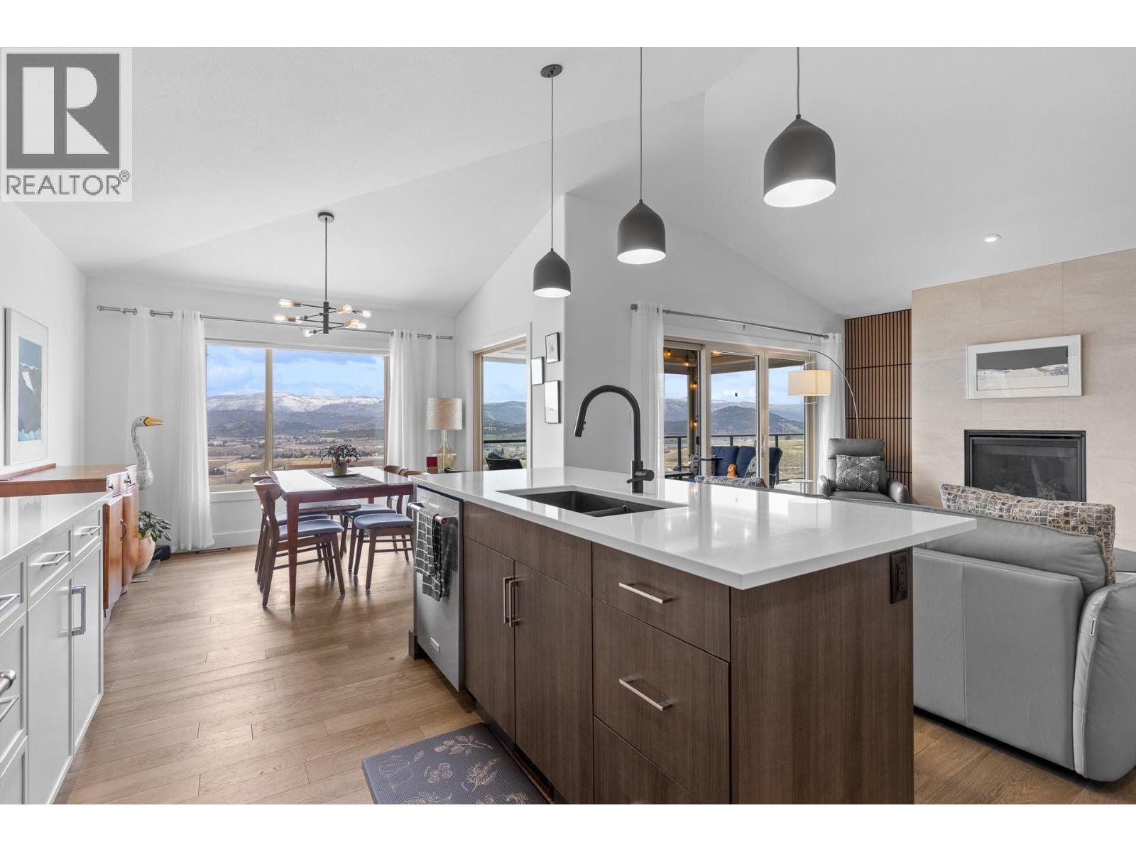 Located in the prestigious gated community of Sunset Ranch, this beautifully maintained walkout rancher offers sweeping views of Lake Okanagan, Beaver Lake, the valley, surrounding mountains and the fairways of Sunset Ranch Golf Course. Designed for effortless main floor living, the home features a bright open concept layout with vaulted ceilings, a spacious primary suite on the main level and seamless access to a covered deck ideal for morning coffee or evening sunsets. The chef-inspired kitchen includes an induction cooktop, quality appliances and generous workspace for entertaining. Unlike many homes in the community, this floorplan offers an oversized lower-level recreation room, creating exceptional space for entertaining, hobbies or visiting guests. The walkout level also includes a guest bedroom, full bathroom and access to a second covered outdoor space complete with hot tub. Thoughtful upgrades include a dedicated EV charging circuit with breaker in the garage panel, exterior sunscreen roller shades on the deck, synchronized bathroom exhaust fans, water softener and central air. Located on a quiet cul-de-sac with low monthly strata fees and an attached double garage, this home offers comfort, privacy and low maintenance living just minutes from Kelowna International Airport and UBCO. (39760944)