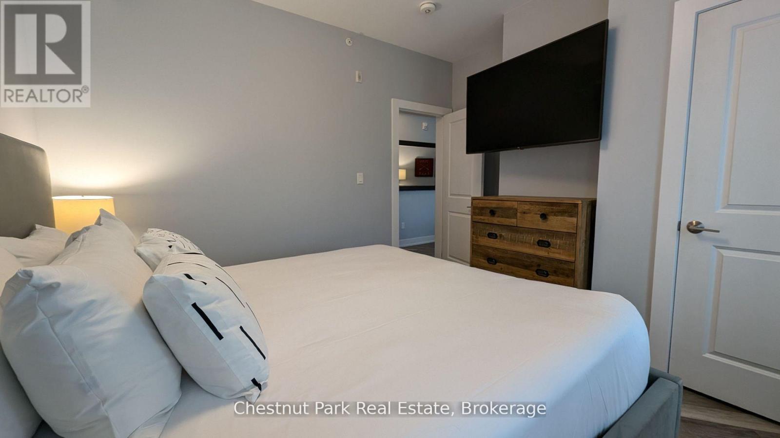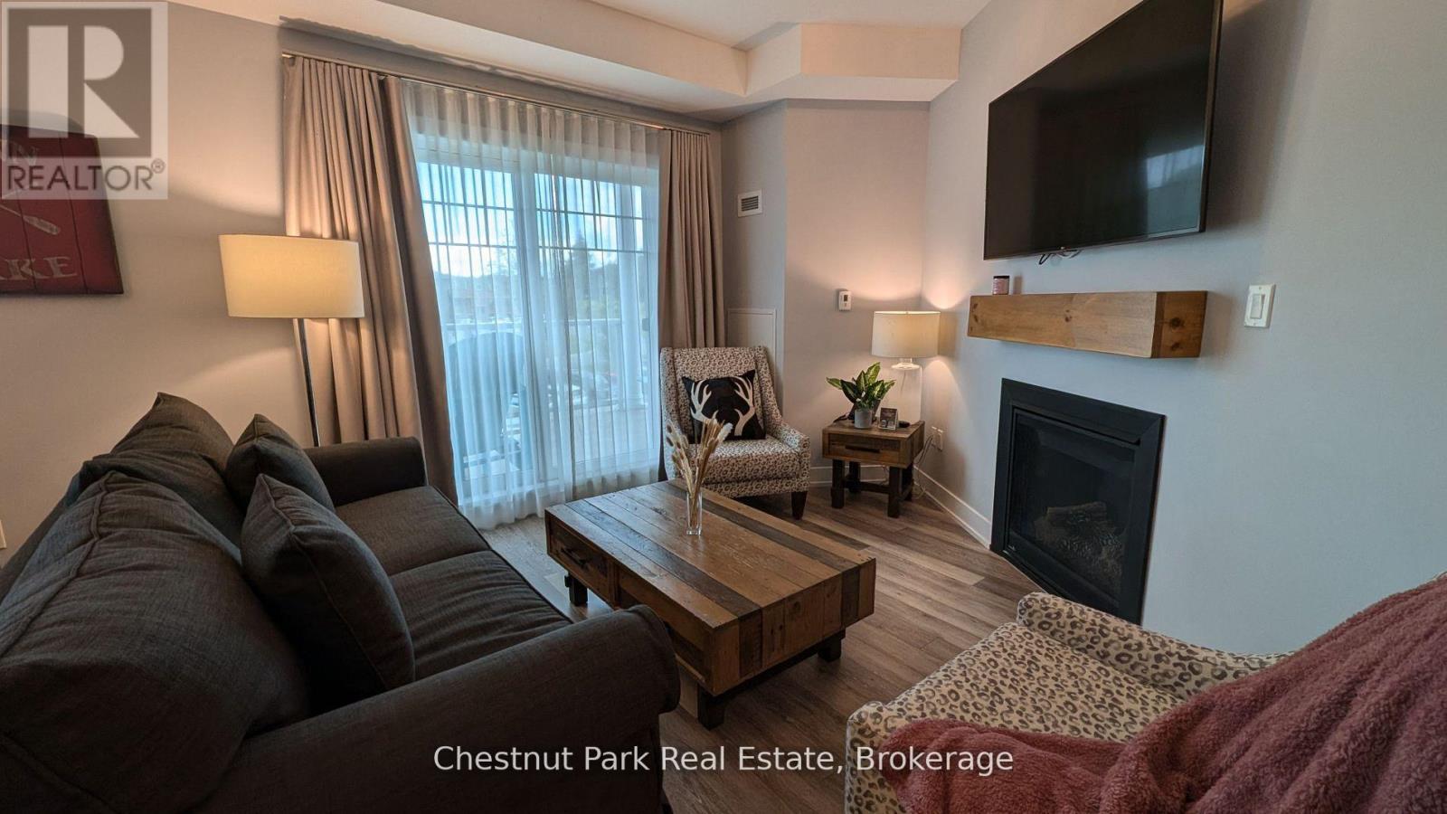 A Muskoka Retreat with Earning Potential! Dreaming of owning a little slice of Muskoka? Welcome to Unit 316 at Lakeside Lodge in Deerhurst Resort a beautifully furnished 1-bedroom condo that offers the best of both worlds: a carefree cottage lifestyle with the potential to generate income when you're not using it. Step inside and you're greeted by a bright, open-concept layout with a full kitchen, island seating, and a cozy gas fireplace perfect for curling up after a day on the trails or the lake. The spacious living area flows out to a private balcony with peaceful views over Sunset Bay - your front-row seat to golden morning light and quiet evening skies. As part of the Deerhurst community, you'll enjoy year-round access to resort-style amenities: a lakeside outdoor pool, fitness center, owners lounge, shared spaces, laundry facilities, and of course, the sparkling waters of Peninsula Lake. Summer days are made for swimming, paddling, hiking, and tennis, while winter invites you to hit the cross-country ski trails or spend the day carving turns at nearby Hidden Valley Ski Club. This unit is currently enrolled in the resorts rental program, giving you the option to earn rental income when you're not here - making it a smart and low-maintenance way to step into the Muskoka market, whether you're a first-time buyer or savvy investor. Tucked just minutes from downtown Huntsville's shops, restaurants, and cultural gems and a short drive to Algonquin and Arrowhead Parks this is more than a property; its a lifestyle. Don't miss this chance to own a piece of Muskoka charm with flexibility and potential. Contact us today to schedule your private tour. ***Measurements approximate. Hydro not included. HST is applicable to the sale. (42192154)