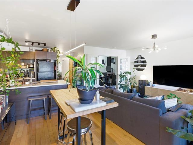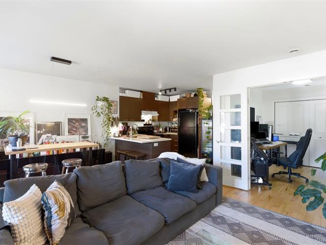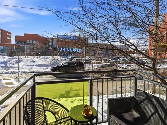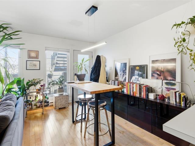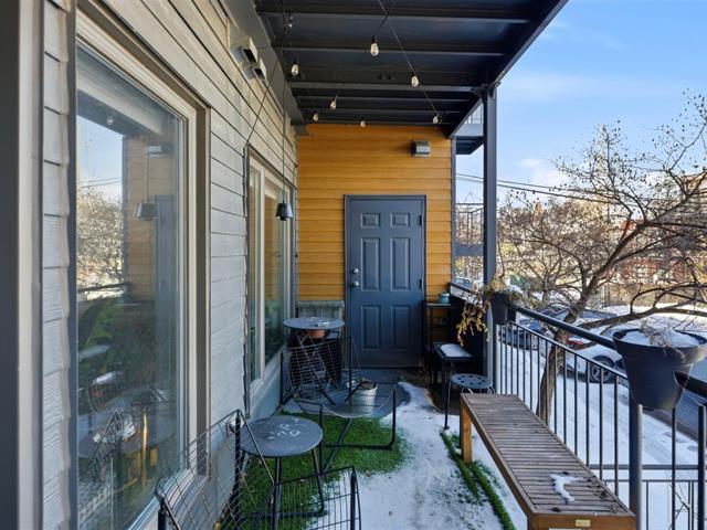 Located in the heart of Little Italy, this bright open-concept condo features a modern and inviting living space, a functional kitchen, and two versatile bedrooms--one with access to the front balcony and a second interior bedroom without a window, ideal as a home office, guest room, or multipurpose space--as well as a full bathroom with a sleek design. Enjoy a very large rear balcony as well. Just steps from restaurants, cafés, boutiques, public transit, and Jean-Talon Market, experience the vibrant energy of Montréal's renowned foodie district in one of its most sought-after neighborhoods. (45208993)