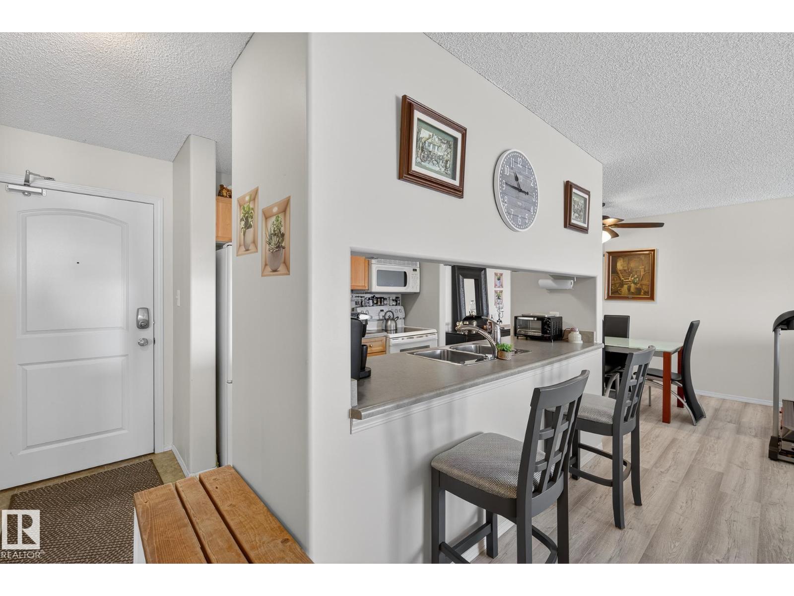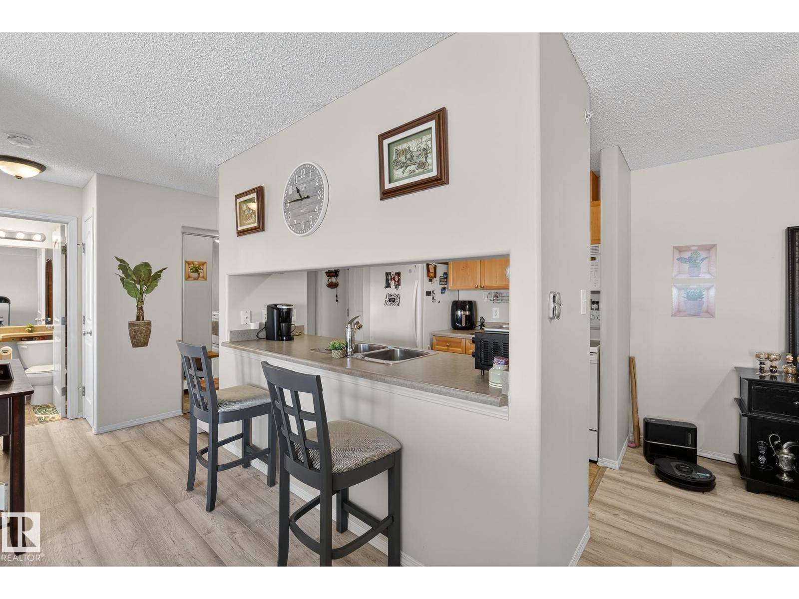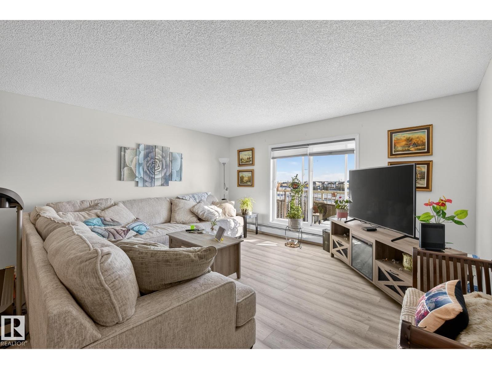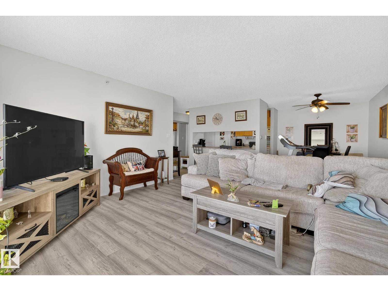 Welcome to top floor living at its best! Featuring 1 bedroom and 1 bathroom this unit is well sized at 751 sq ft. It holds a galley style kitchen with lots of cupboard space, and fills up with morning sunlight from the east facing balcony windows and patio door. With a LARGE living room and ample dedicated dining space this apartment truly feels like a home. New vinyl plank has been professionally laid down throughout. This unit features in suite laundry with a new washer and dryer that have been installed and are held in a large storage room. Included in the condo fees, is access to the fitness center across the parking lot in building 50! This property is in great proximity to Sherwood Park via highway access and has great walkability to public transportation within the city. (33859243)