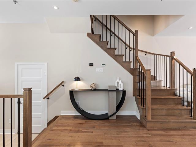 Finding a better family setting is a challenge. Terra is an eco-conscious, LEED-certified community woven into the protected forests near Kirkland, Senneville, and Sainte-Anne-de-Bellevue. Located on Montreal's West Island, it sits just 1km from the 2025 REM station. Built in 2020 with high-end upgrades, this pristine home features a private two-car garage and a finished basement. The three-storey layout is topped by a primary suite with double-aspect windows and a sun-drenched, 20-foot wide south-facing balcony. (45354010)
