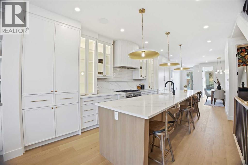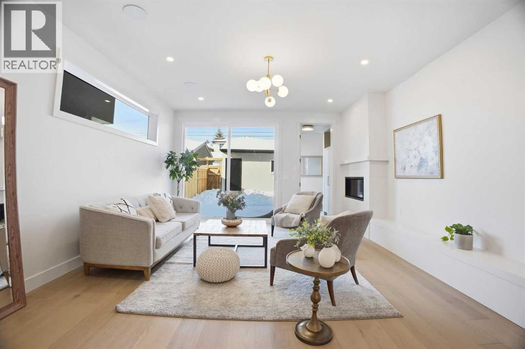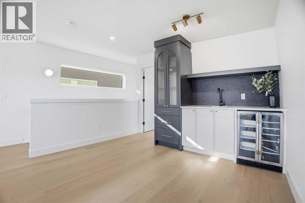 OPEN HOUSE SATURDAY, FEBRUARY 28TH FROM 1-3 PM & SUNDAY, MARCH 1ST FROM 1-4 PM. Located on a quiet street in sought after Richmond and situated on an extra deep 135’ lot allowing extra back yard space, this newly built and beautifully curated 4+1 bedroom residence offers panoramic views and over 4,200 sq ft of exceptional living space. The open, airy main level features hardwood floors, soaring ceilings, and an abundance of natural light. A stylish dining area with a designer fixture provides generous space for hosting, while the tastefully finished kitchen impresses with quartz countertops, a large island/eating bar, extensive storage, and high end appliances. The living room is anchored by a striking feature fireplace and custom built ins. A dedicated den/office is tucked just off the foyer—ideal for working from home. Completing the main level are a 2 piece powder room and a well appointed mudroom with built in bench and storage. The second level hosts three spacious bedrooms, a 5 piece Jack & Jill bath, and a laundry room with sink and ample cabinetry. The expansive primary retreat captures gorgeous views and includes a private balcony, dual walk in closets, and a luxurious 5 piece ensuite with dual sinks, a freestanding soaker tub, and a glass enclosed shower. The third level offers a versatile loft with access to a large west facing deck and a convenient wet bar—perfect for a media room, studio, or additional office space. A generous bedroom with its own 4 piece ensuite is ideal for guests. The fully developed basement is designed for entertaining, featuring a spacious family/media room with wet bar and wine storage. A fifth bedroom, 4 piece bath, and dedicated storage room complete the lower level. Additional highlights include rough in for air conditioning and built in speakers. Outside, enjoy the sunny west facing backyard with a patio and access to the double detached garage. This prime location offers close proximity to schools, shopping, vibrant Marda Lo op, public transit, and effortless access to Crowchild Trail. (31672769)